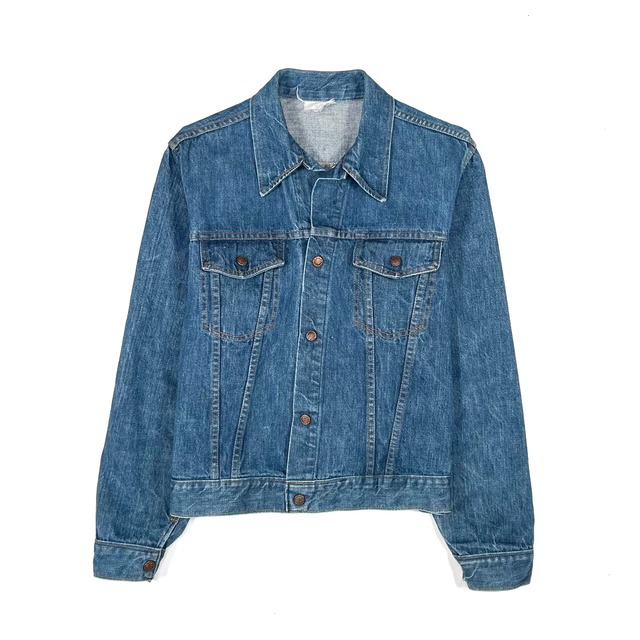サイズ : about M サイズ実寸 肩幅46cm 身幅59.5cm 着丈59.5cm 袖丈64cm ※平置き寸法 ※多少の誤差はご了承ください。 価格11800円+TAX トラッカージャケット JCPenney デニム(コットン素材) 縦落ちのデニム 色味はインディゴブルー フロントと袖口のボタンはスナップボタン サイドポケットなし 70sJCペニーのデニムジャケット ・撮影環境により色味が異なる場合がございます。予めご了承ください。 ・古着(ユーズド、ヴィンテージ商品)の為 返品、返金、交換はお断りさせていただいております。 ・ユーズド、ヴィンテージ商品の為、文章に記載がないダメージや汚れ等ある場合がございます。 ・古着にご理解の上、ご購入お願いいたします。 ・古着に対して神経質な方は購入をご遠慮ください。 ・商品で気になることがありましたら、電話またはインスタグラムのDM、メールにてお問合せください。 International shipping is available, but the price varies depending on the country and the weight of the package, so please contact us for more details.