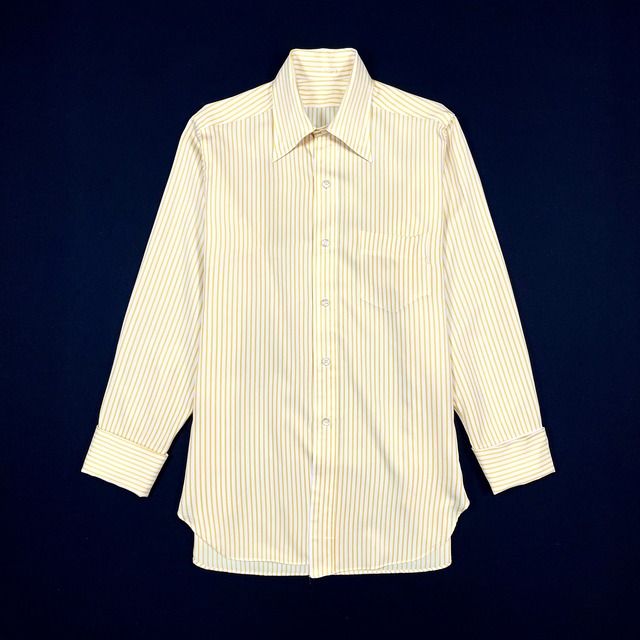 サイズ : about S サイズ実寸 肩幅42.5cm 身幅57cm 着丈76.5cm 袖丈56cm ※平置き寸法 ※多少の誤差はご了承ください。 価格8800円+TAX クラシックシャツ ポリエステル素材 色味はホワイト×イエロー ロングポイントのカラー 袖口はダブルカフスで、カフスボタン付き クラシックな70sストライプシャツ 薄汚れやスレ、ポケットに傷がございます ・撮影環境により色味が異なる場合がございます。予めご了承ください。 ・古着(ユーズド、ヴィンテージ商品)の為 返品、返金、交換はお断りさせていただいております。 ・ユーズド、ヴィンテージ商品の為、文章に記載がないダメージや汚れ等ある場合がございます。 ・古着にご理解の上、ご購入お願いいたします。 ・古着に対して神経質な方は購入をご遠慮ください。 ・商品で気になることがありましたら、電話またはインスタグラムのDM、メールにてお問合せください。 International shipping is available, but the price varies depending on the country and the weight of the package, so please contact us for more details.