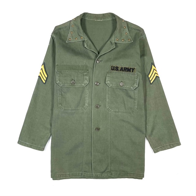 サイズ : about S サイズ実寸 肩幅48cm 身幅55cm 着丈75cm 袖丈53.5cm ※平置き寸法 ※多少の誤差はご了承ください。 価格11800円+TAX ユーティリティシャツ U.S.ARMY MADE IN U.S.A. コットン素材 色味はフェイド感があるカーキ 左胸と両袖にワッペン 右胸のワッペンは外されております 衿にゴールドのスタッズ 60s〜USアーミーのユーティリティシャツ 小さな傷やスレ、汚れ等ございます ・撮影環境により色味が異なる場合がございます。予めご了承ください。 ・古着(ユーズド、ヴィンテージ商品)の為 返品、返金、交換はお断りさせていただいております。 ・ユーズド、ヴィンテージ商品の為、文章に記載がないダメージや汚れ等ある場合がございます。 ・古着にご理解の上、ご購入お願いいたします。 ・古着に対して神経質な方は購入をご遠慮ください。 ・商品で気になることがありましたら、電話またはインスタグラムのDM、メールにてお問合せください。 International shipping is available, but the price varies depending on the country and the weight of the package, so please contact us for more details.