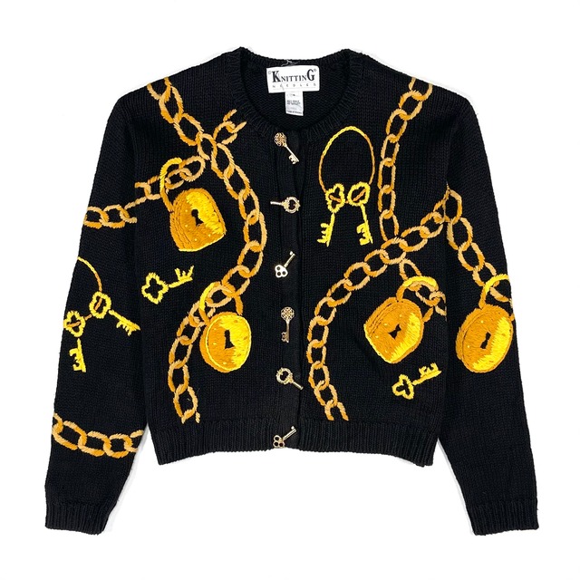サイズ表記S サイズ : about S サイズ実寸 肩幅46.5cm 身幅52cm 着丈51.5cm 袖丈55cm ※平置き寸法 ※ニット製品の為、多少の誤差はご了承ください。 刺繍カーディガン 55%ラミー(麻の一種)、45%コットン 色味はブラック(墨黒) フロントはスナップボタンで、鍵のチャーム イエロー、キャメル系のハンド刺繍 チェーンと鍵のモチーフ クルーネック ウィメンズアイテムの為、ボタンの合わせが逆です。 全面にハンド刺繍が施されたクルーネックカーディガン ・撮影環境により色味が異なる場合がございます。予めご了承ください。 ・古着(ユーズド、ヴィンテージ商品)の為 返品、返金、交換はお断りさせていただいております。 ・ユーズド、ヴィンテージ商品の為、文章に記載がないダメージや汚れ等ある場合がございます。 ・古着にご理解の上、ご購入お願いいたします。 ・古着に対して神経質な方は購入をご遠慮ください。 ・商品で気になることがありましたら、電話またはインスタグラムのDM、メールにてお問合せください。 International shipping is available, but the price varies depending on the country and the weight of the package, so please contact us for more details.