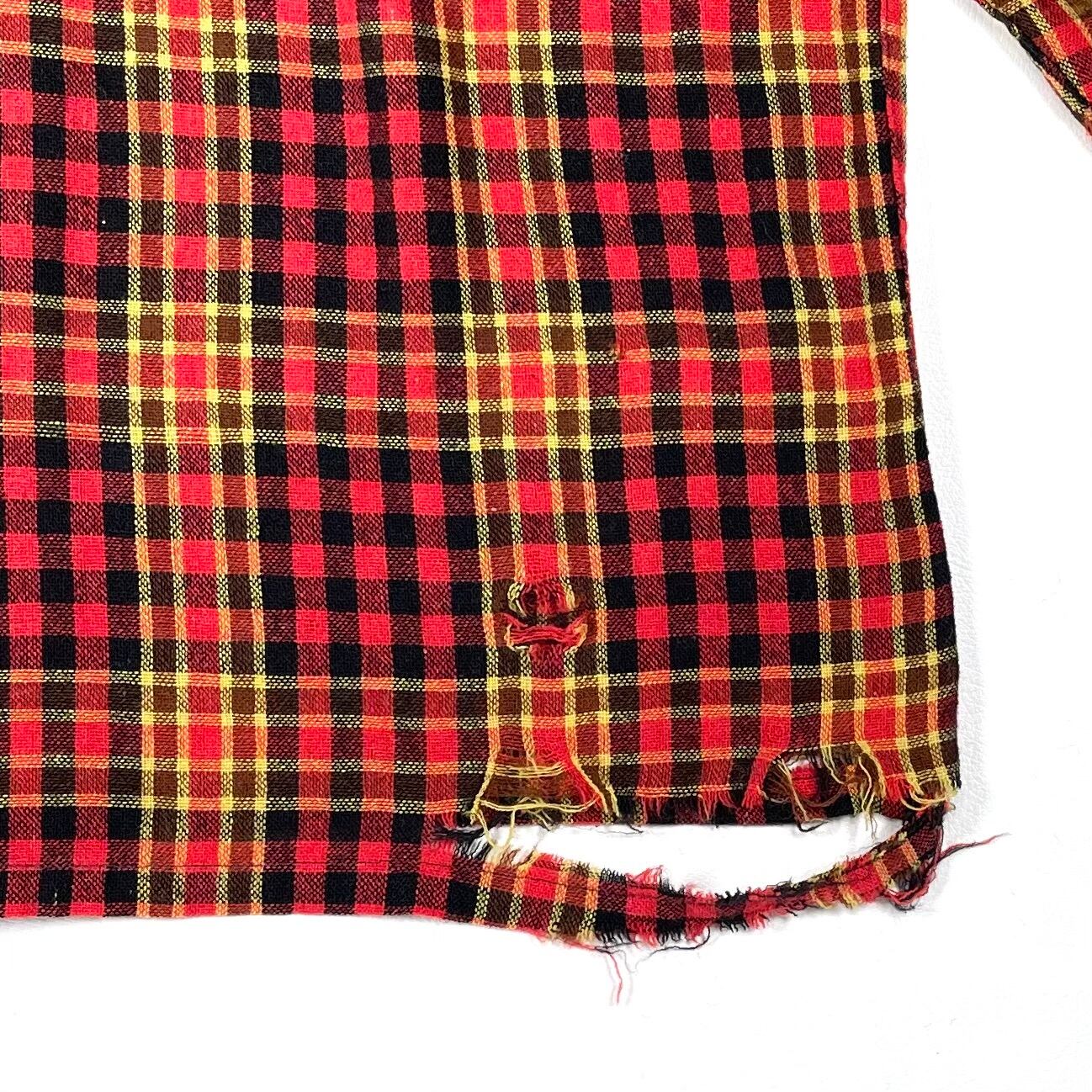 ダメージ感良く、グランジスタイルに合うチェックシャツ。
