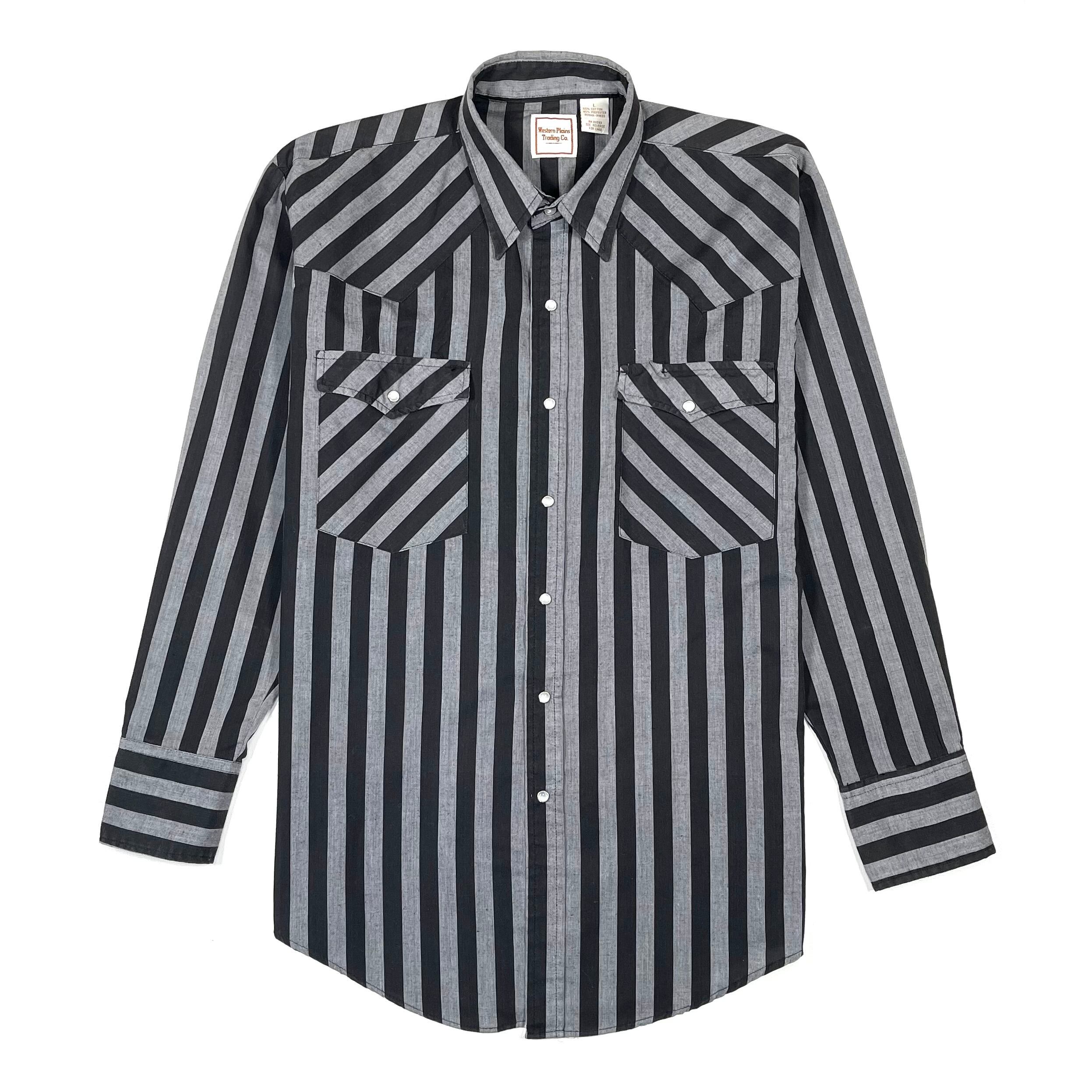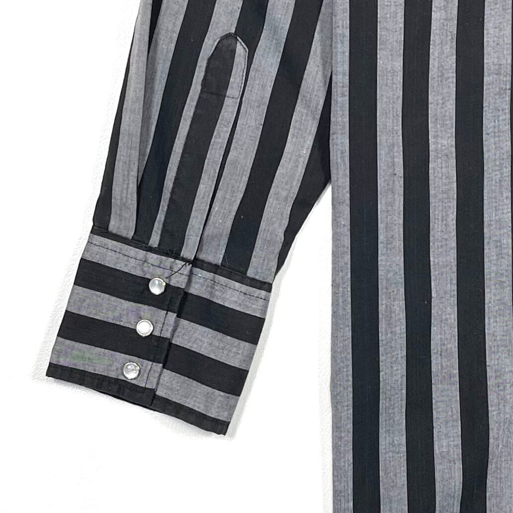 モノトーンの幅広のストライプがモダンなウエスタンシャツ。