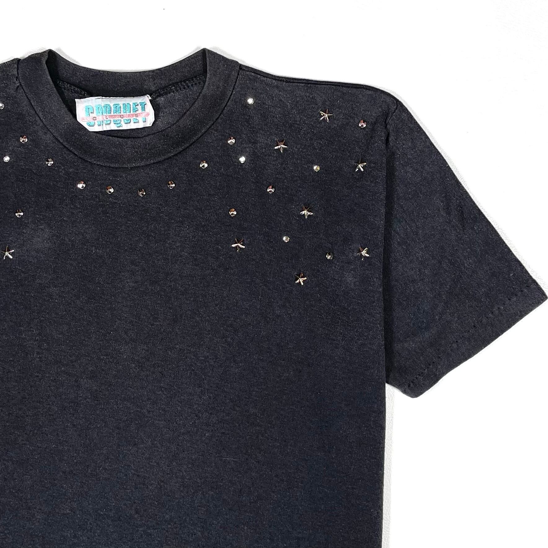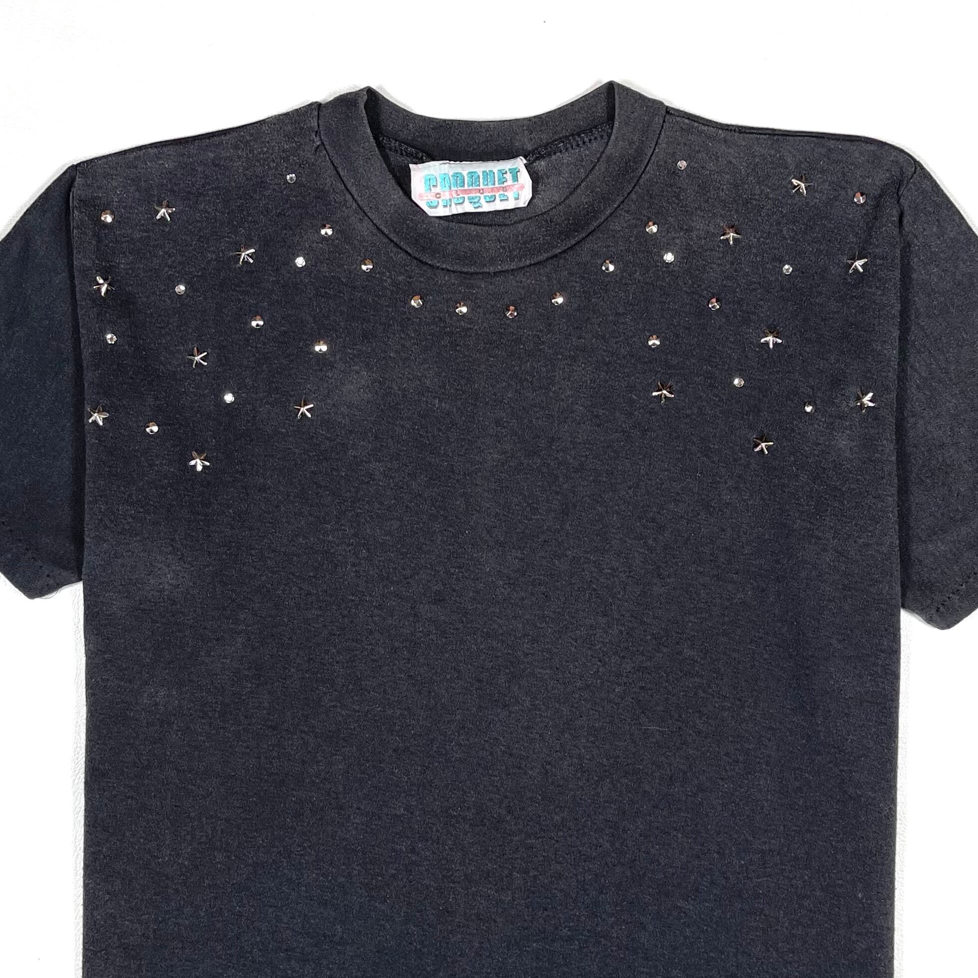 フェイド感あるブラックボディにシルバースタッズが映えるTシャツ