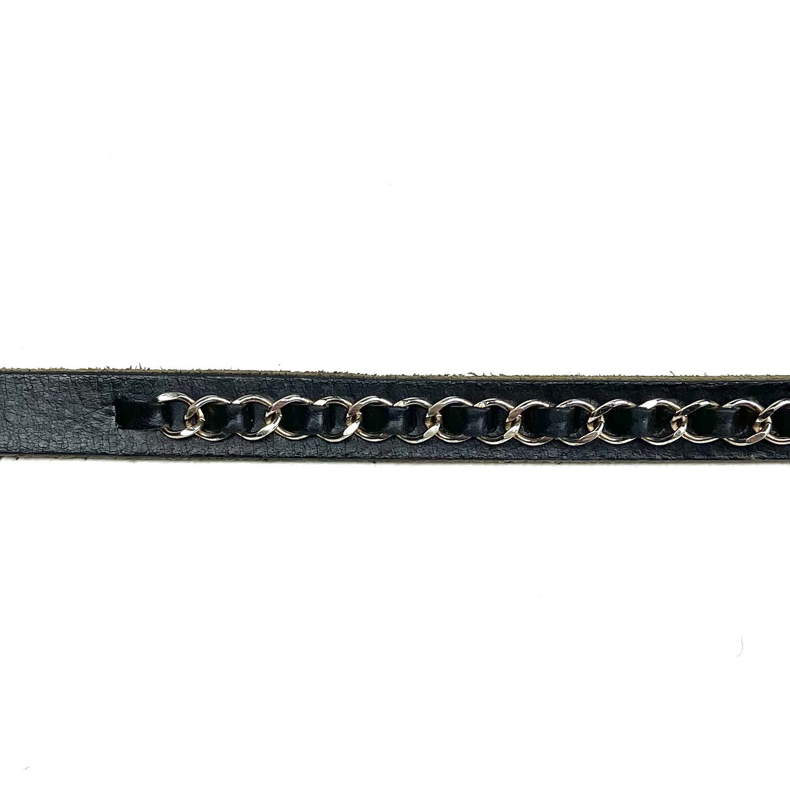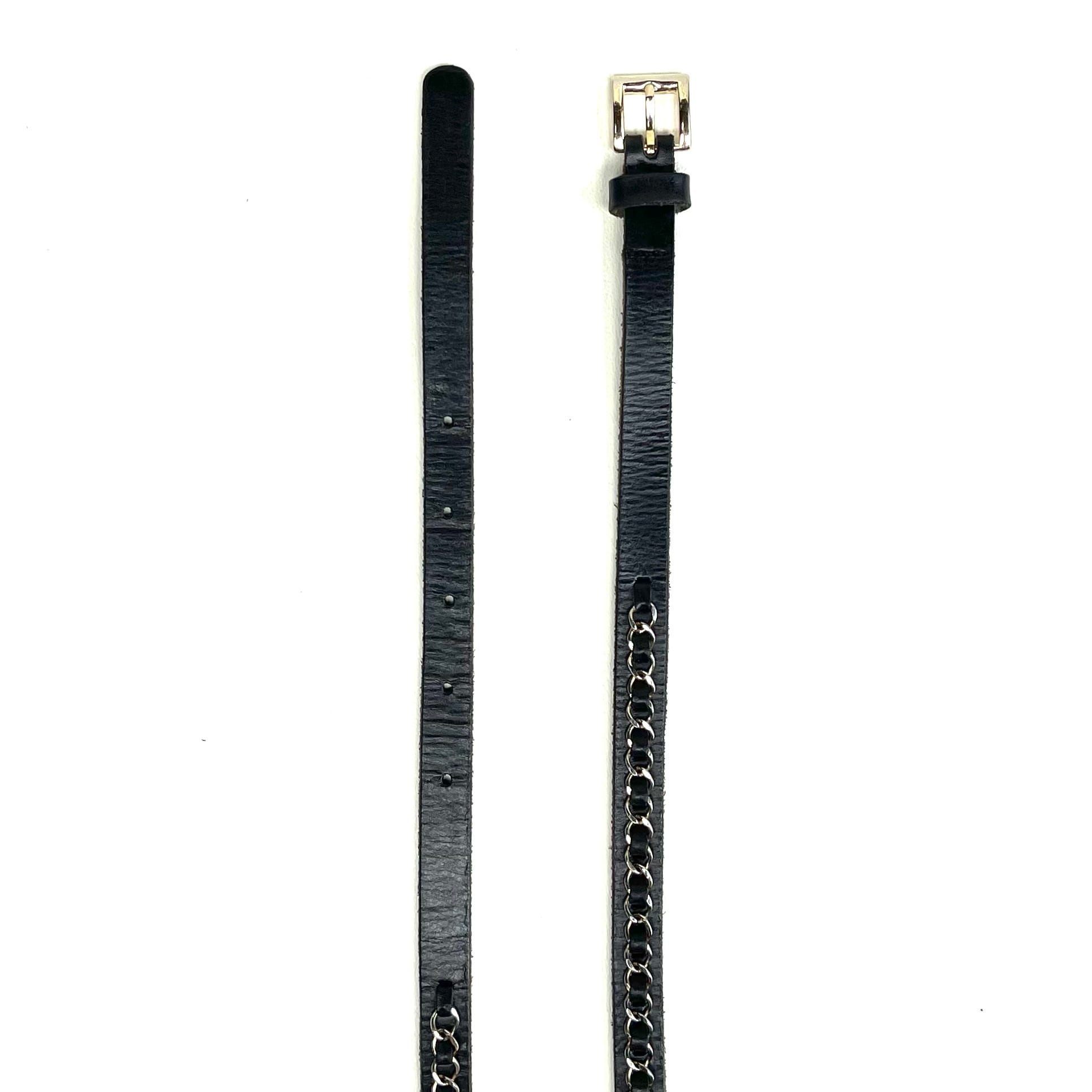 ベルト幅が細く、チェーンが編み込まれたデザイン
