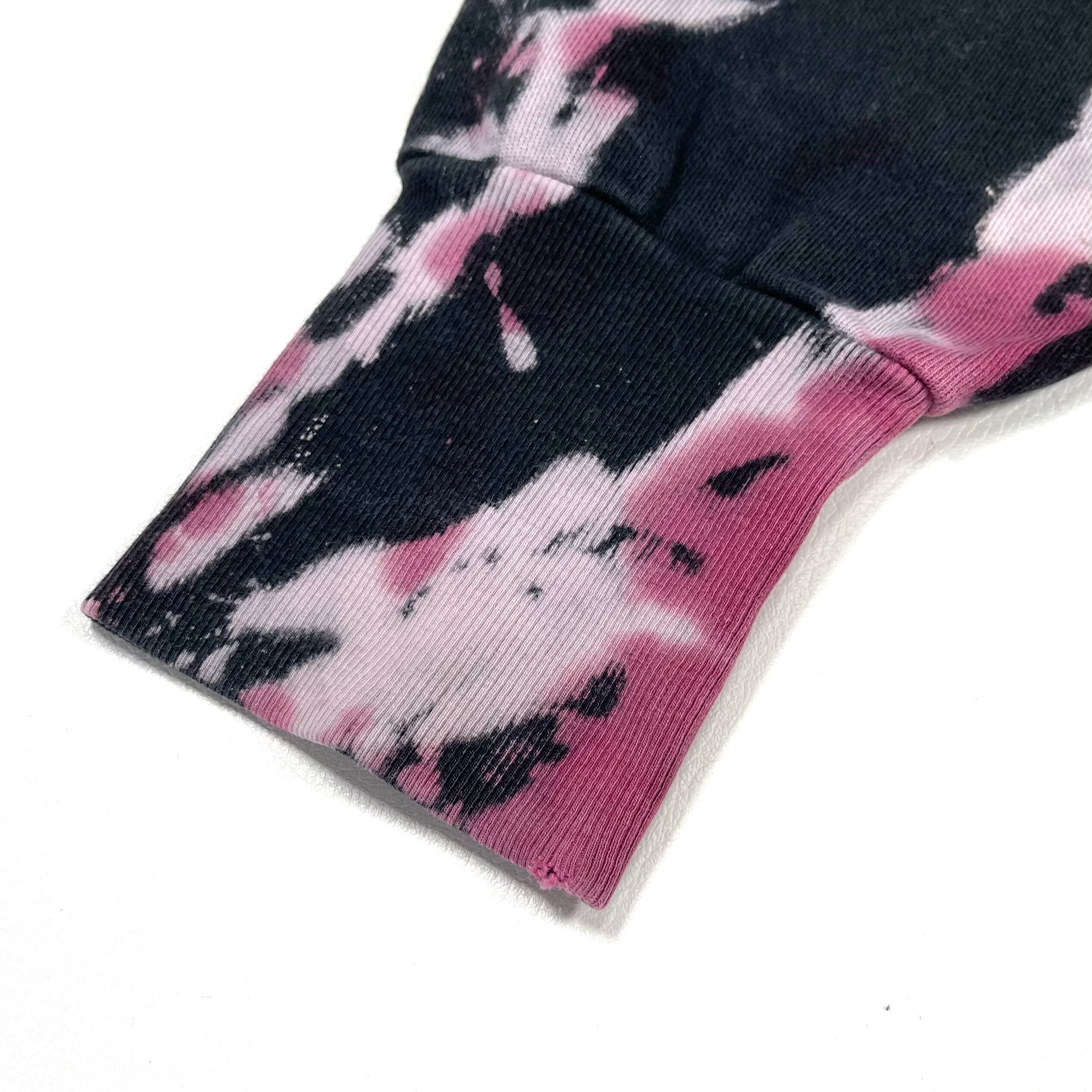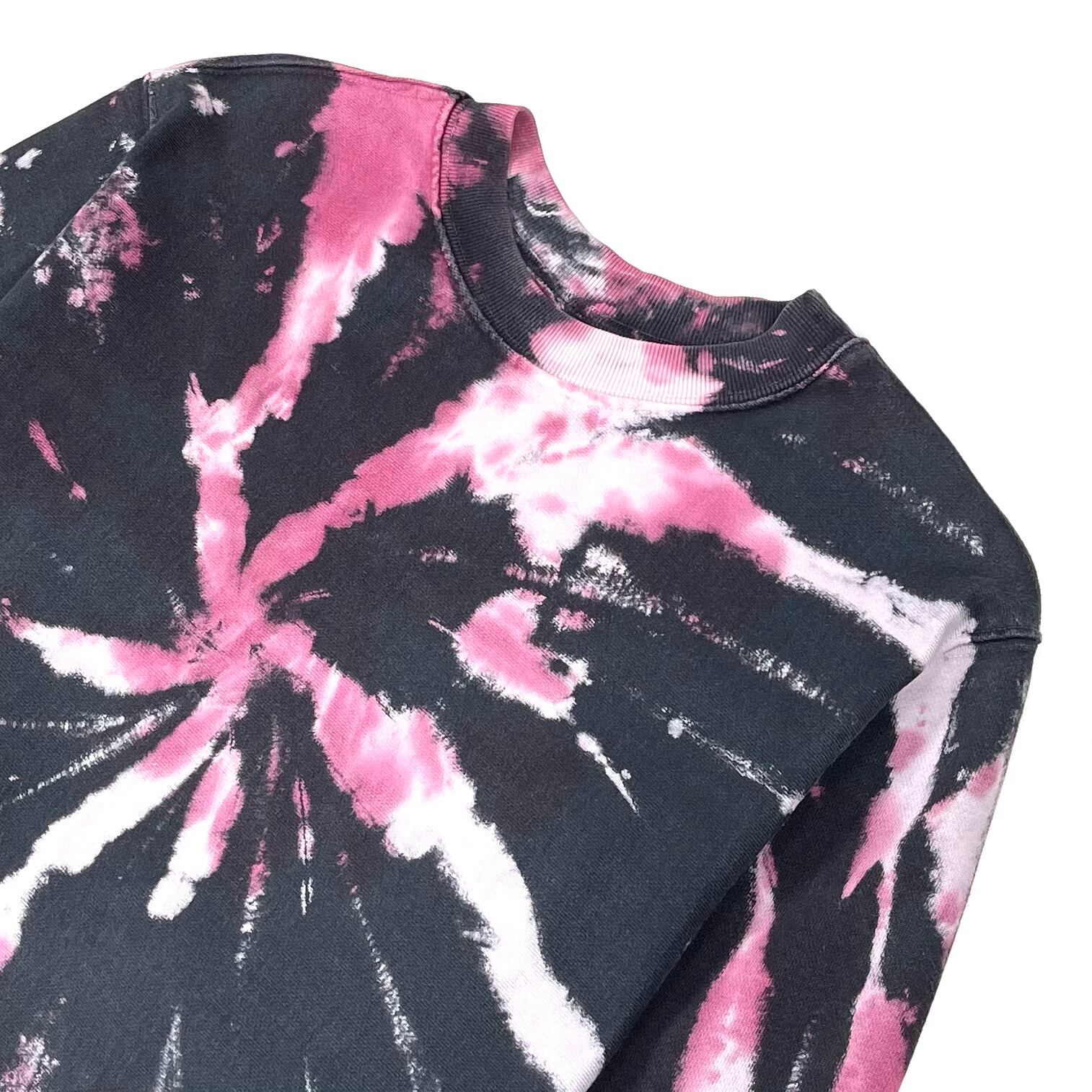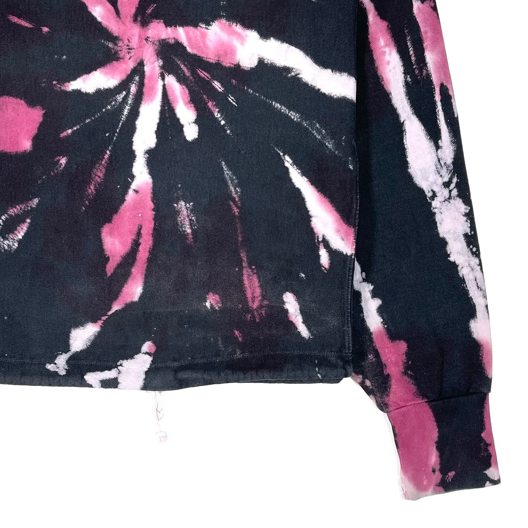 色褪せたブラックボディにピンクのタイダイが雰囲気あるショート丈のルーズスウェットシャツ