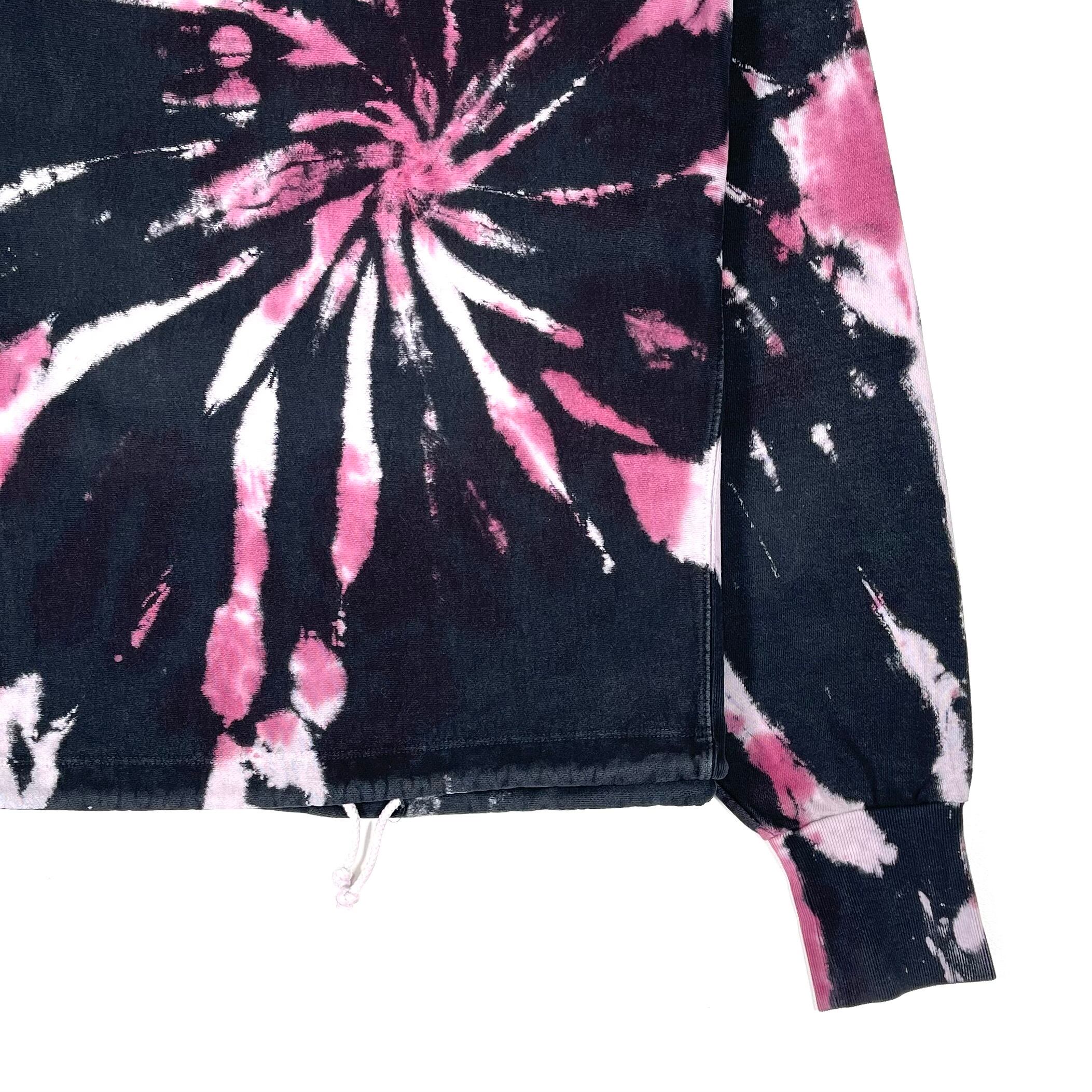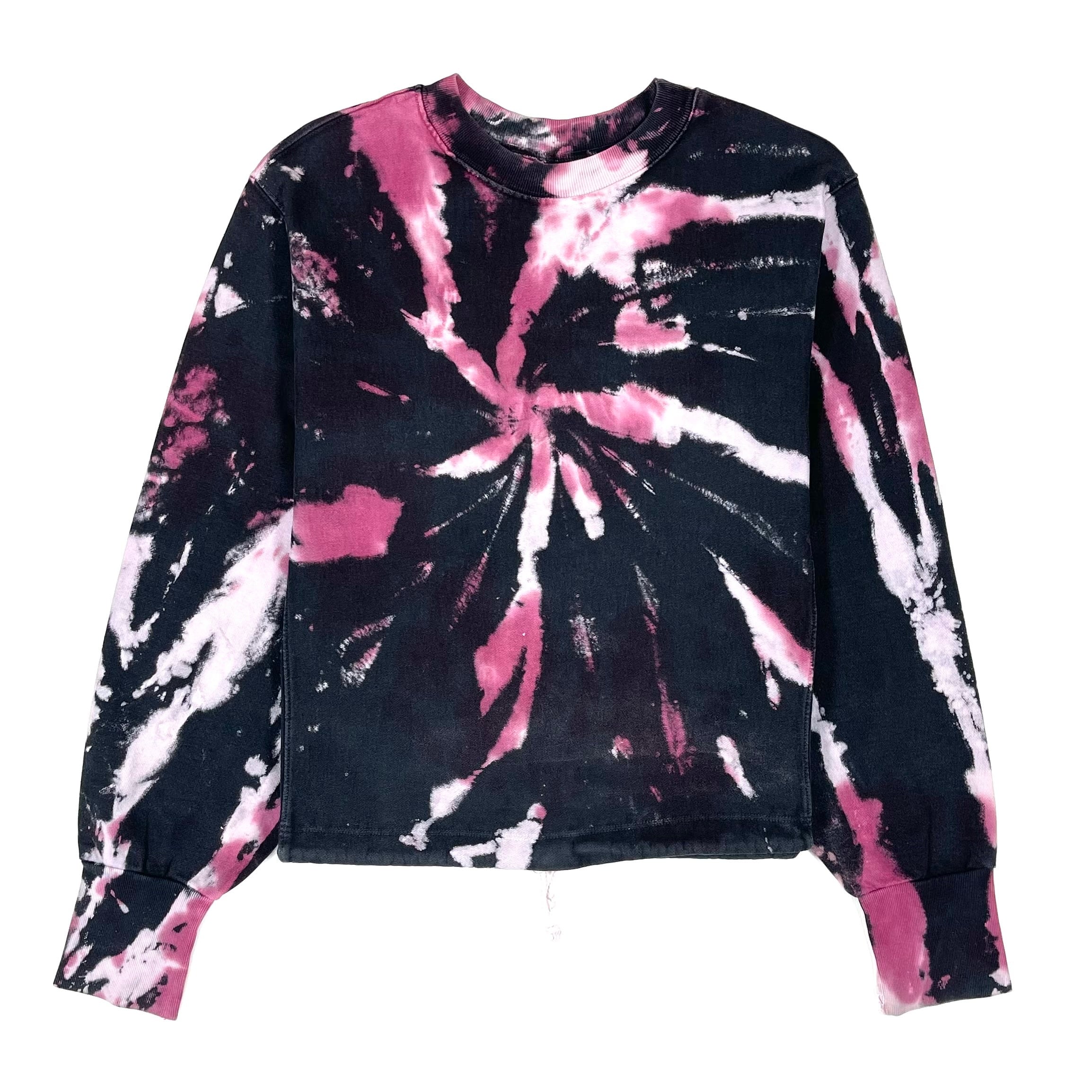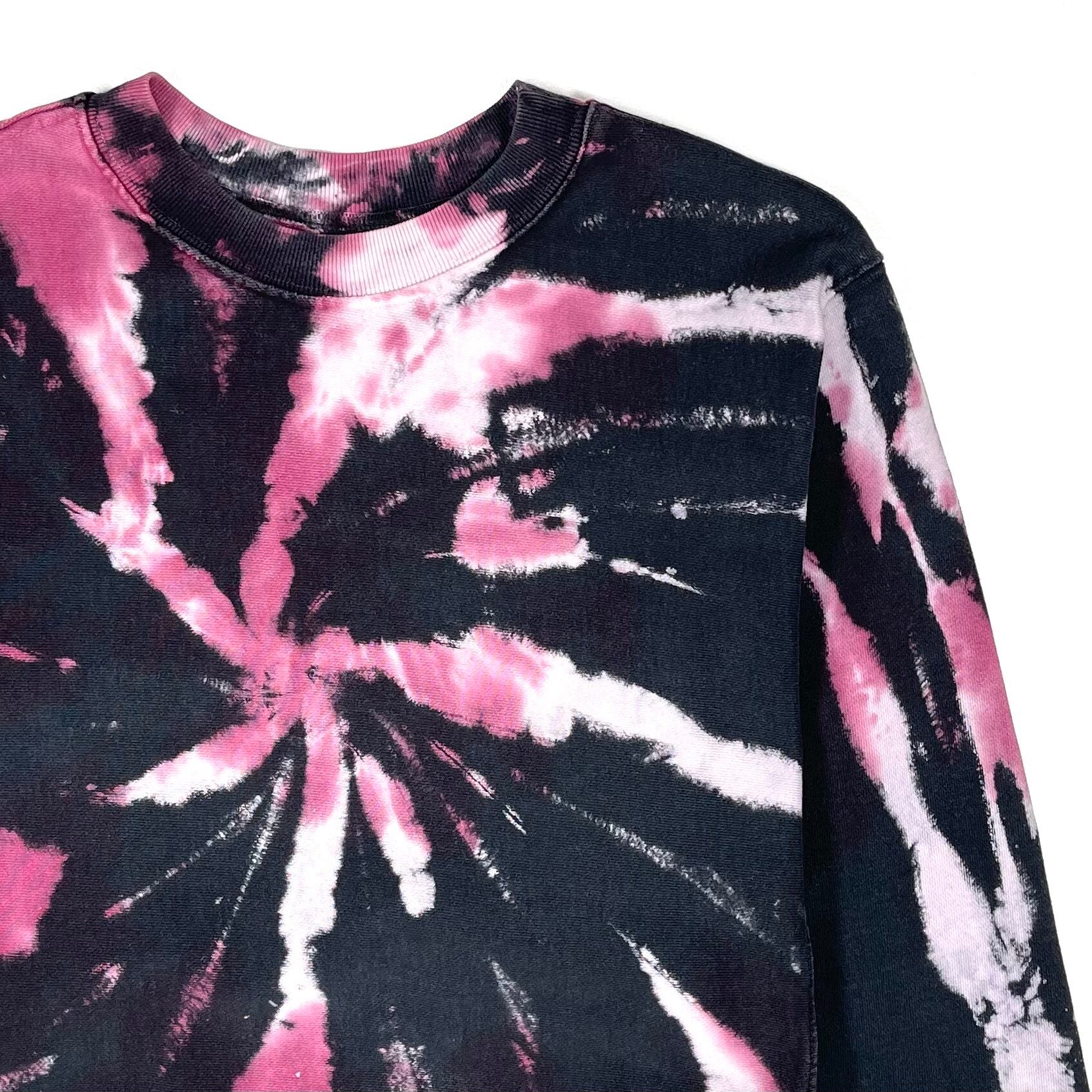 色褪せたブラックボディにピンクのタイダイが雰囲気あるショート丈のルーズスウェットシャツ