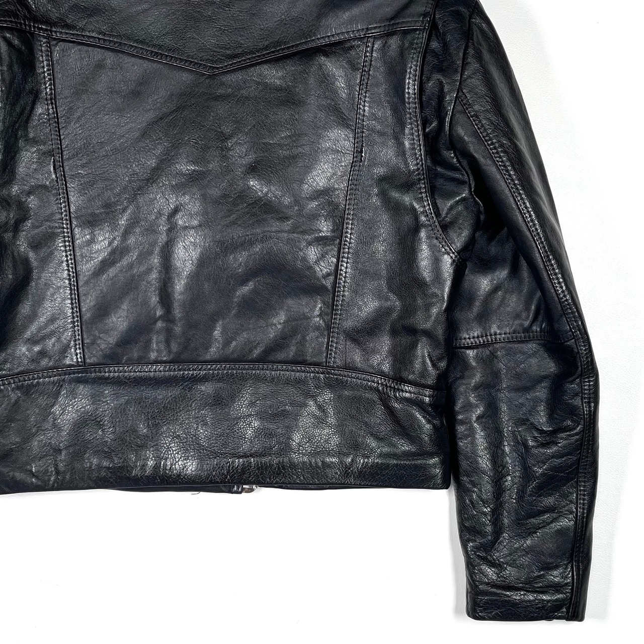 スタンダードなデザインでルーズなシルエットのバイカージャケット。