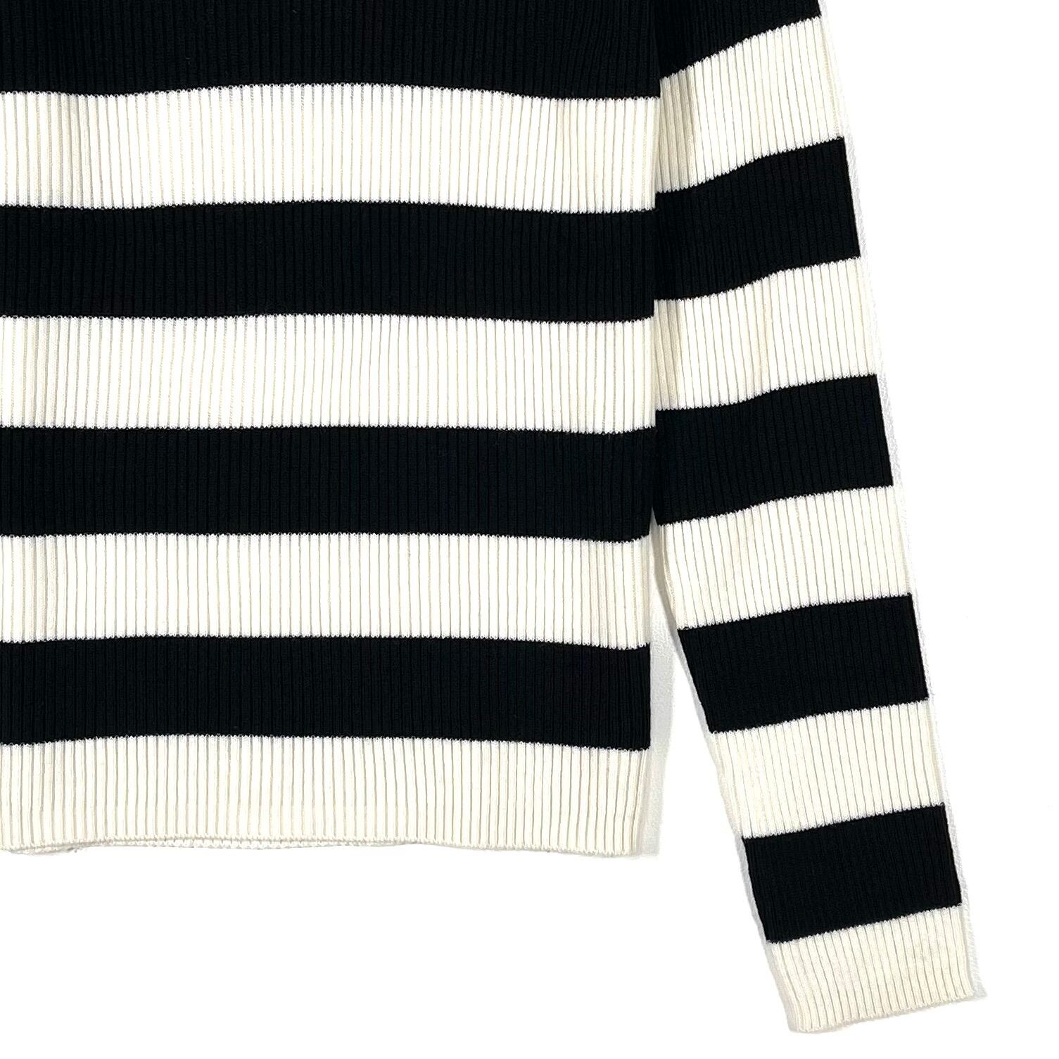 モノトーンボーダー柄のタートルネックセーター