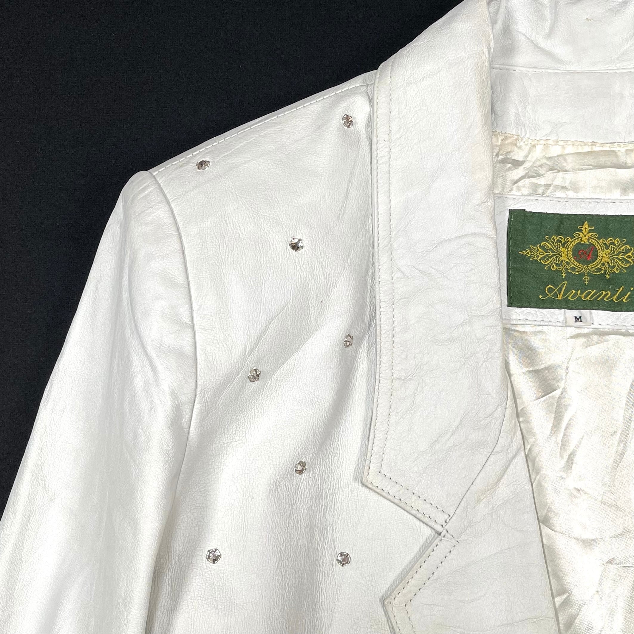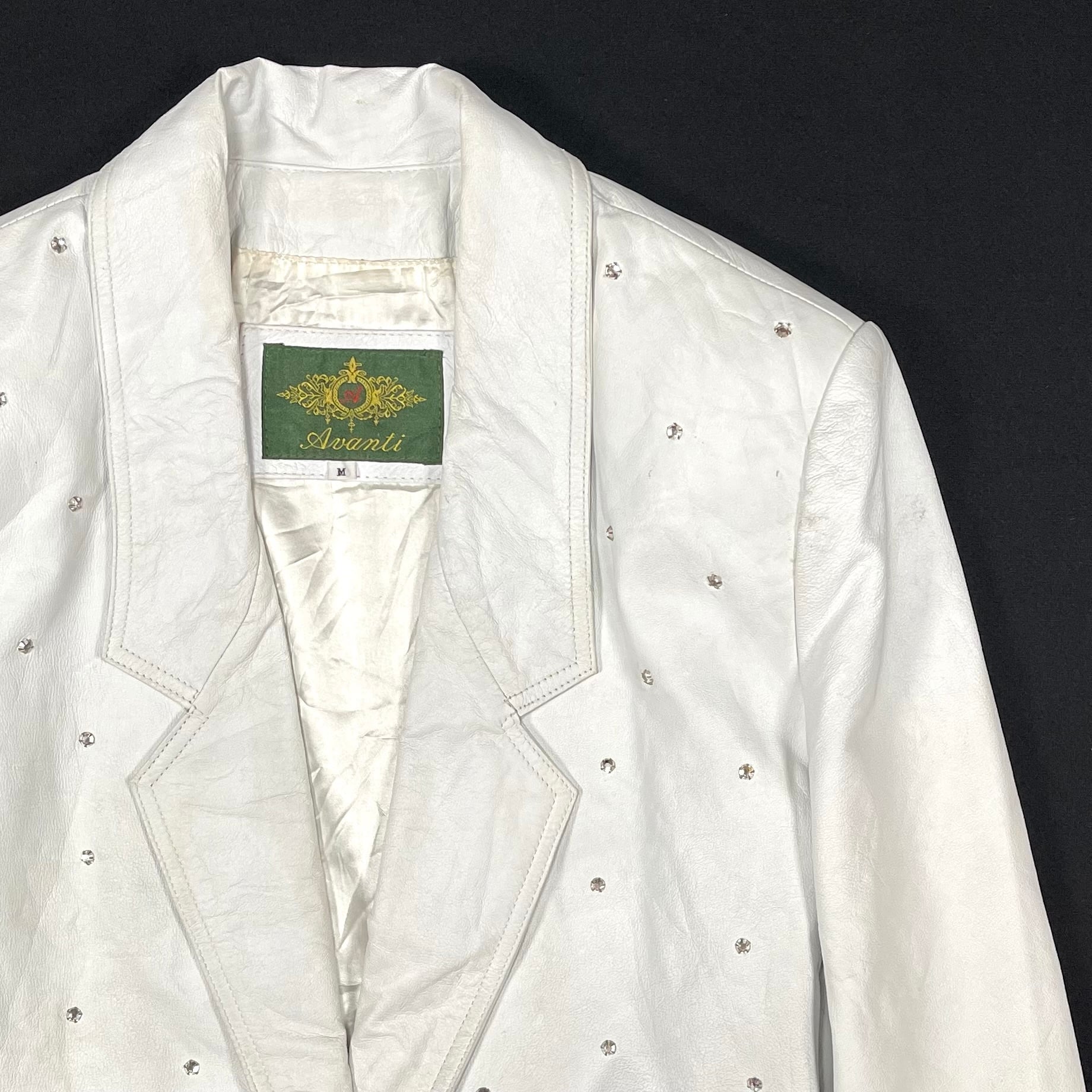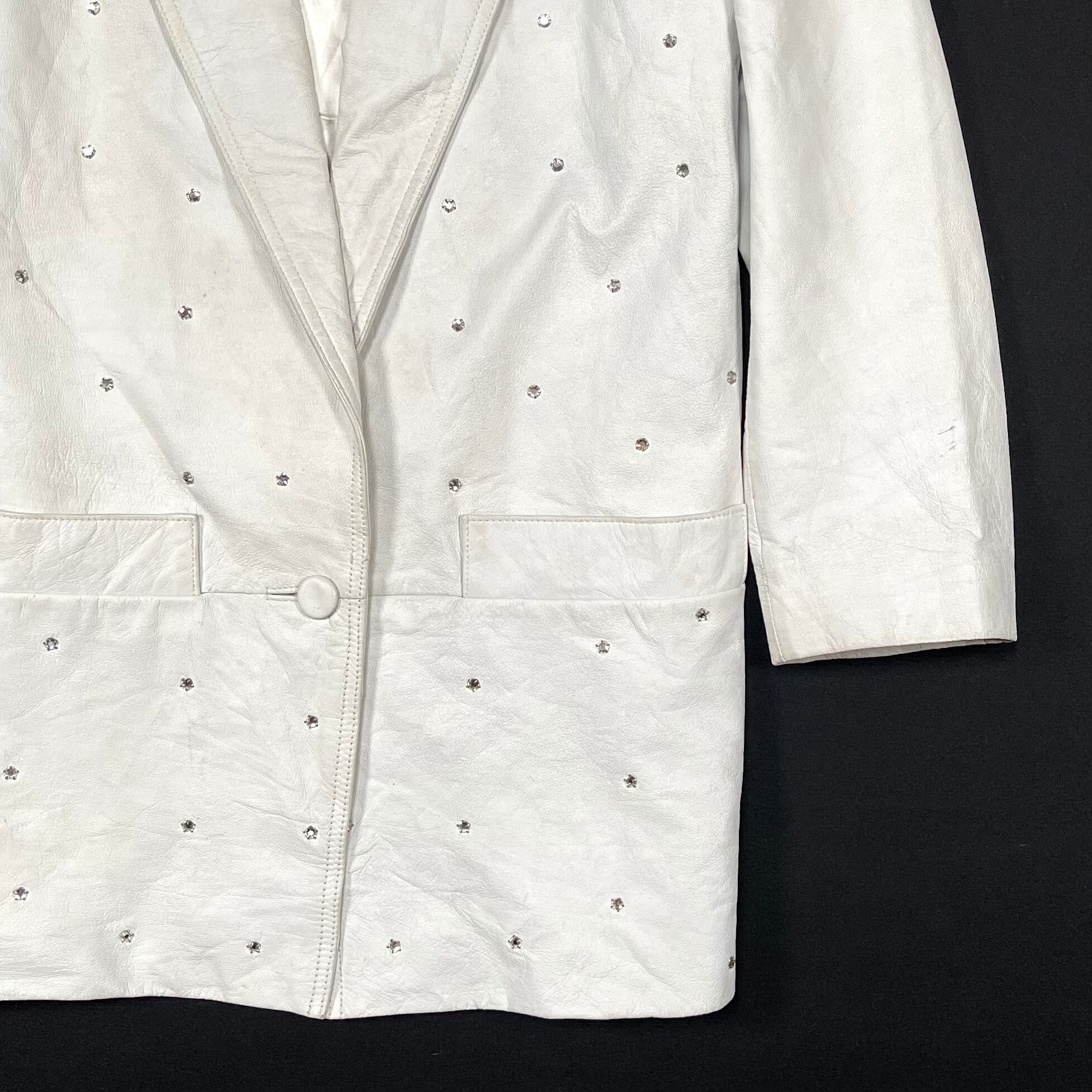 ホワイトレザーにストーンスタッズがついた80sテーラードジャケット