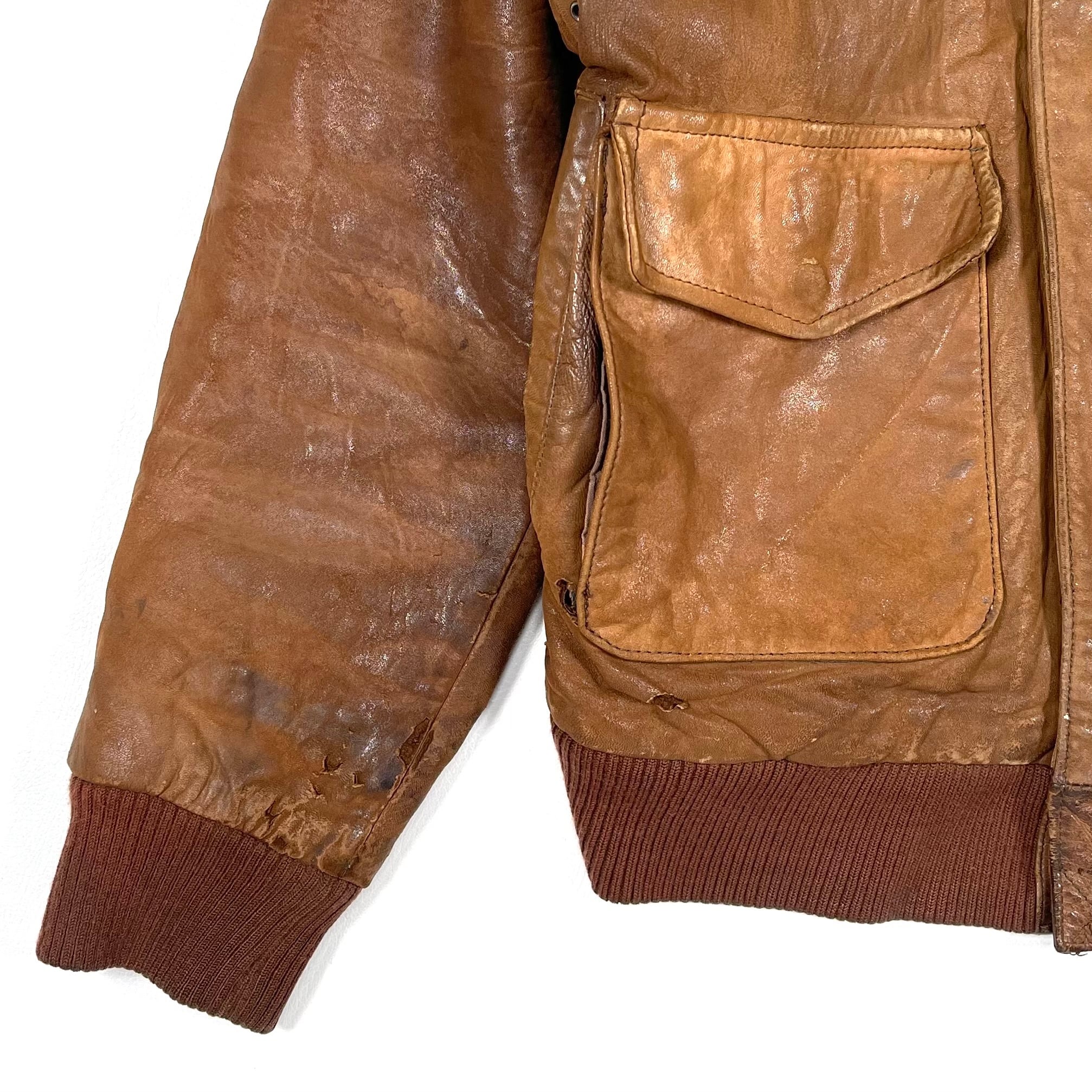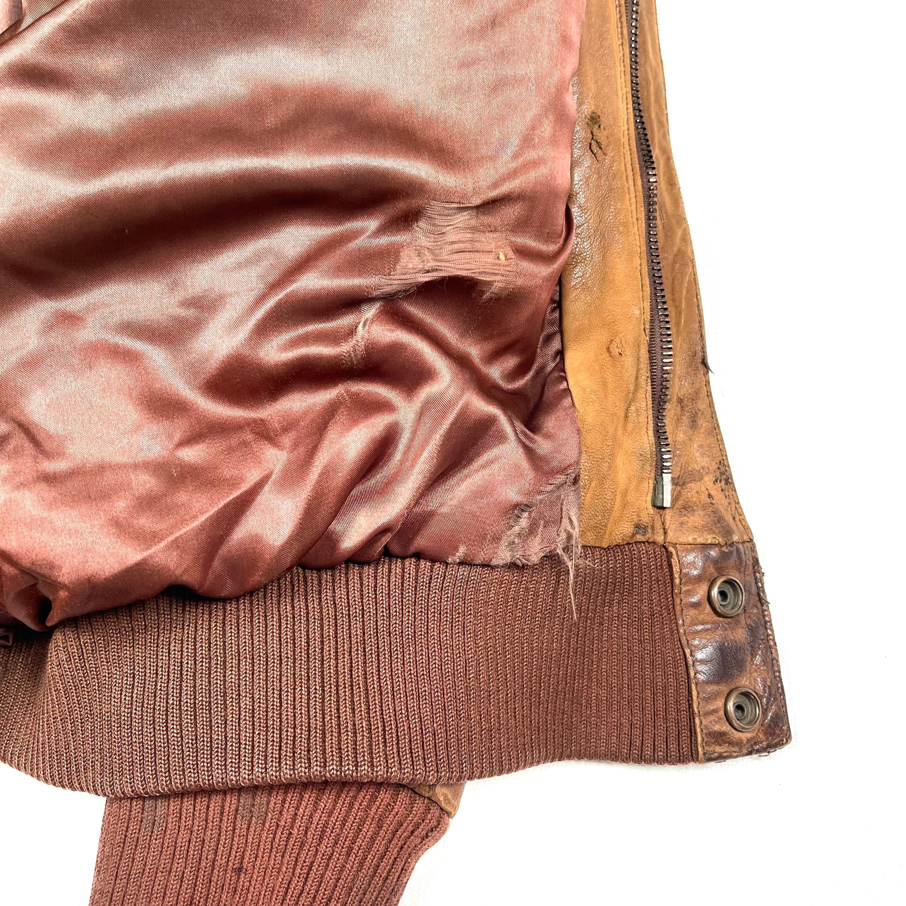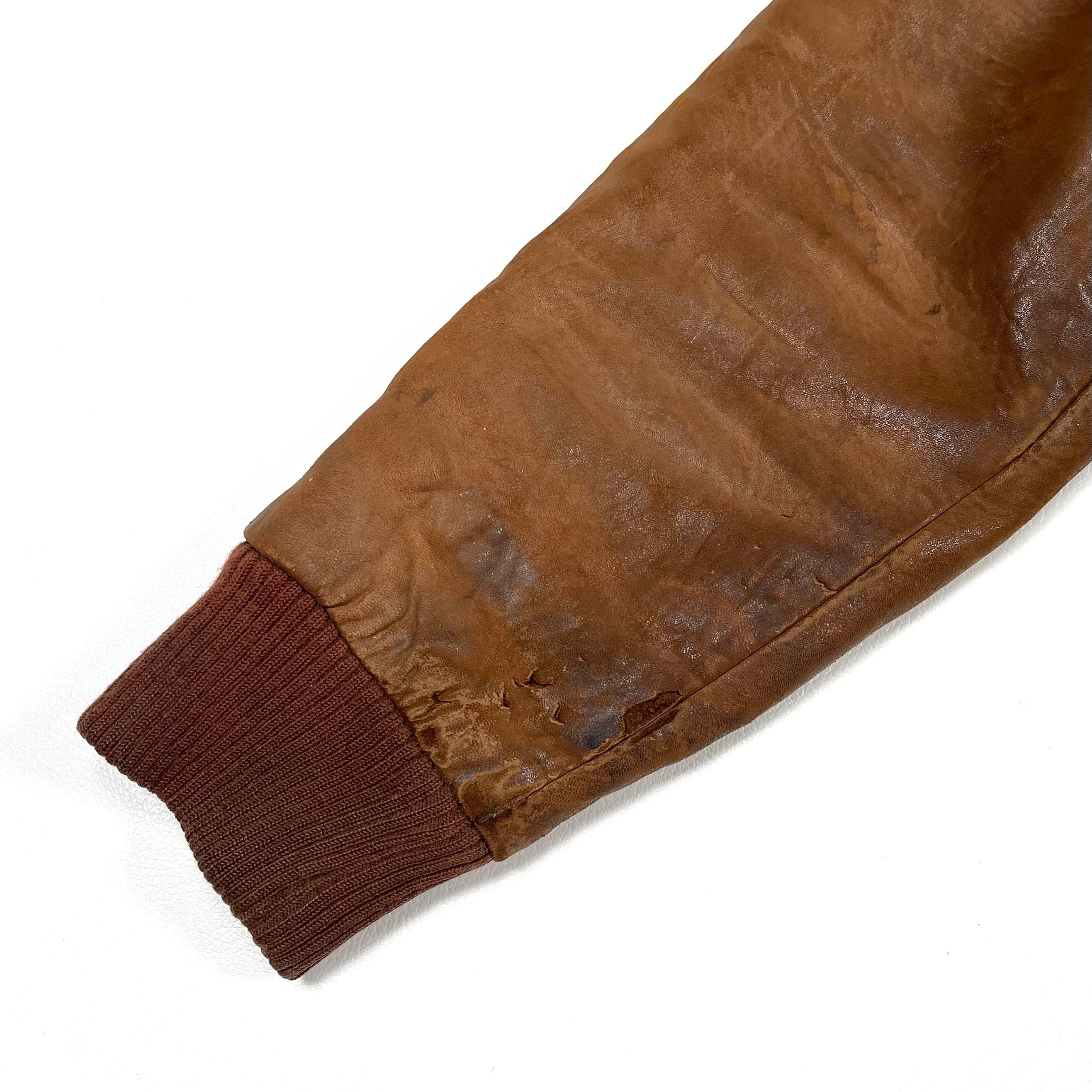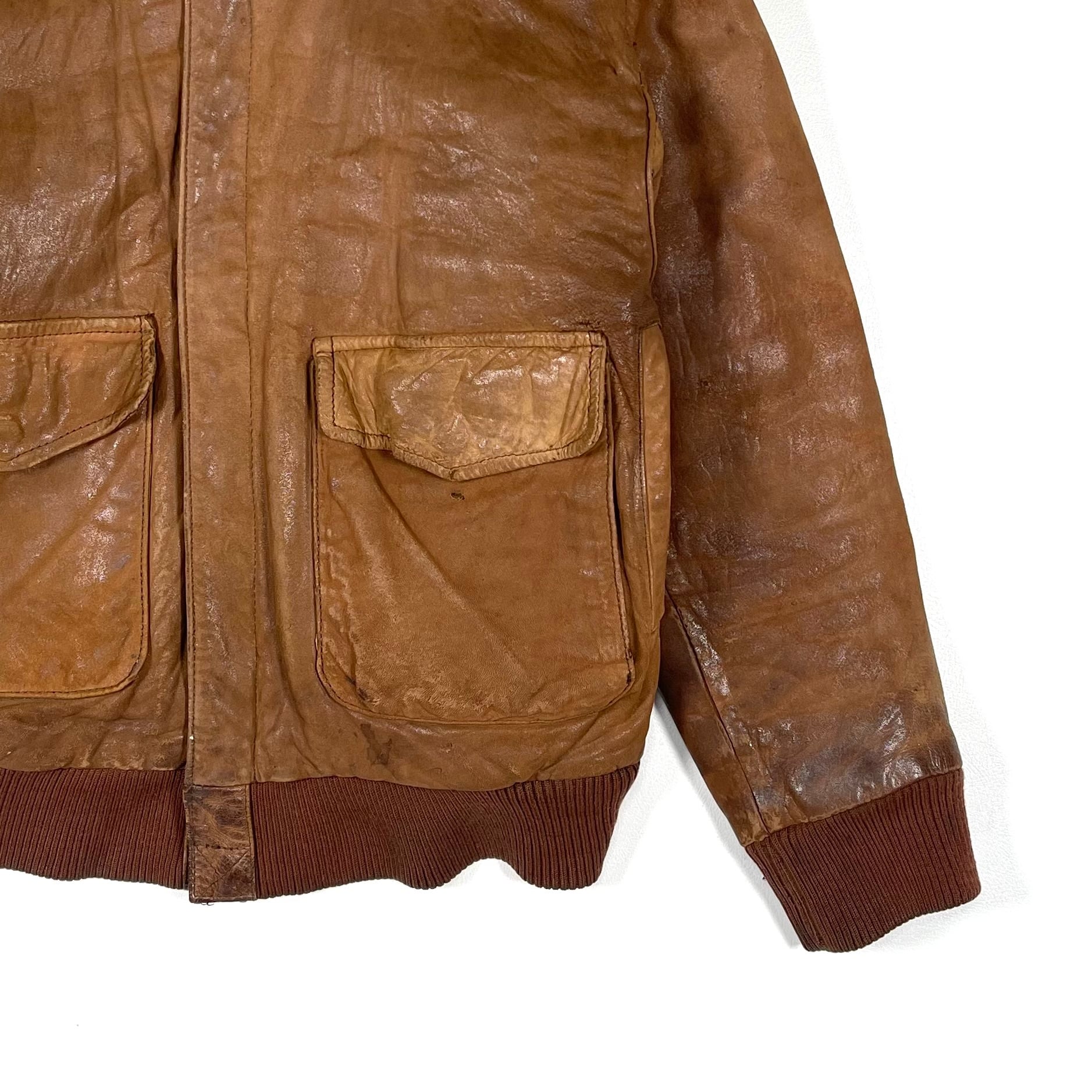 着込まれたレザーの風合いと色味が良く味が出たA-2タイプのルーズブルゾン