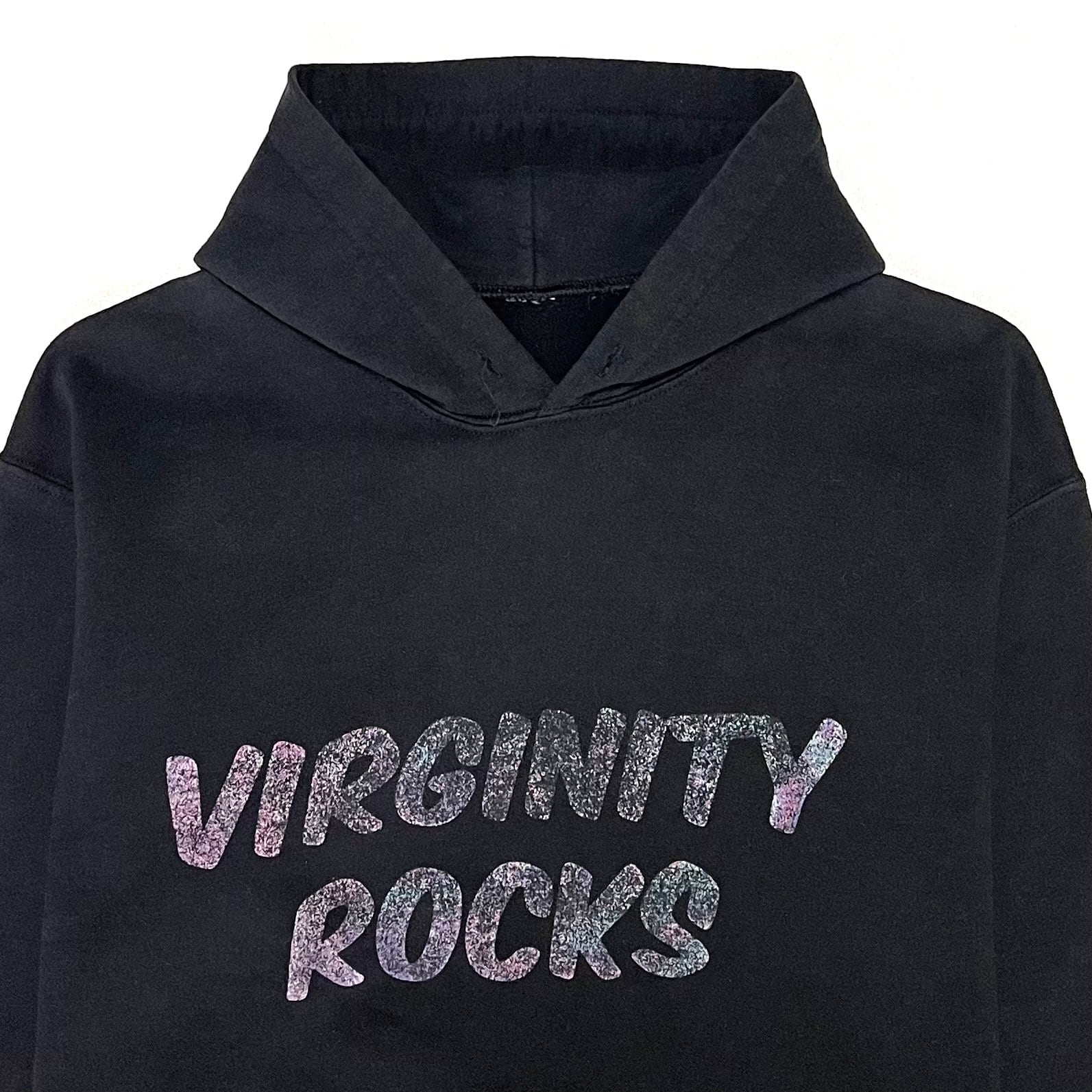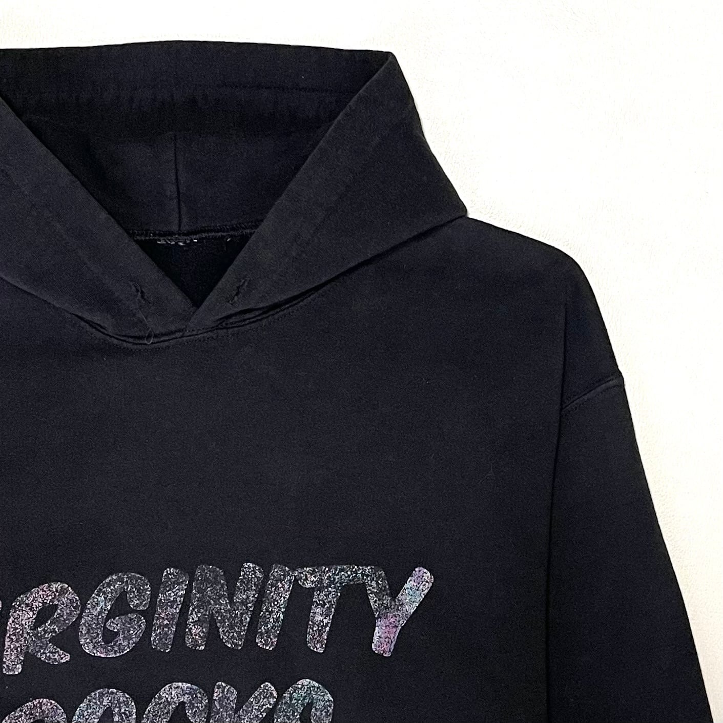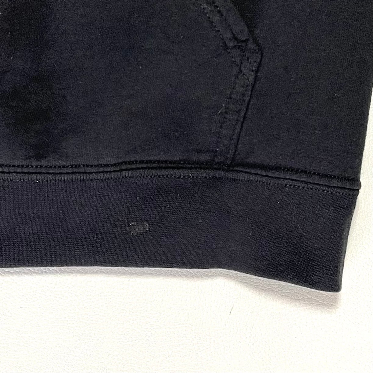 フェイドしたブラックボディにスレたプリントが雰囲気あるプルオーバーフーディ