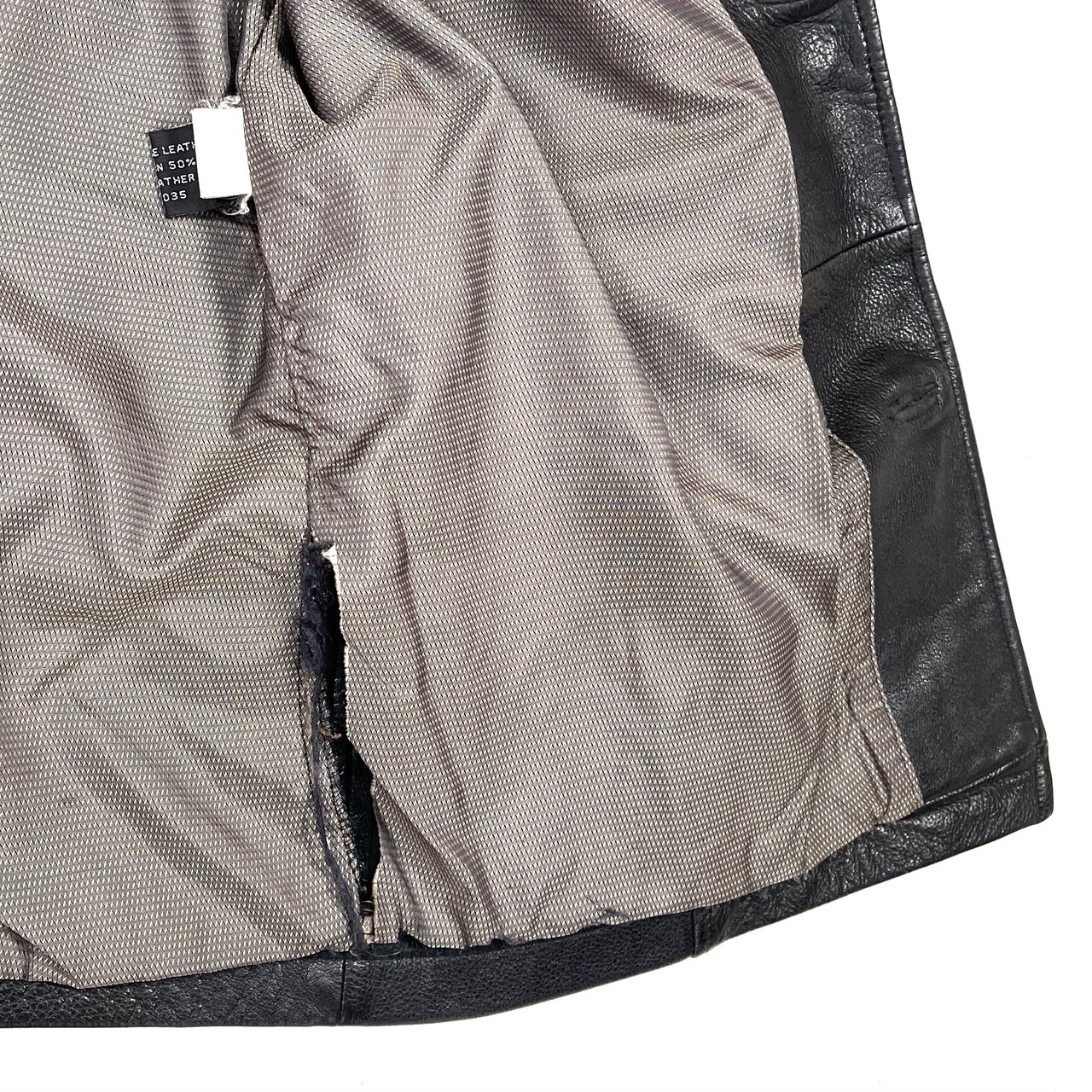 着用によるレザーのスレ、裏地のダメージ、衿のチェーン切れがございます。