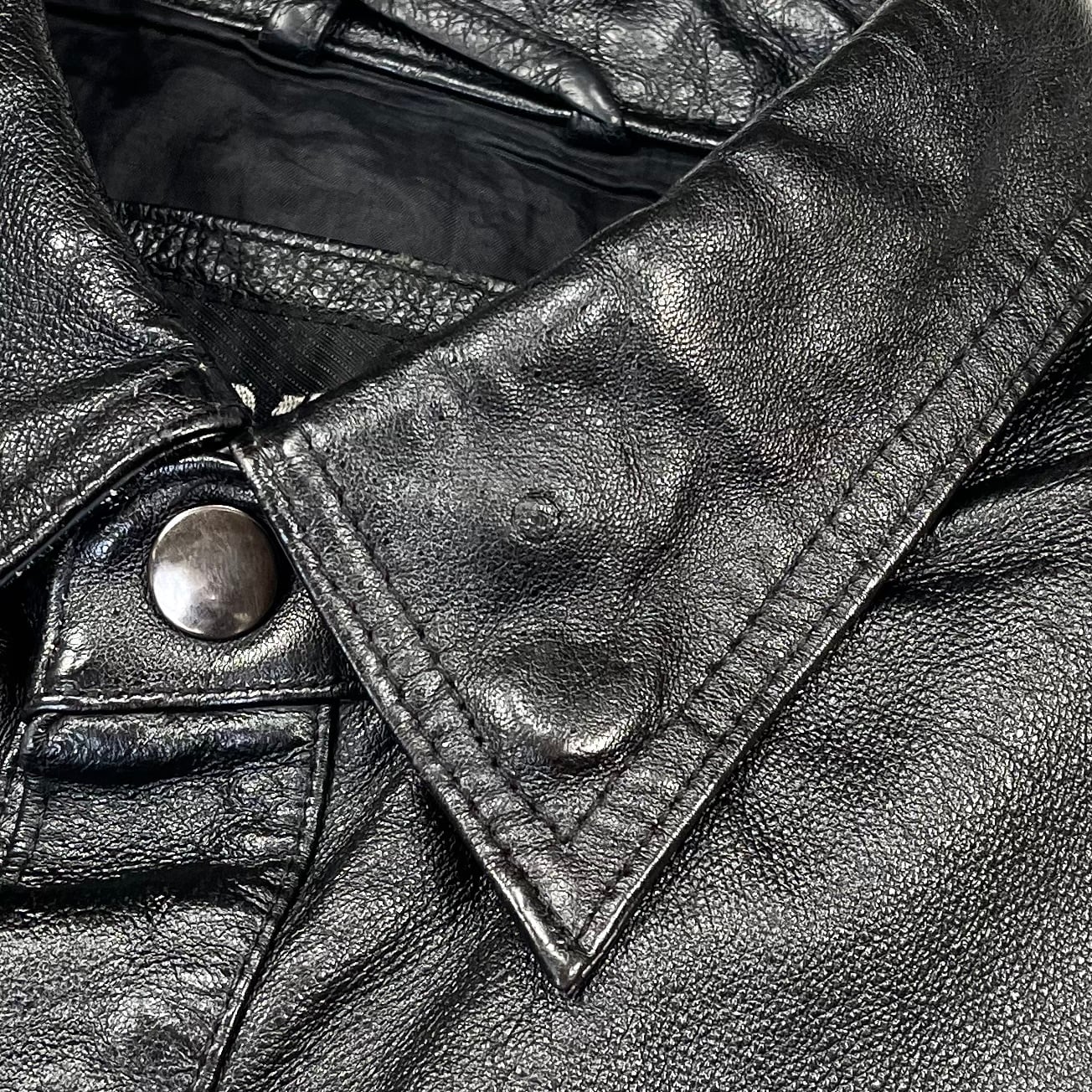 着用によるレザーのシワやスレ、脇下のハトメが1ヶ所取れています。