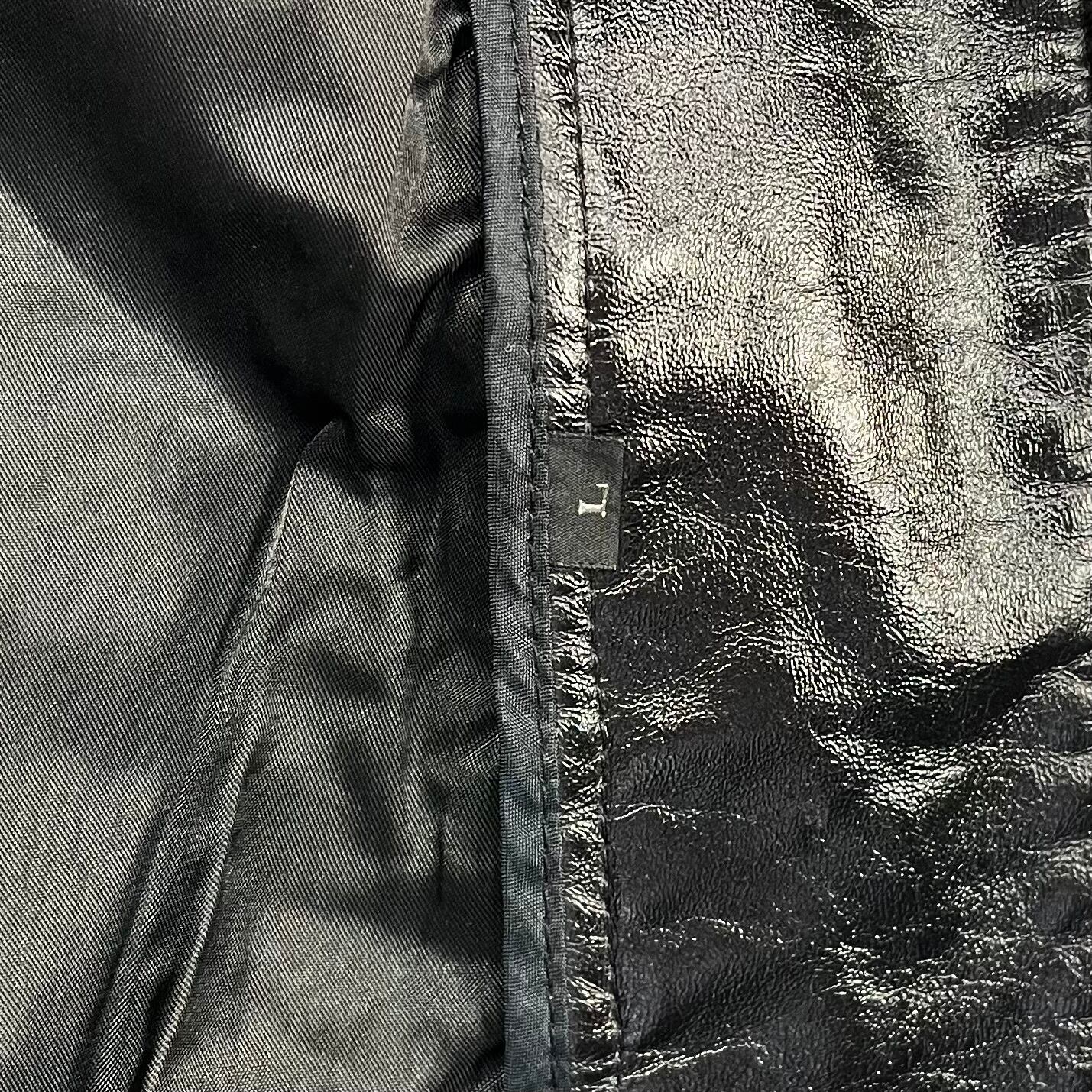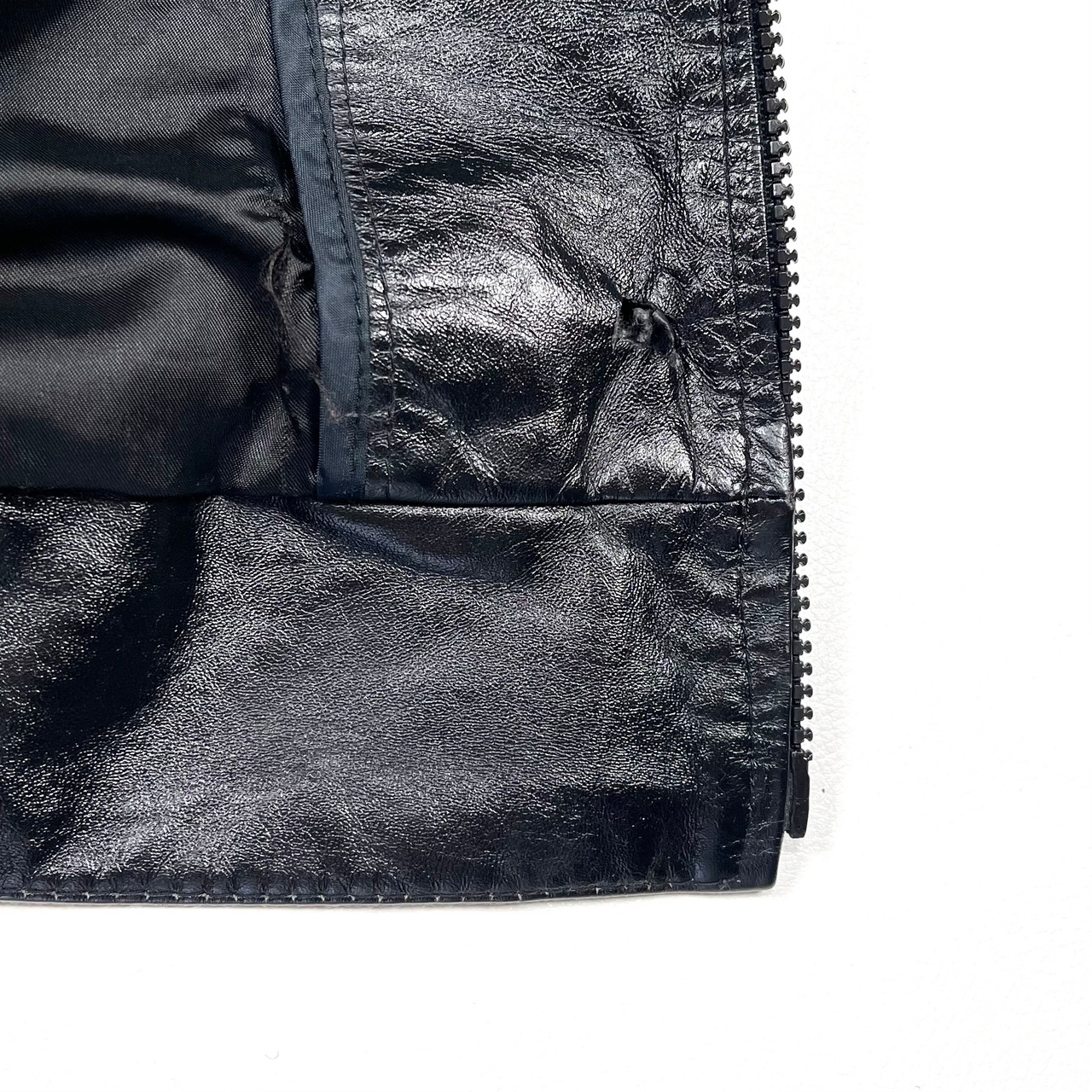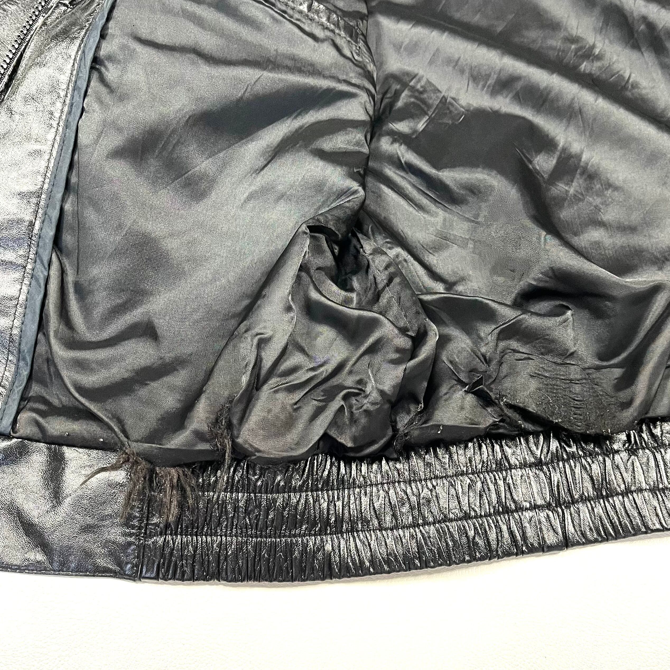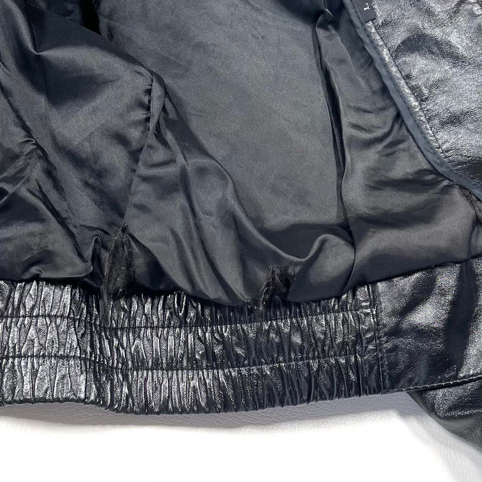 裏側の前にレザーの傷、裏地の裾にスレによるダメージがございます。