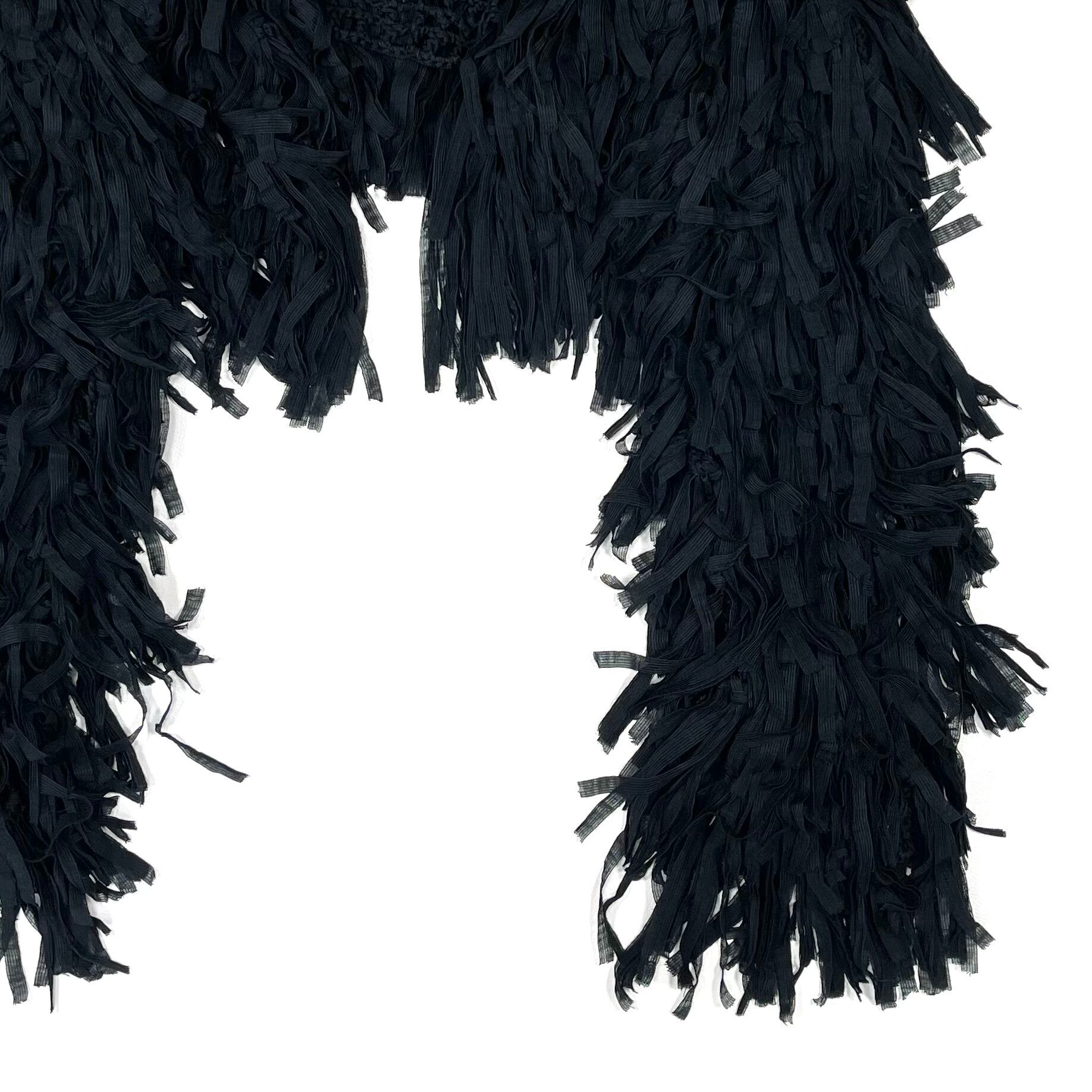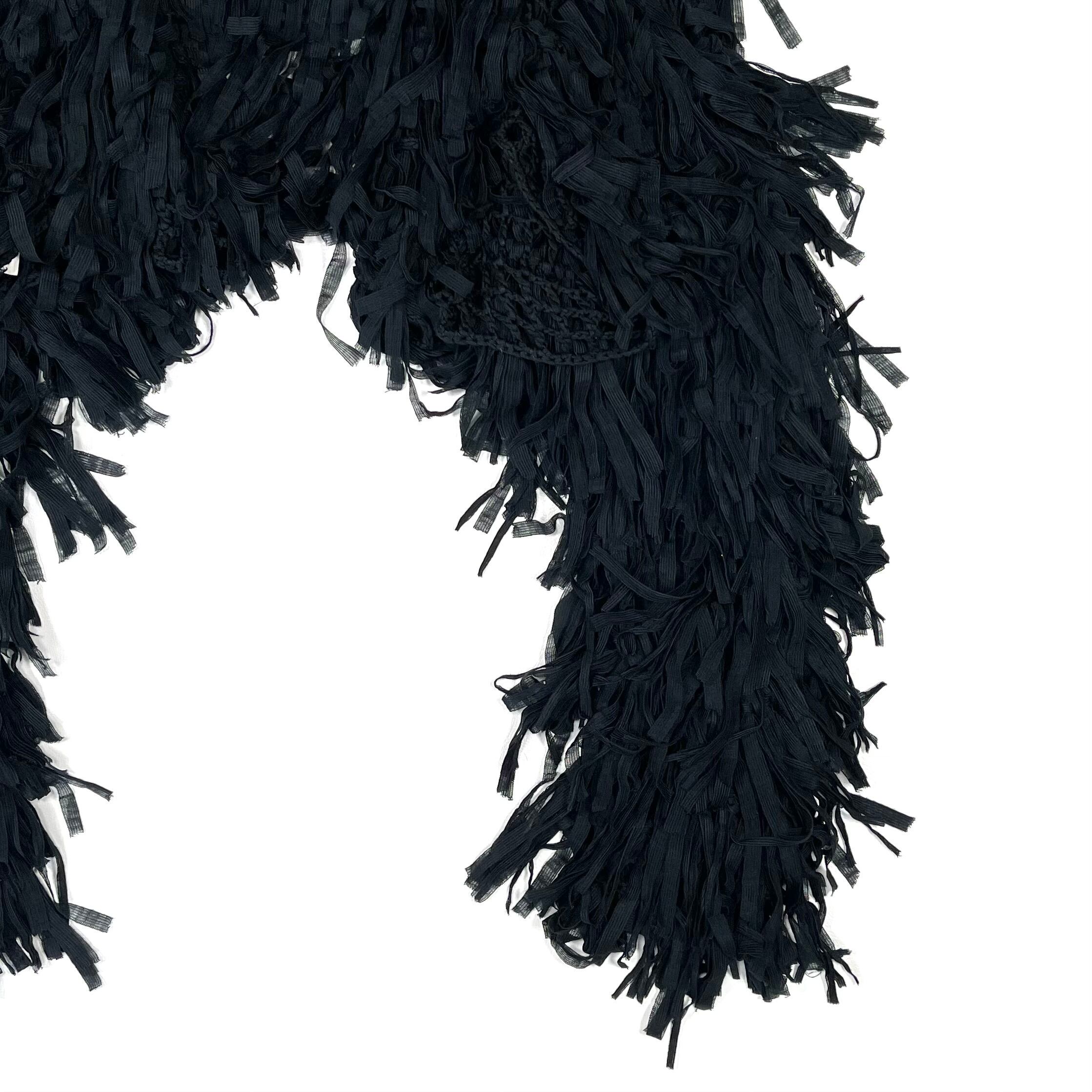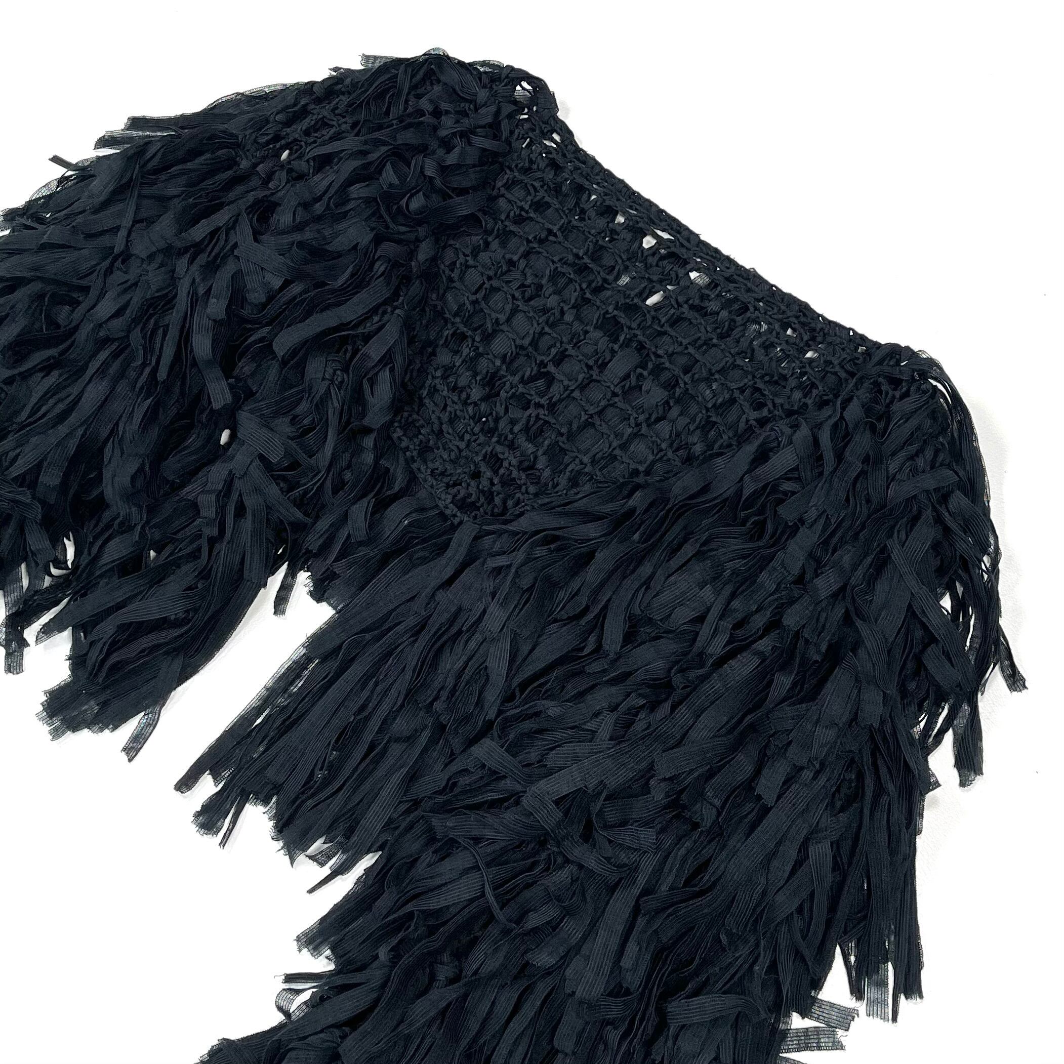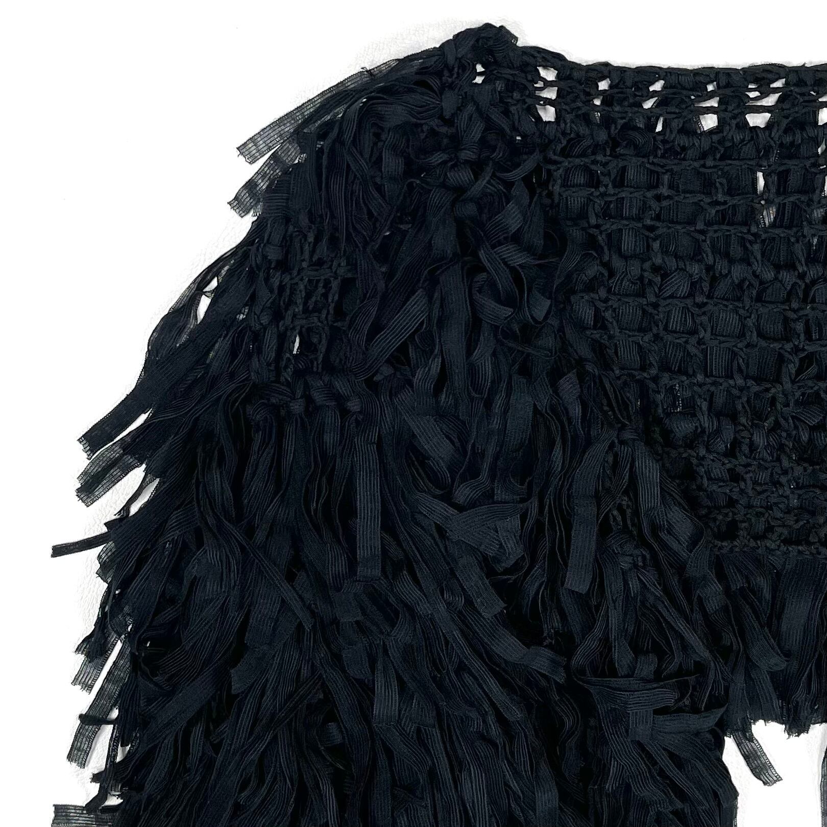 ネット状に編まれたボディにフリンジが編み込まれた作り