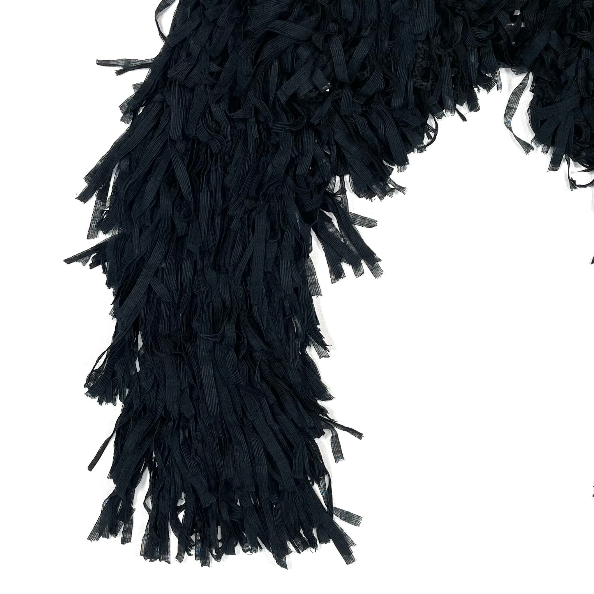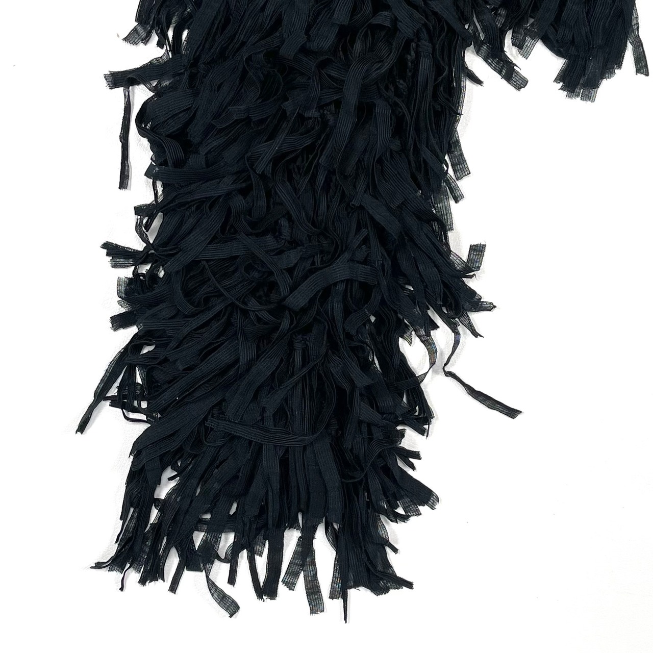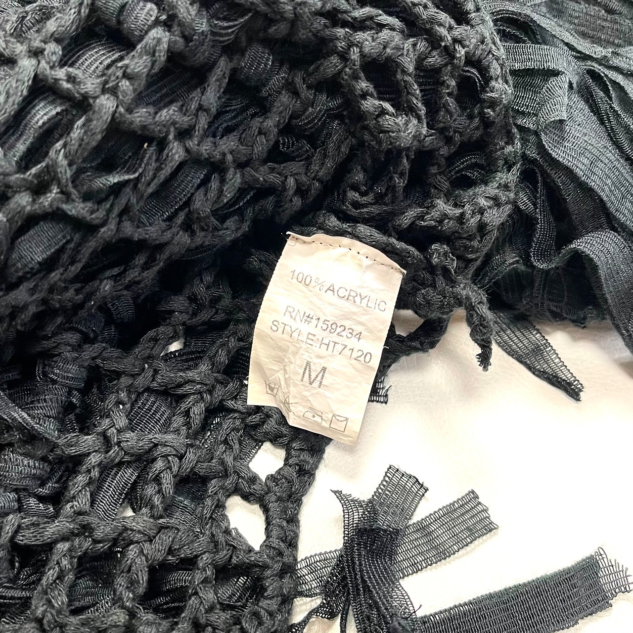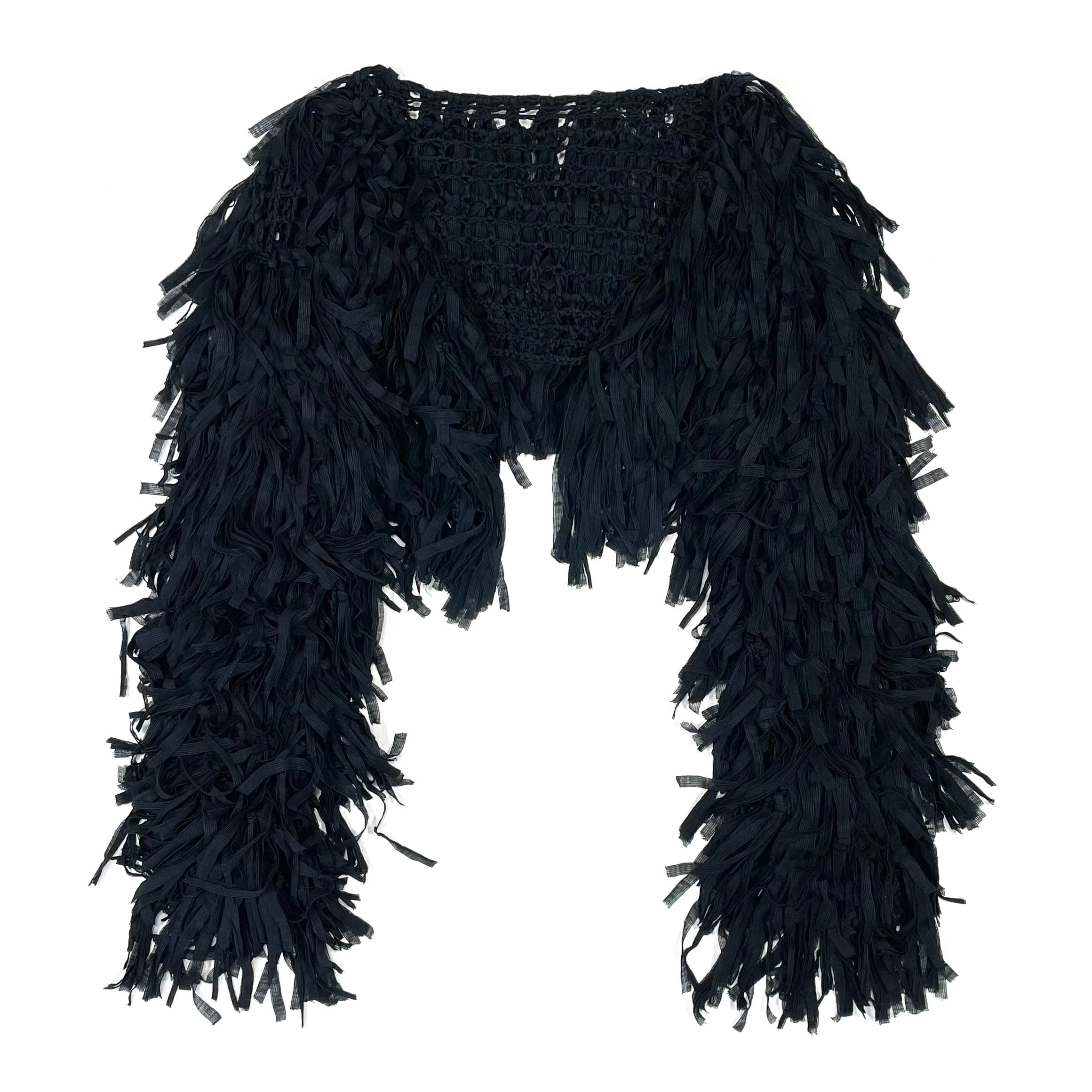 ネット状に編まれたボディにフリンジが編み込まれた作り