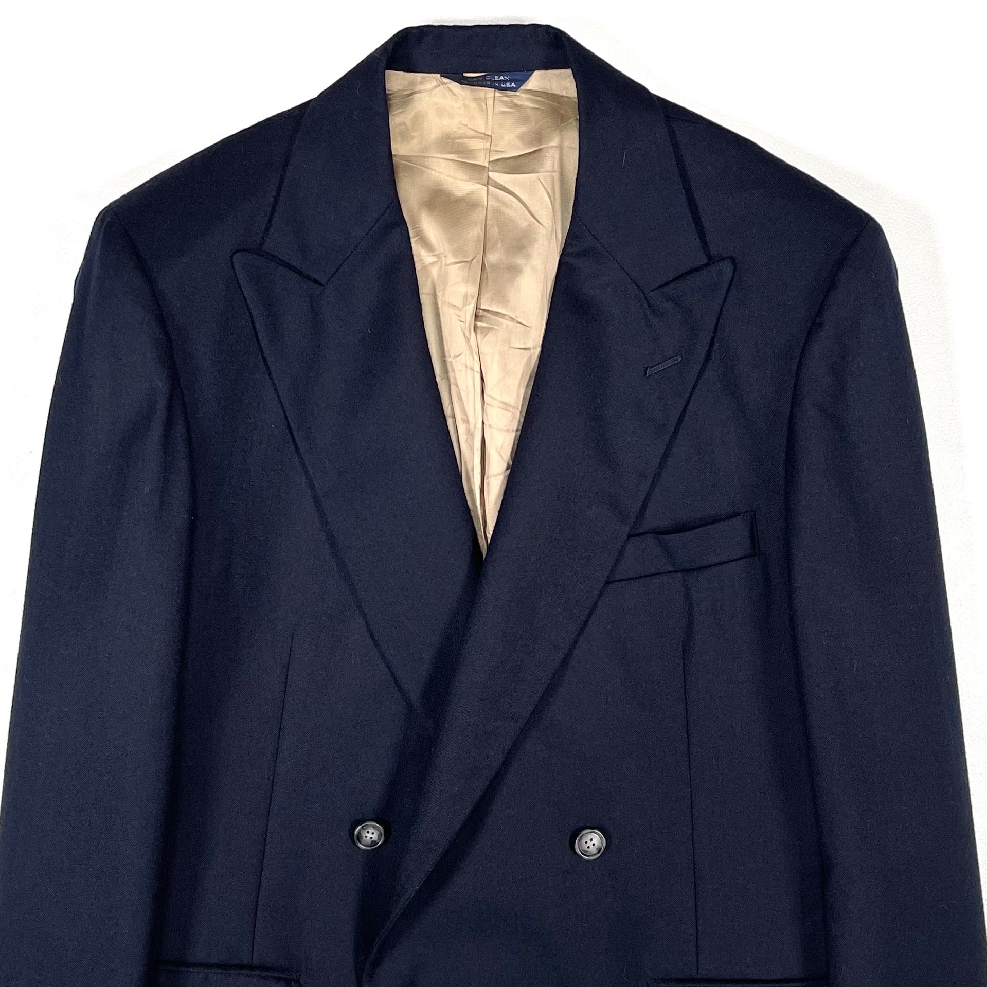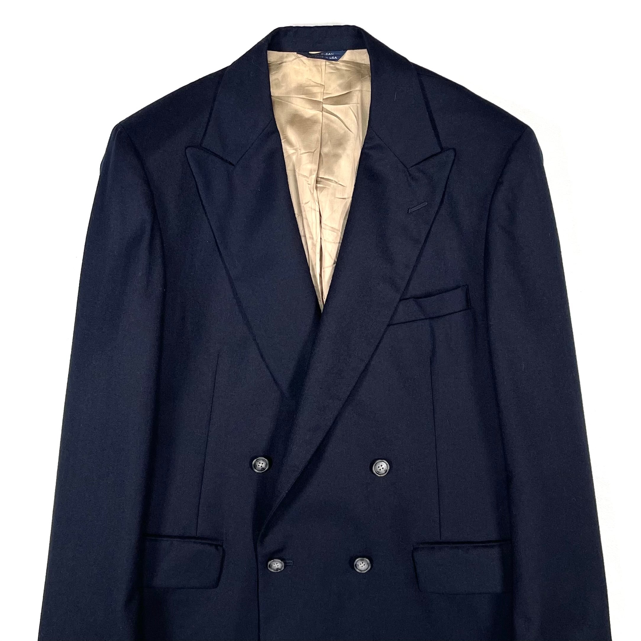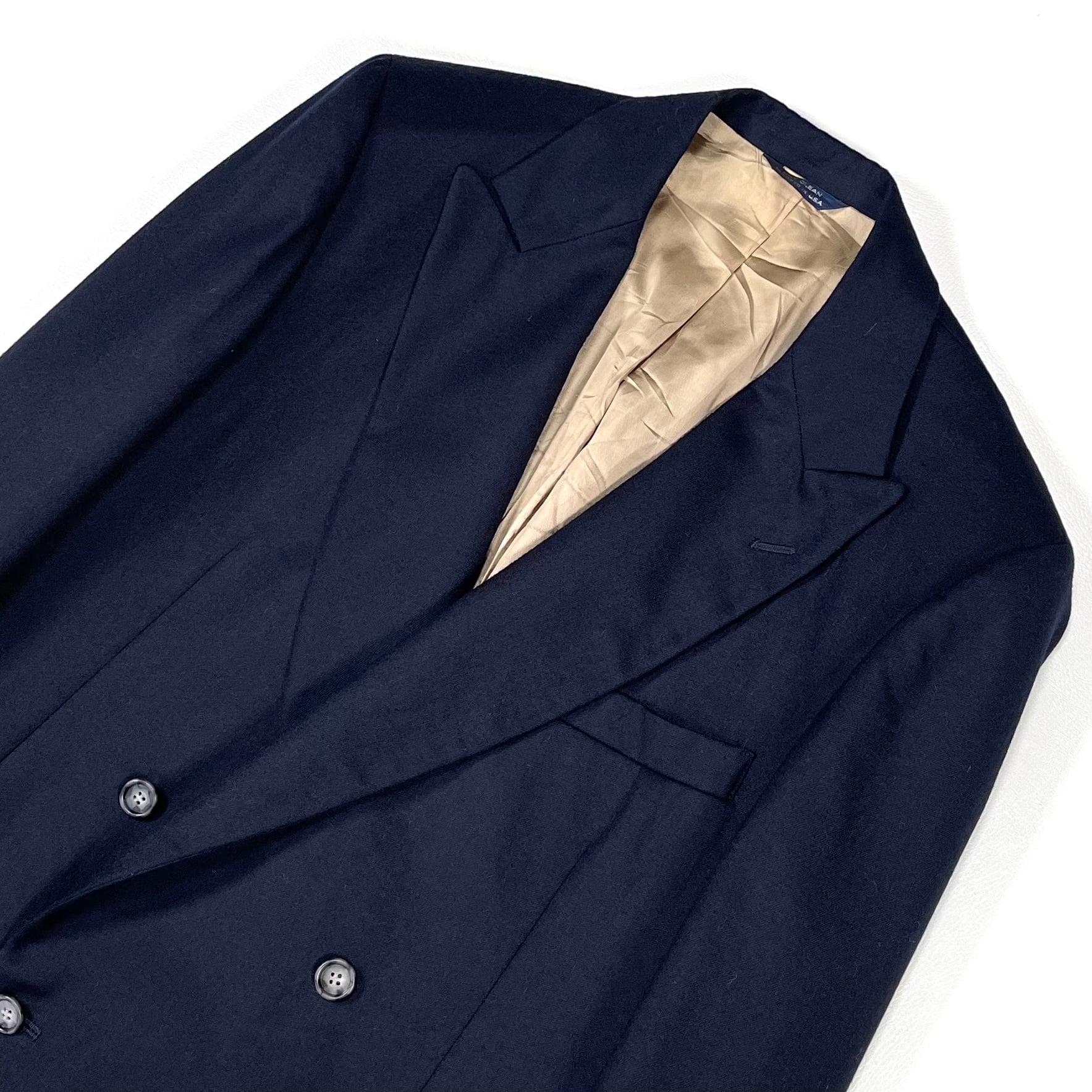 フロントは4つボタンで1つ掛けのダブルブレスト