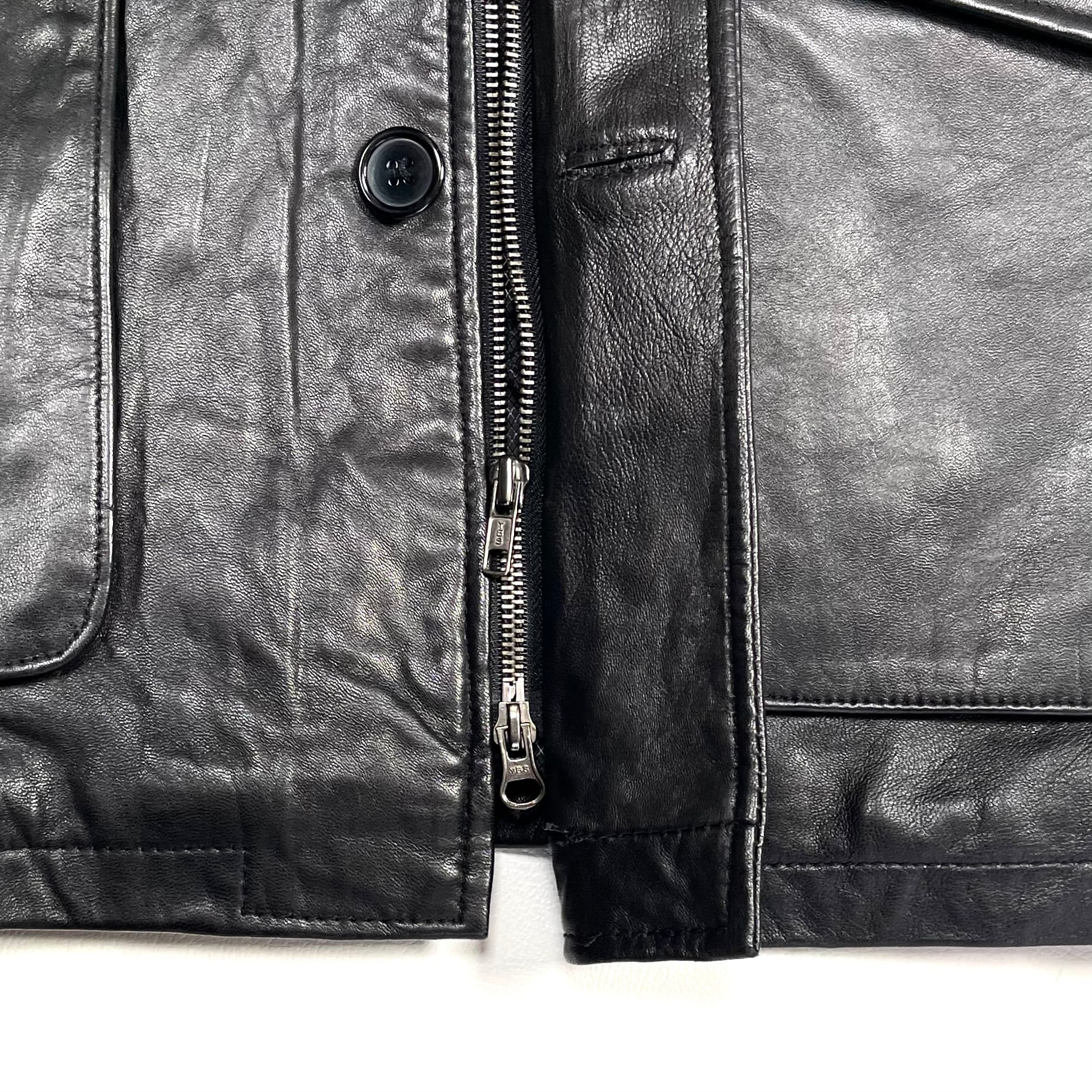 着用によるレザー特有のシワや多少のスレがございます。