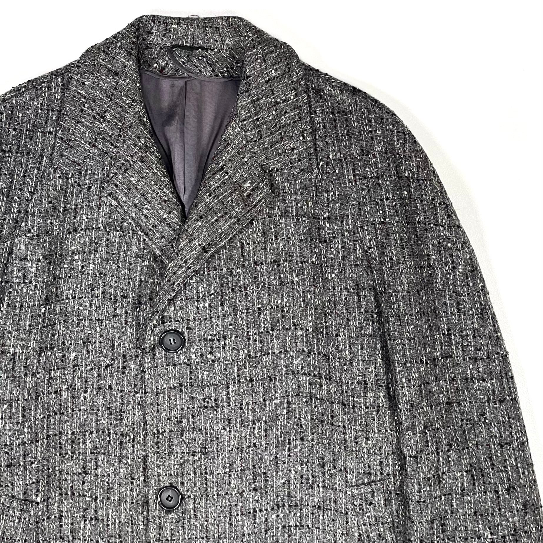 ミディアムグレーベースに白×黒×赤ネップが入ったミックスツイード