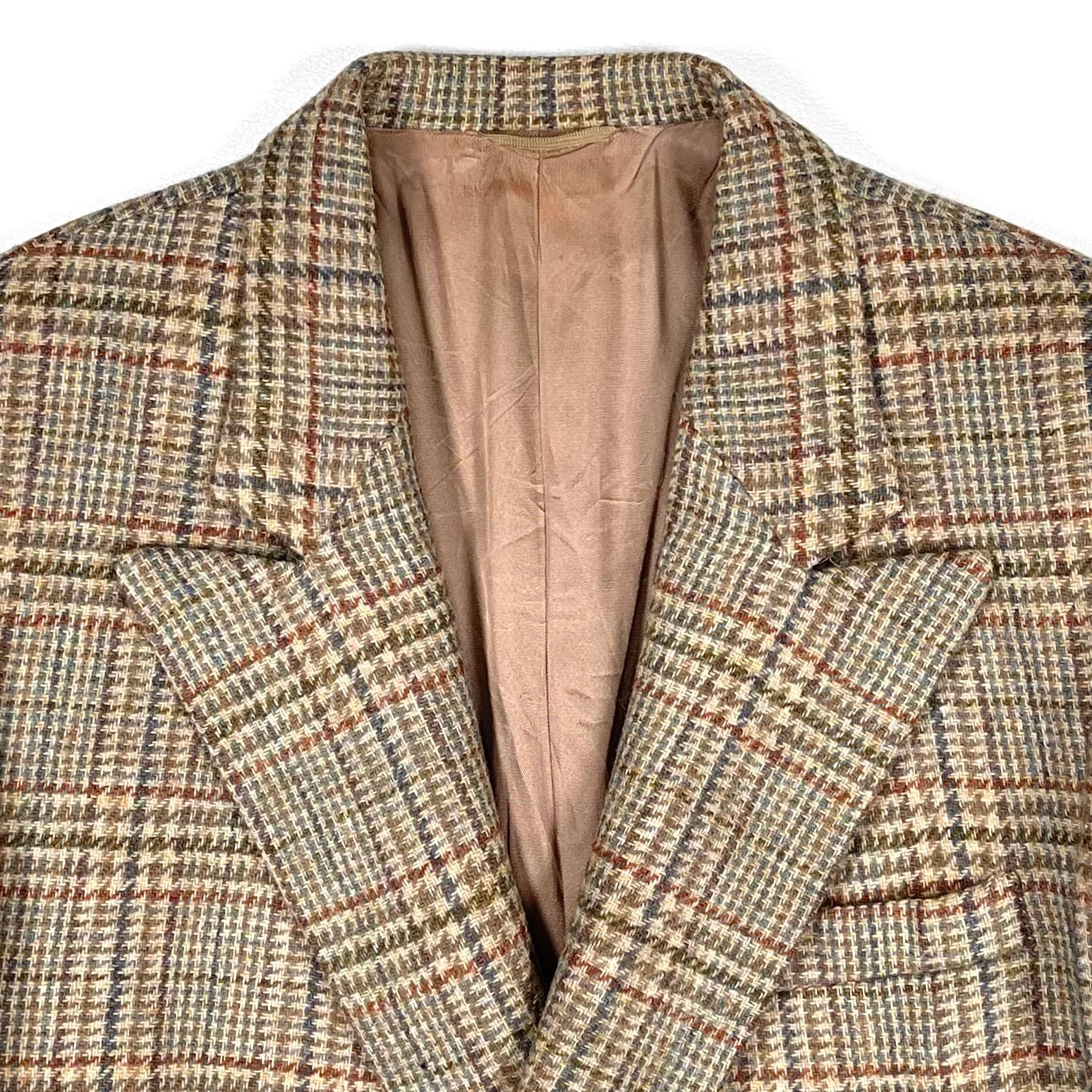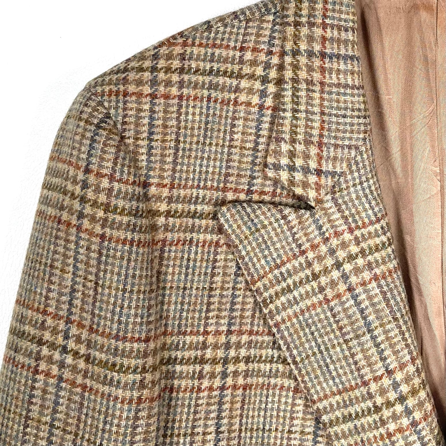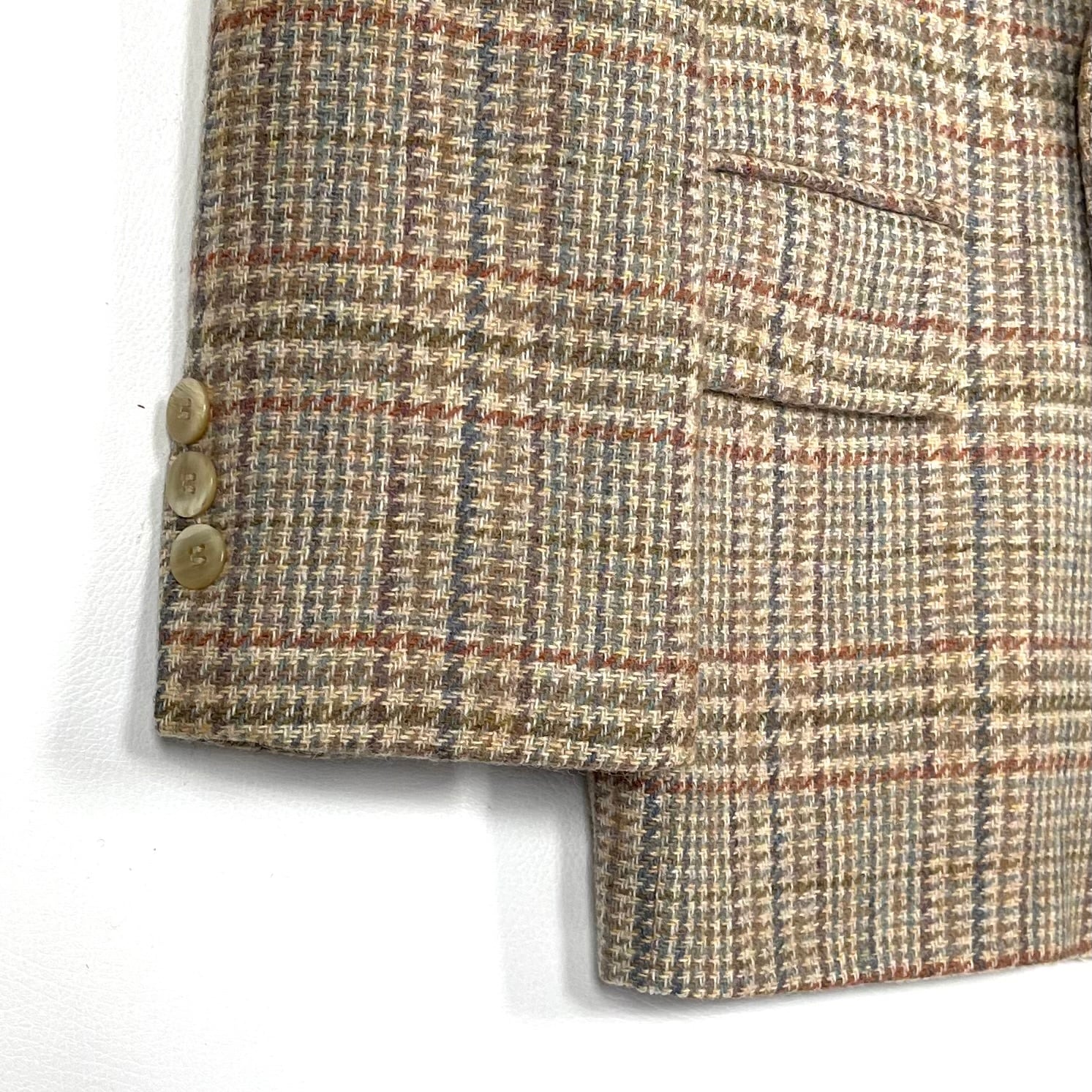 色味はベージュにキャメル×オレンジ×グレイッシュなネイビーのグレンチェック