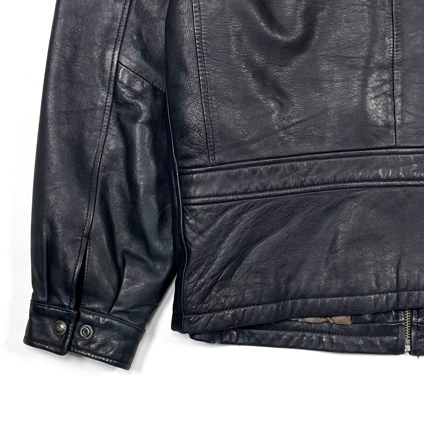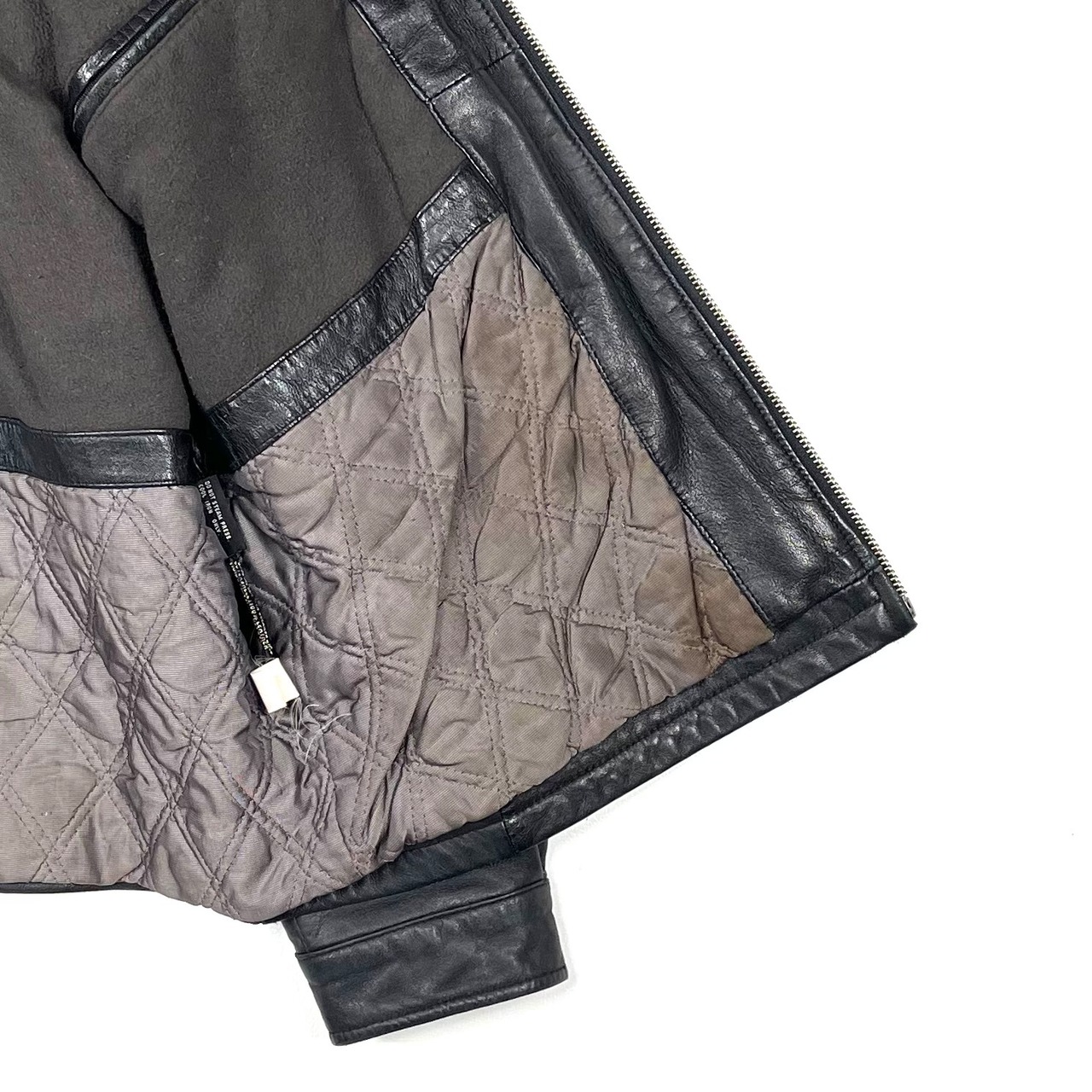レザー特有のシワやスレ、裏地に汚れがございます