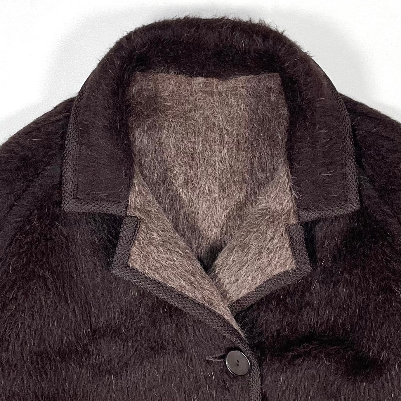 毛足が長いマテリアルでリバーシブルの70sマックコート