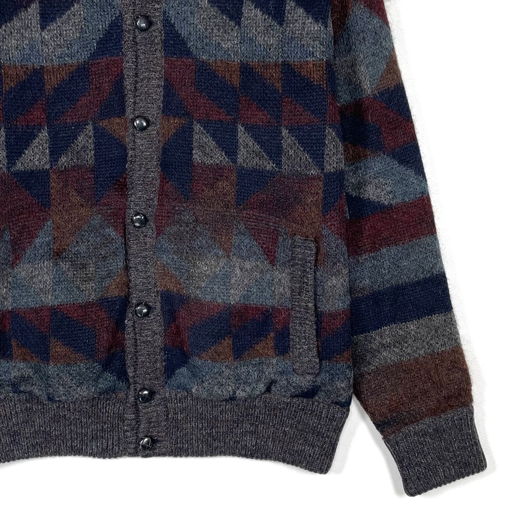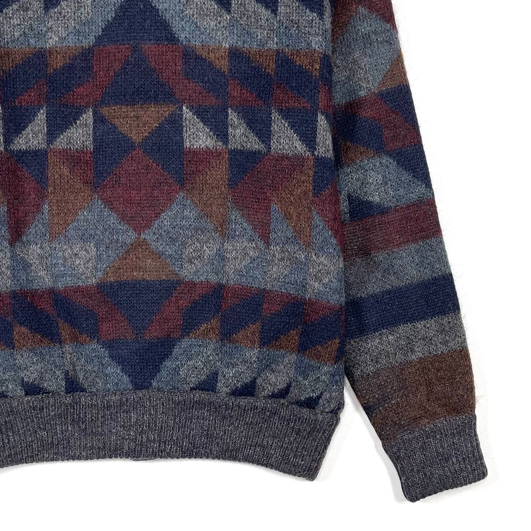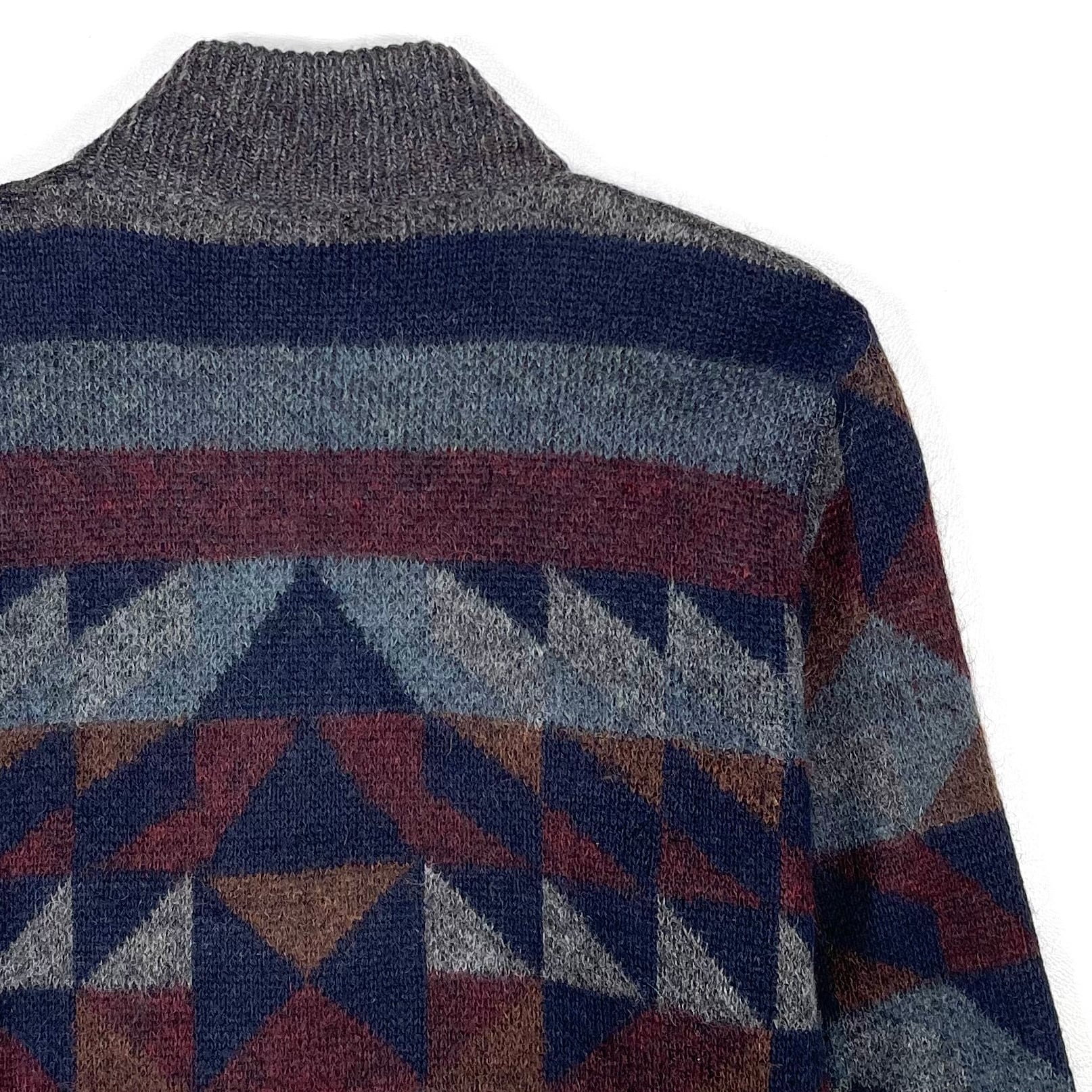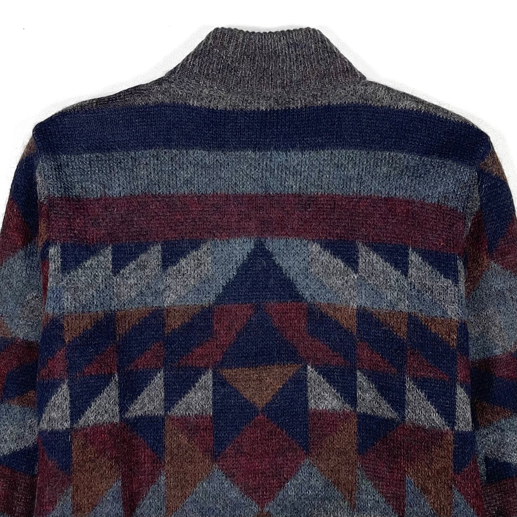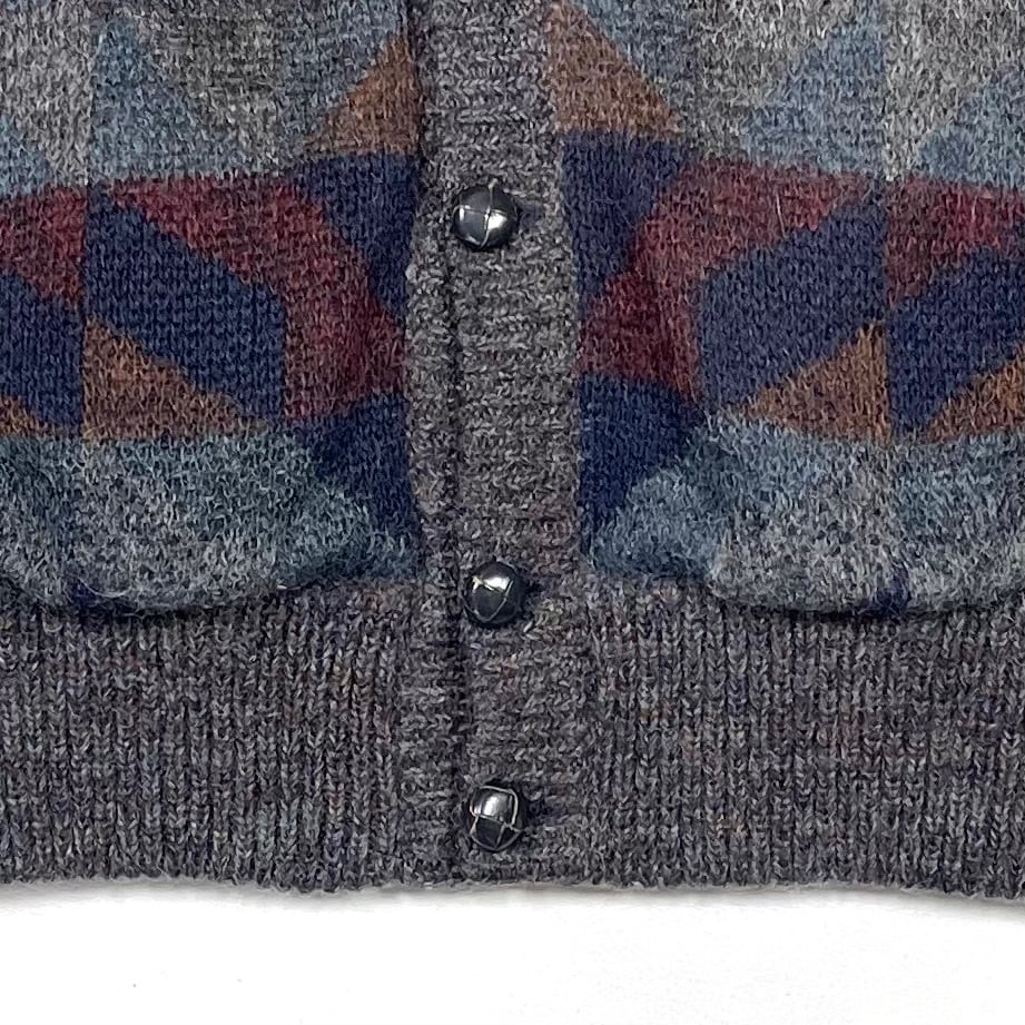 配色が良いイタリア製のオルテガ柄ハイネックカーディガン