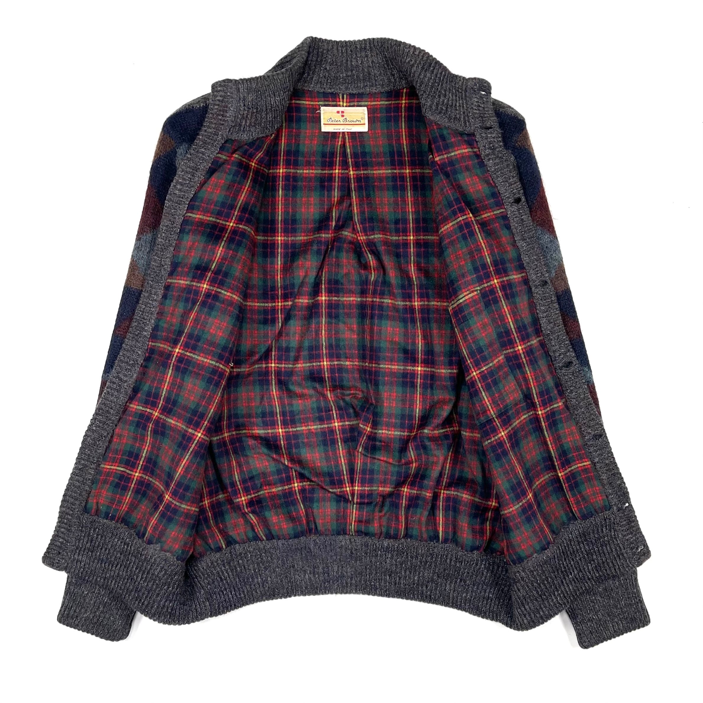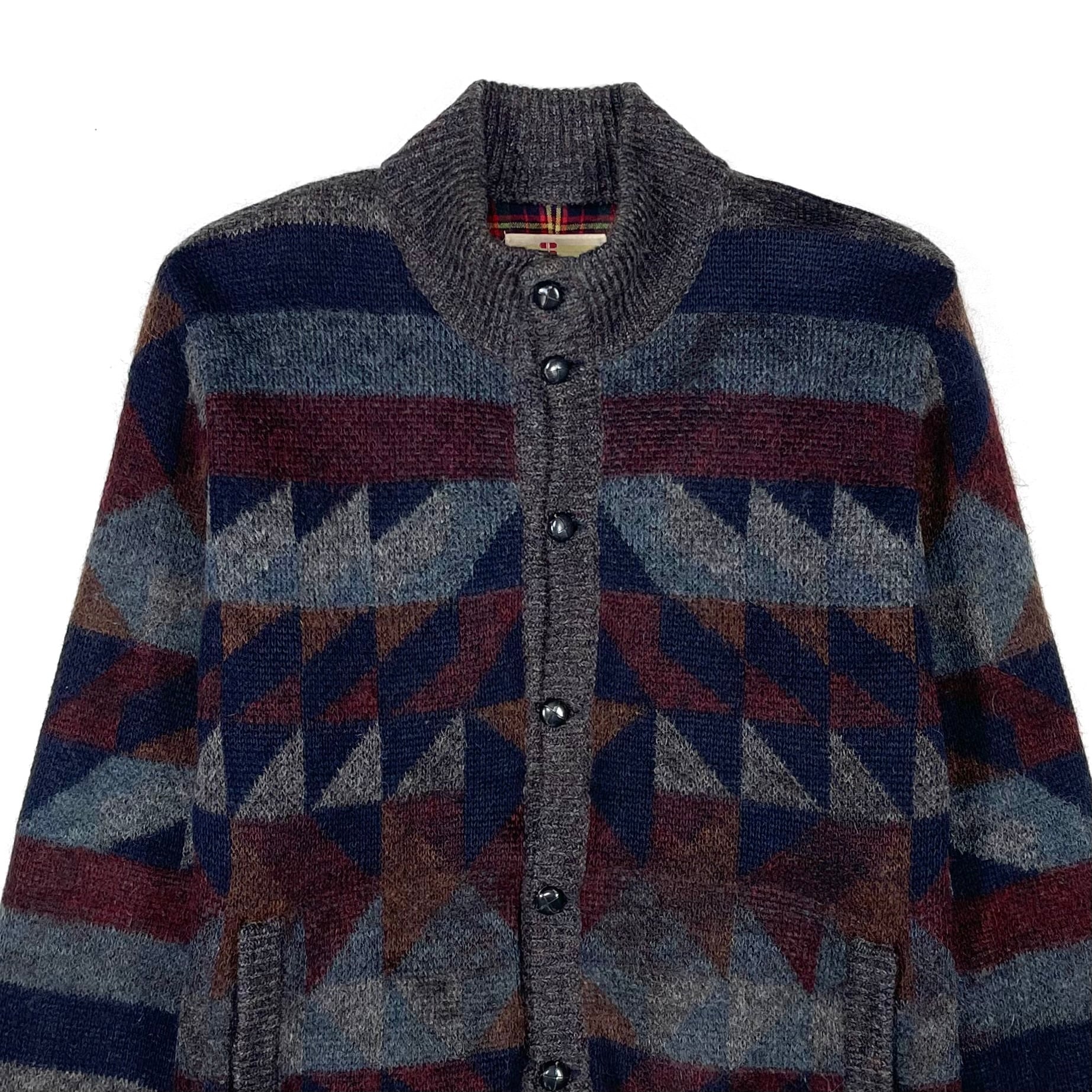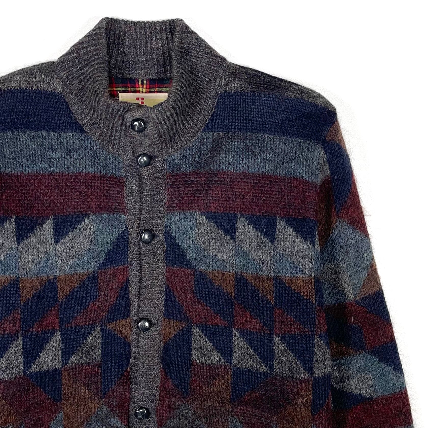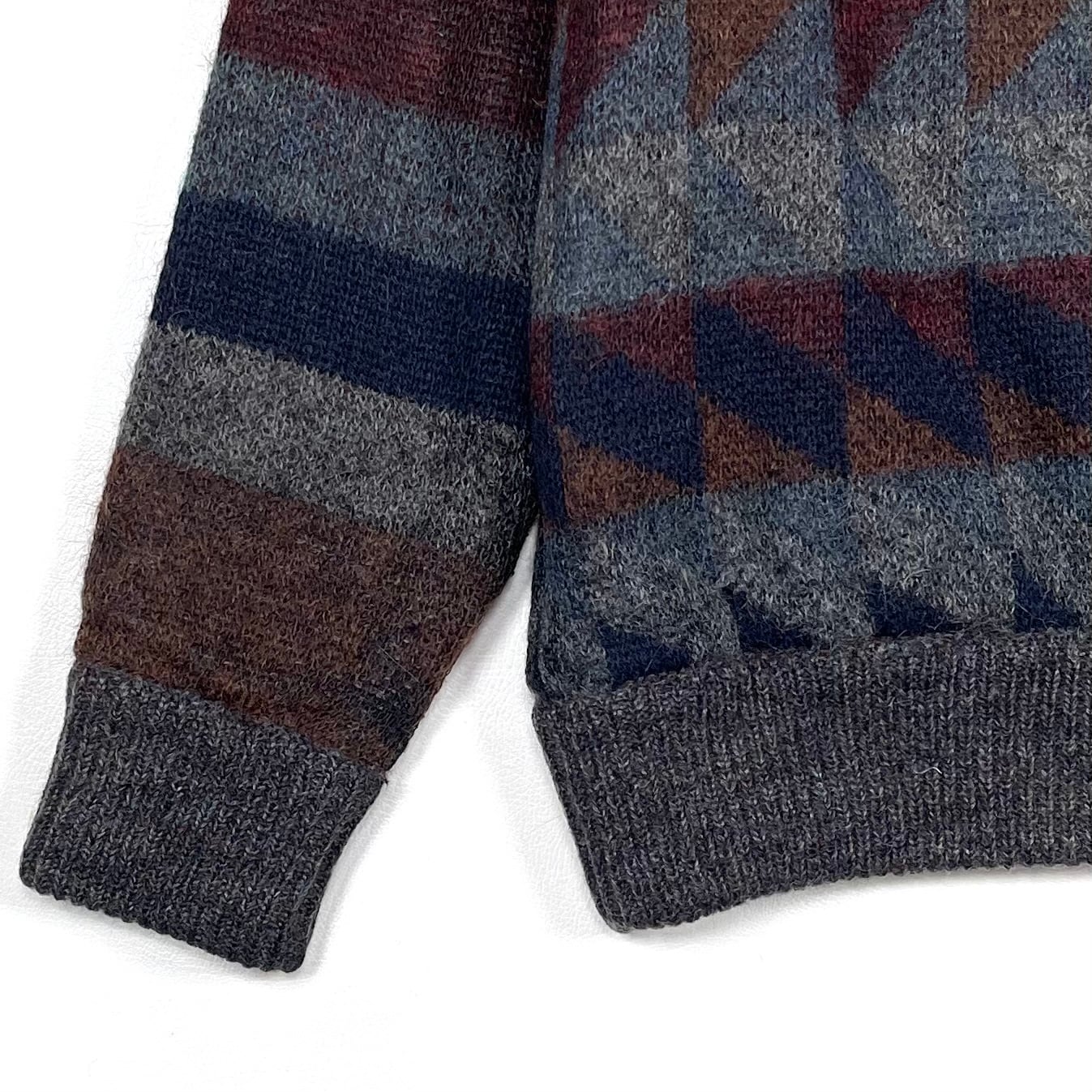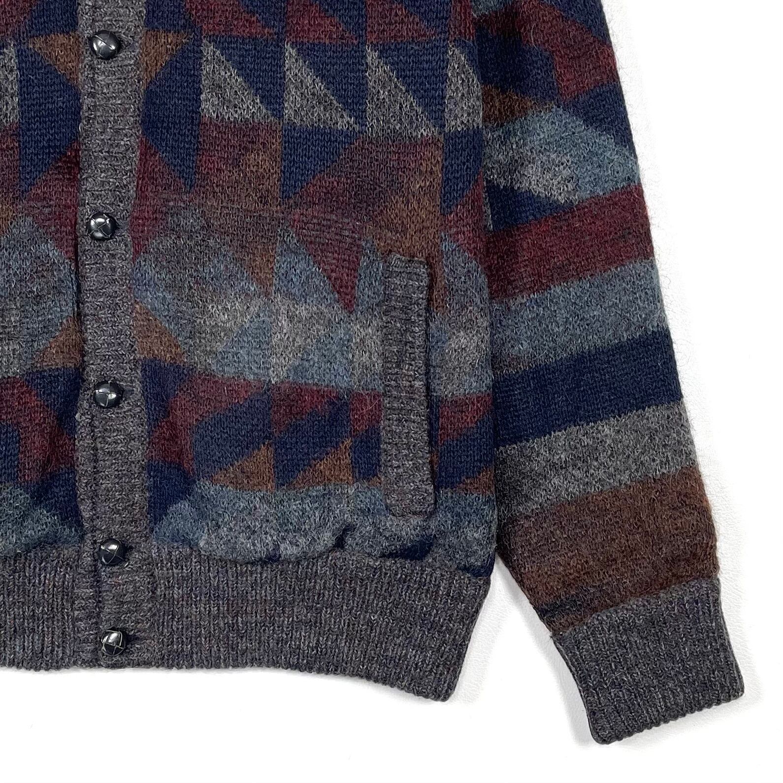 配色が良いイタリア製のオルテガ柄ハイネックカーディガン