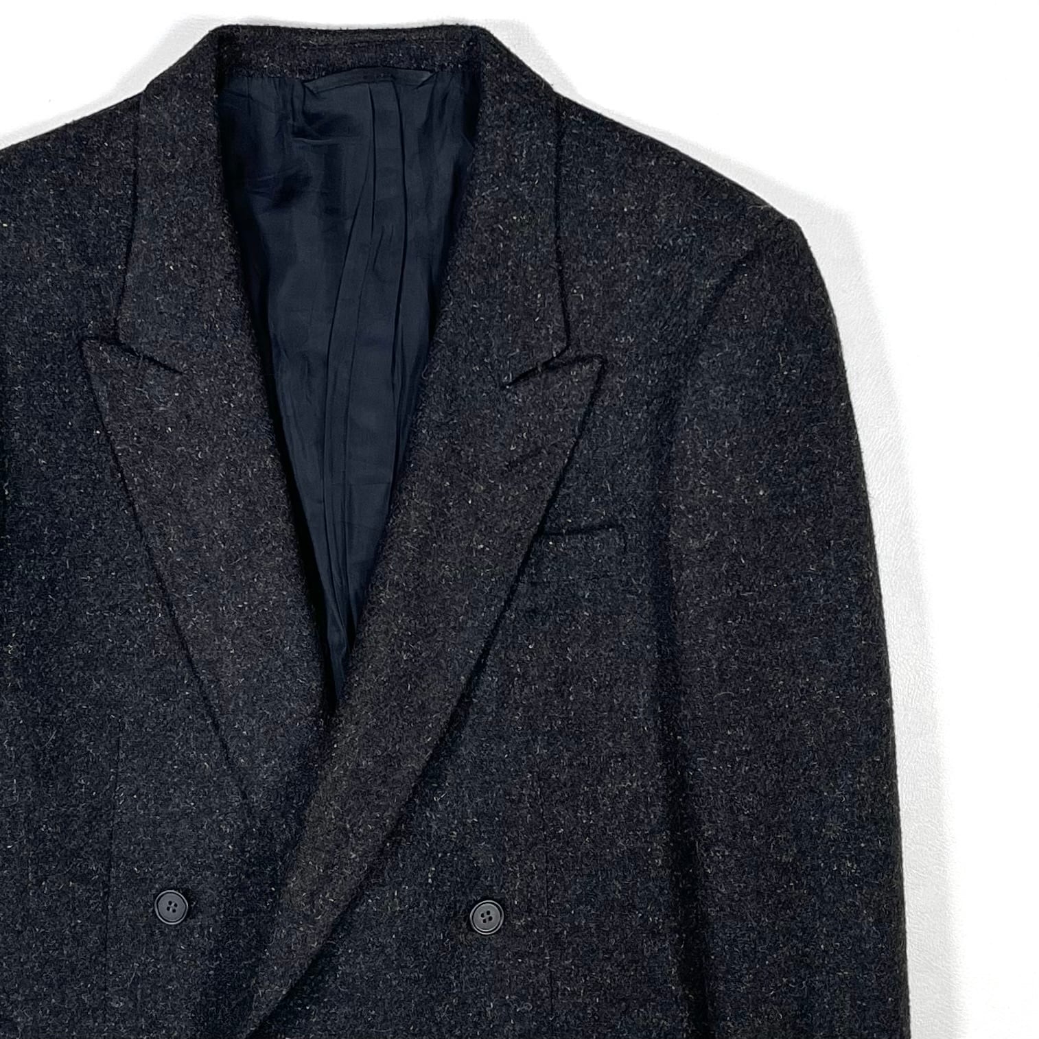 クラシックでシャープなピークドラペルのダブルブレストジャケット