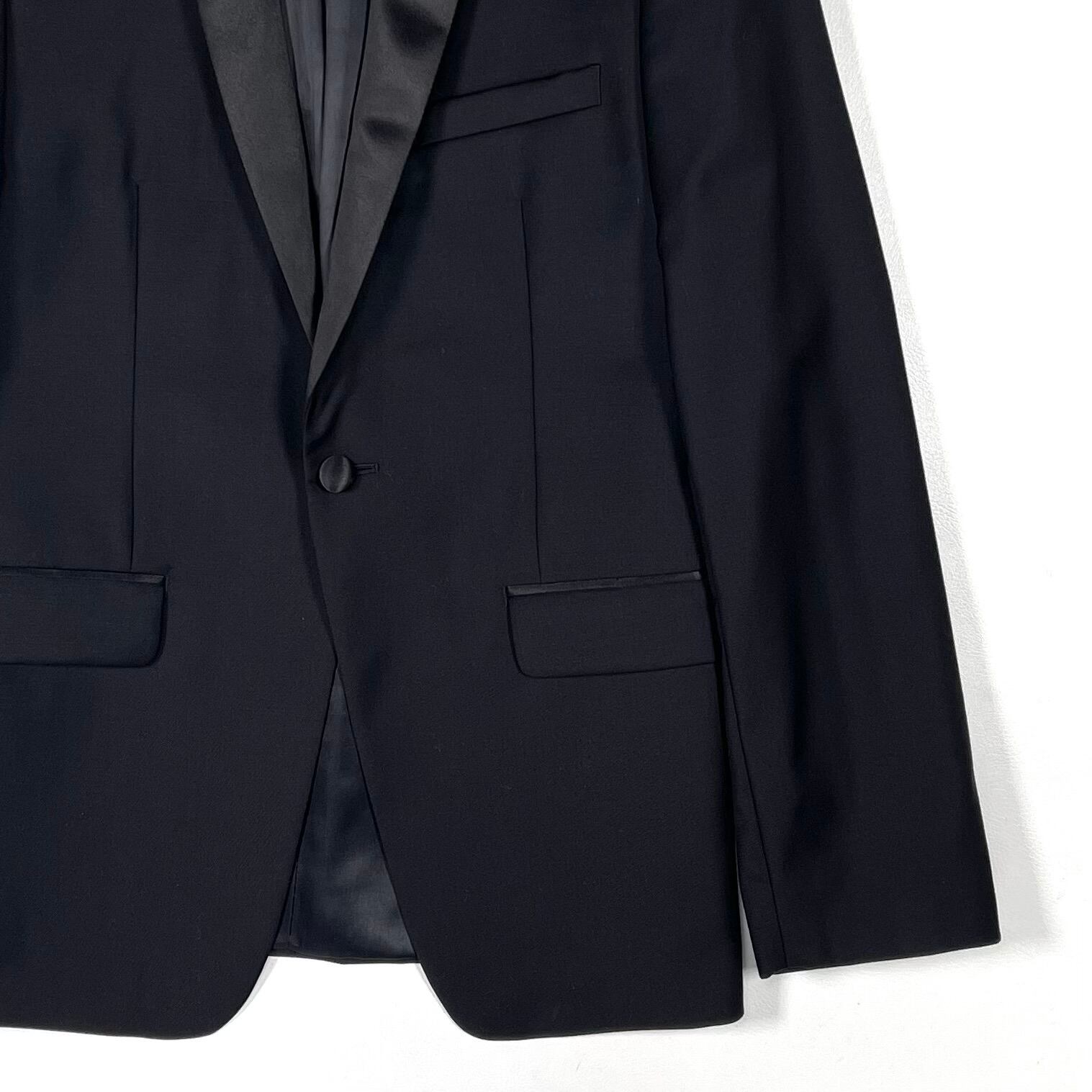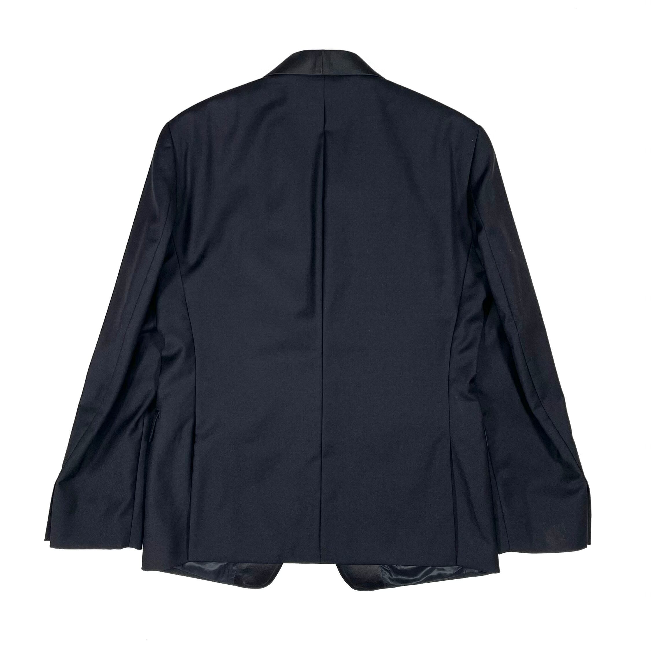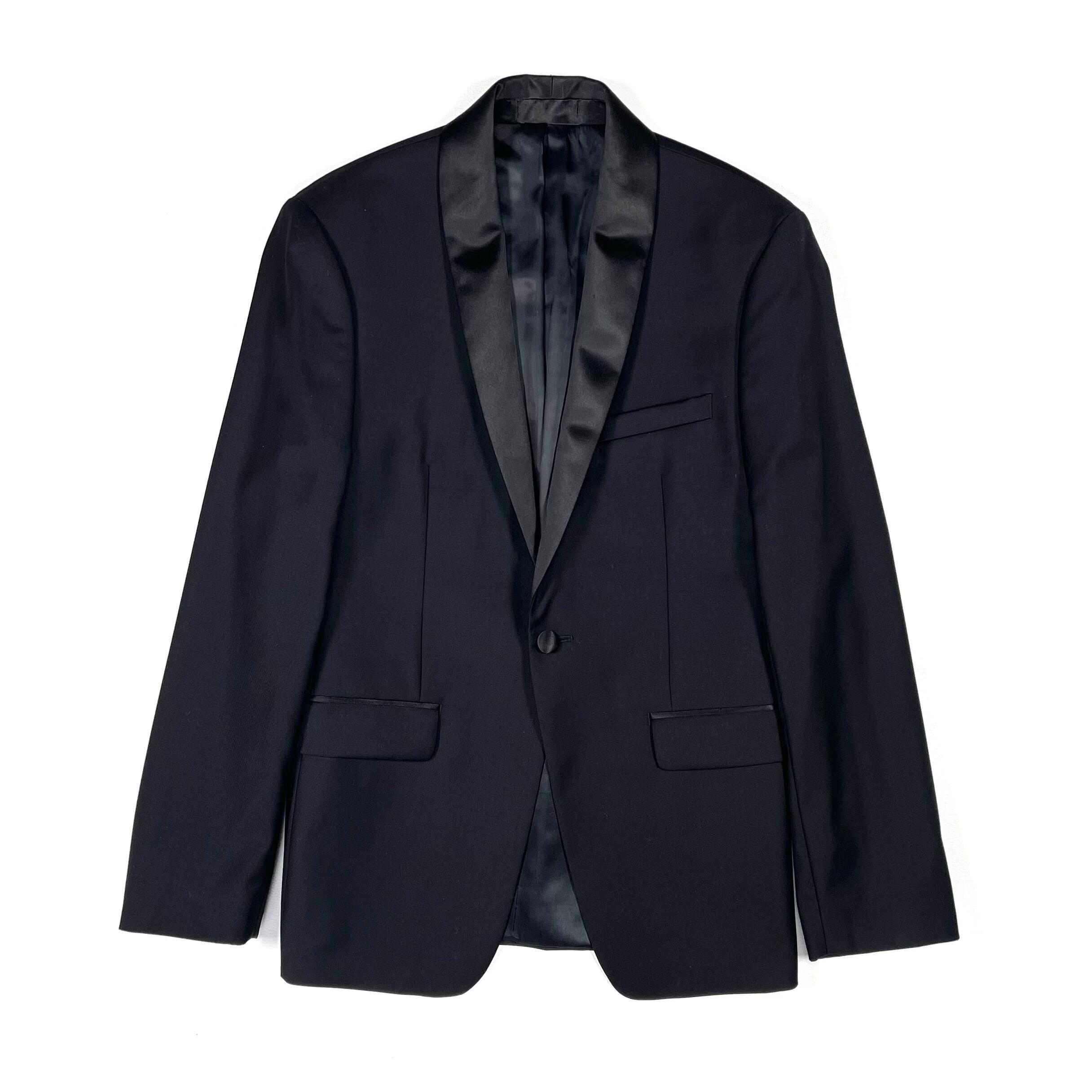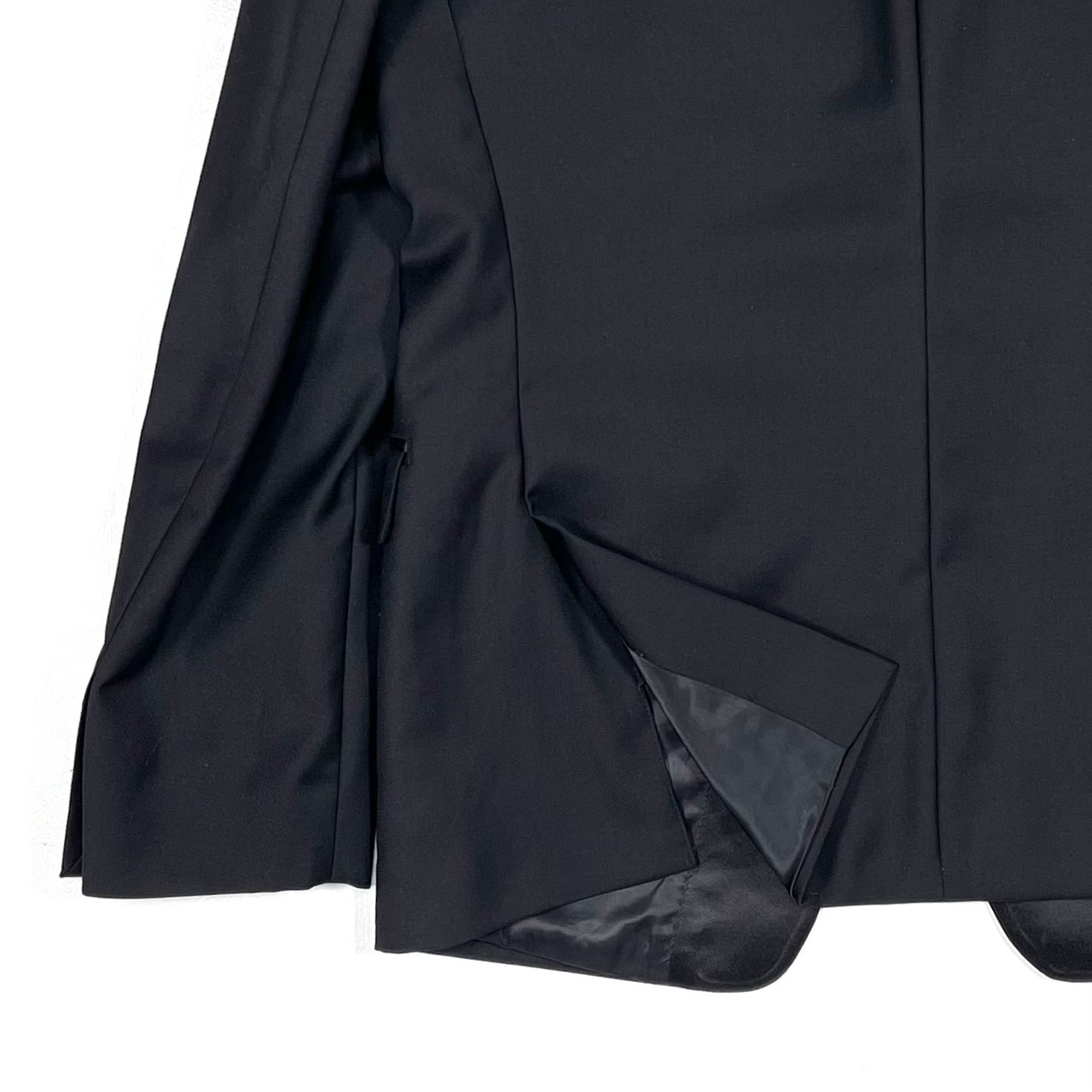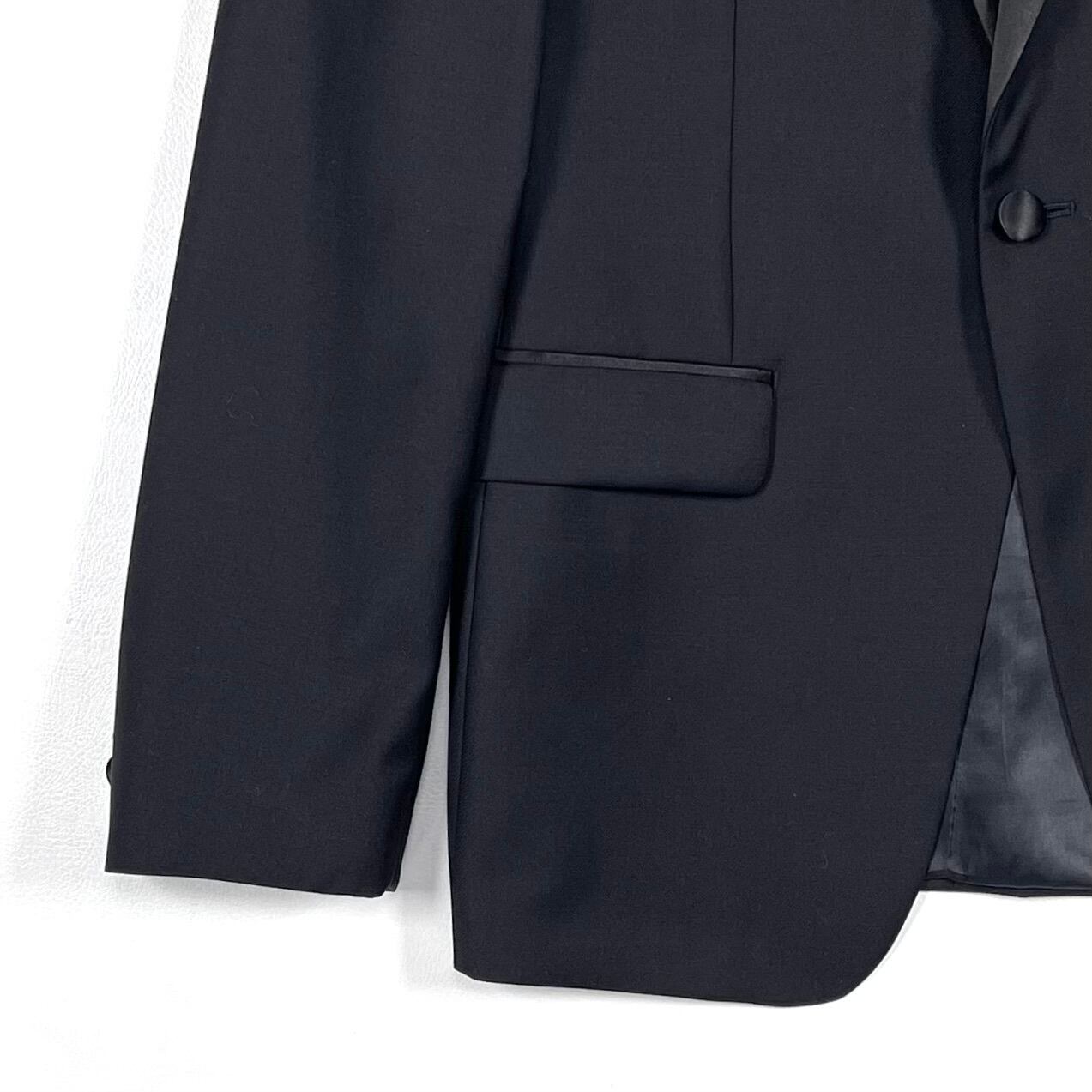 シャープなショールカラーのサテンラペル