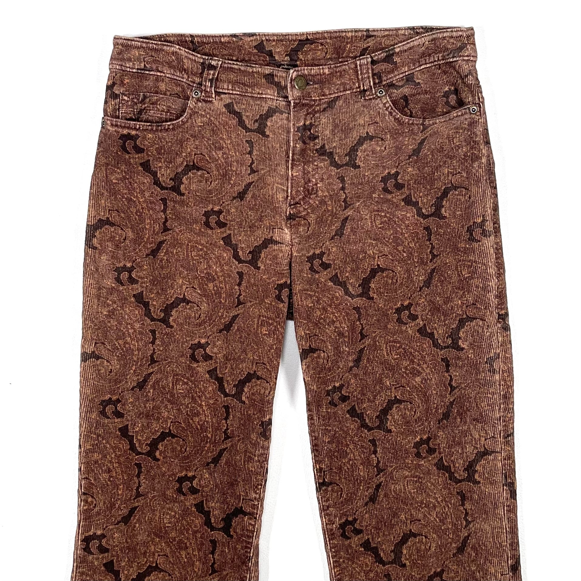 ペイズリー柄のコーデュロイフレアパンツ