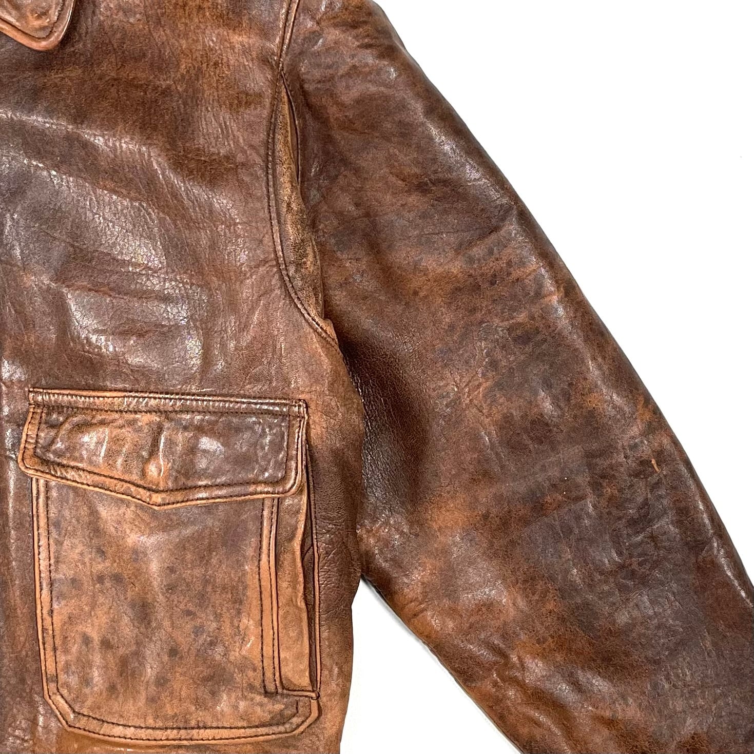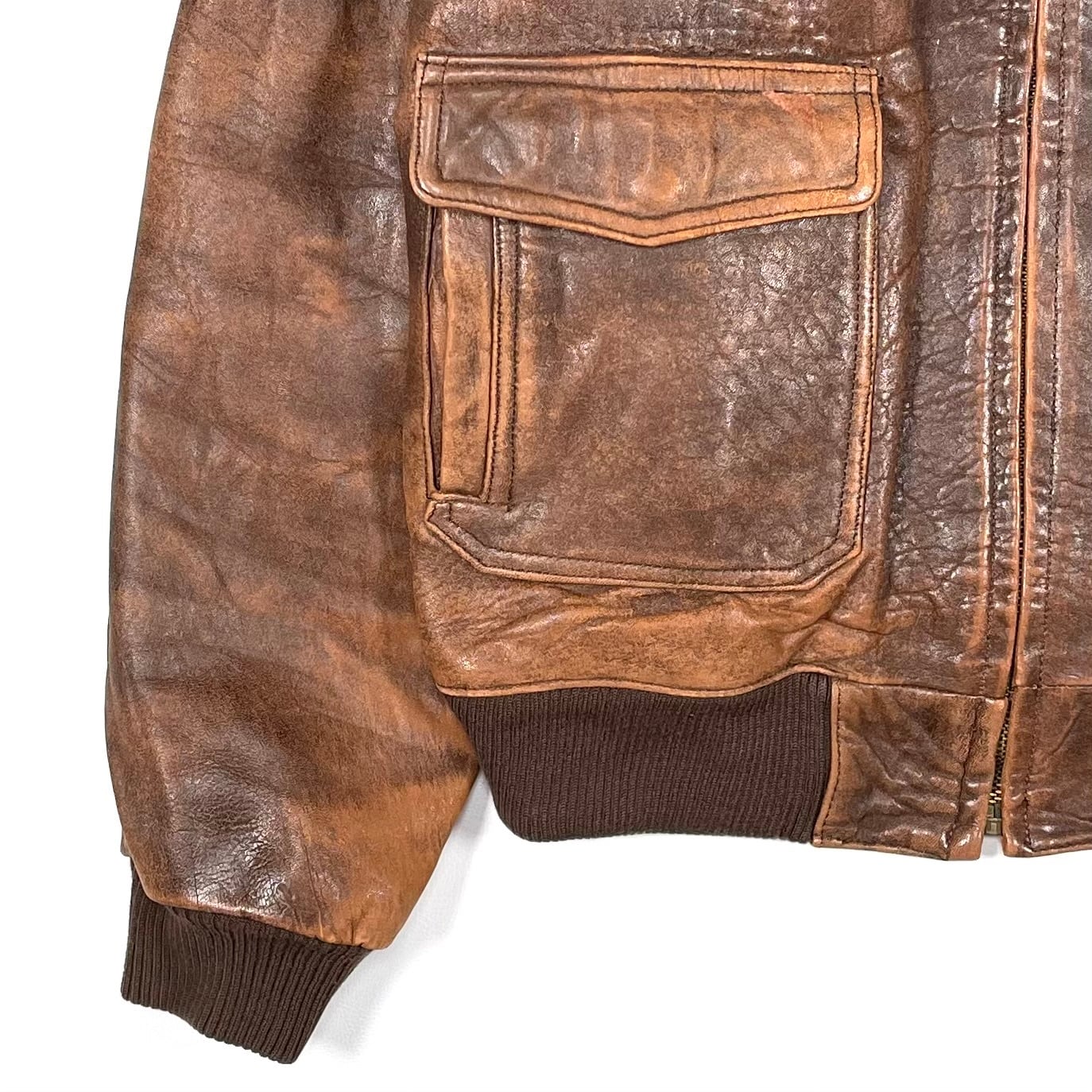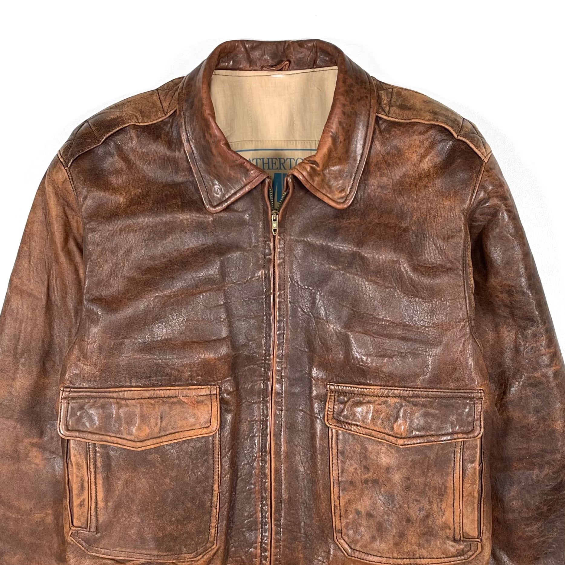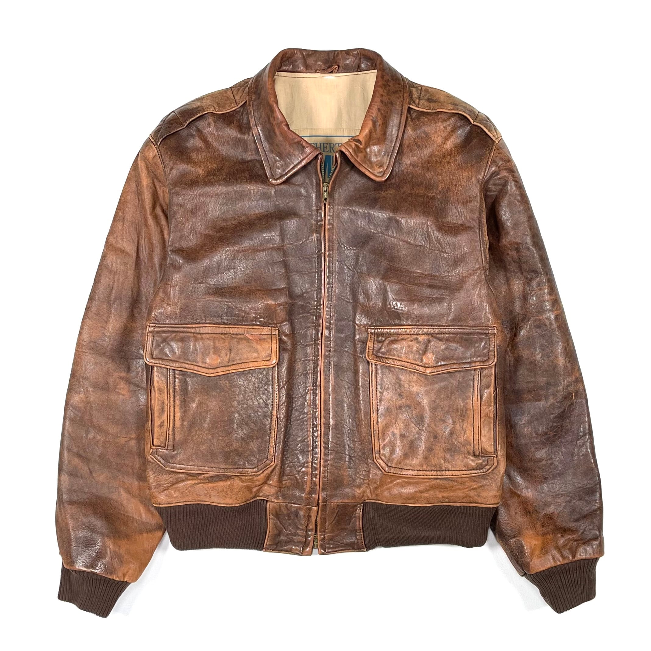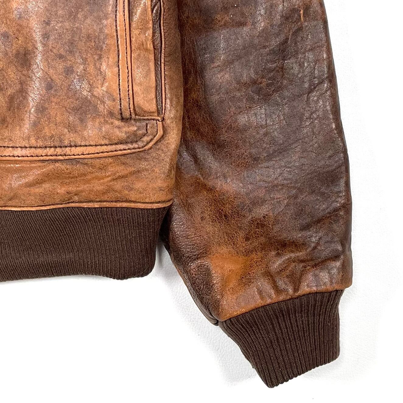 レザーの質感と色味が良く、味が出たA-2タイプのレザーブルゾン