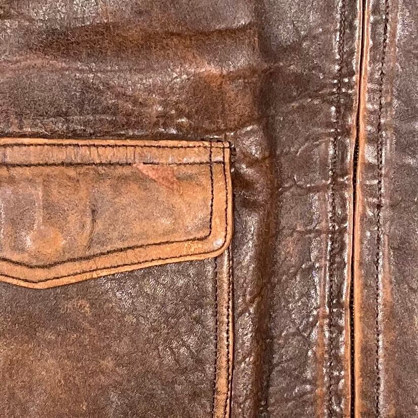 ポケットのレザーのハゲと脇のハトメの取れ、リブのダメージ