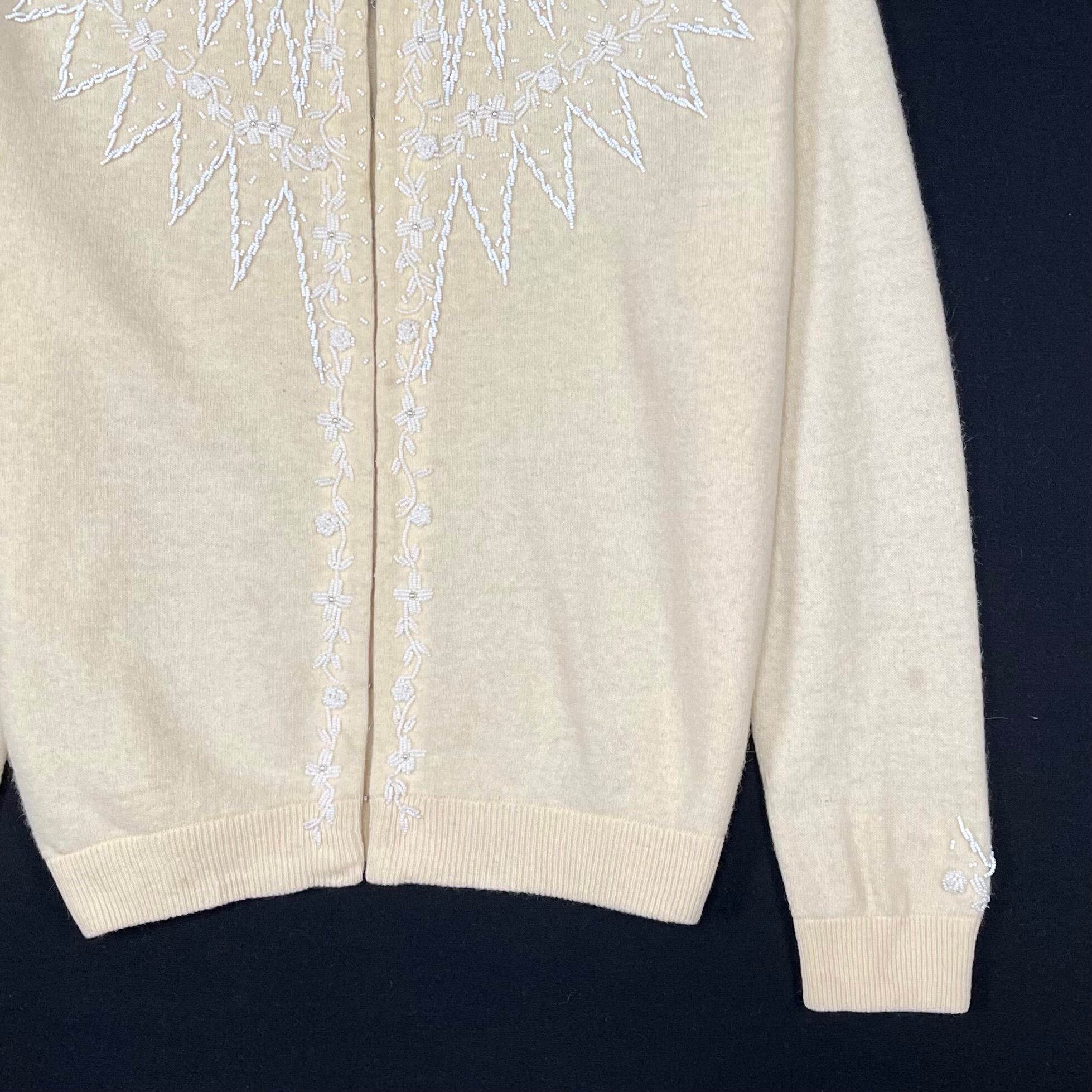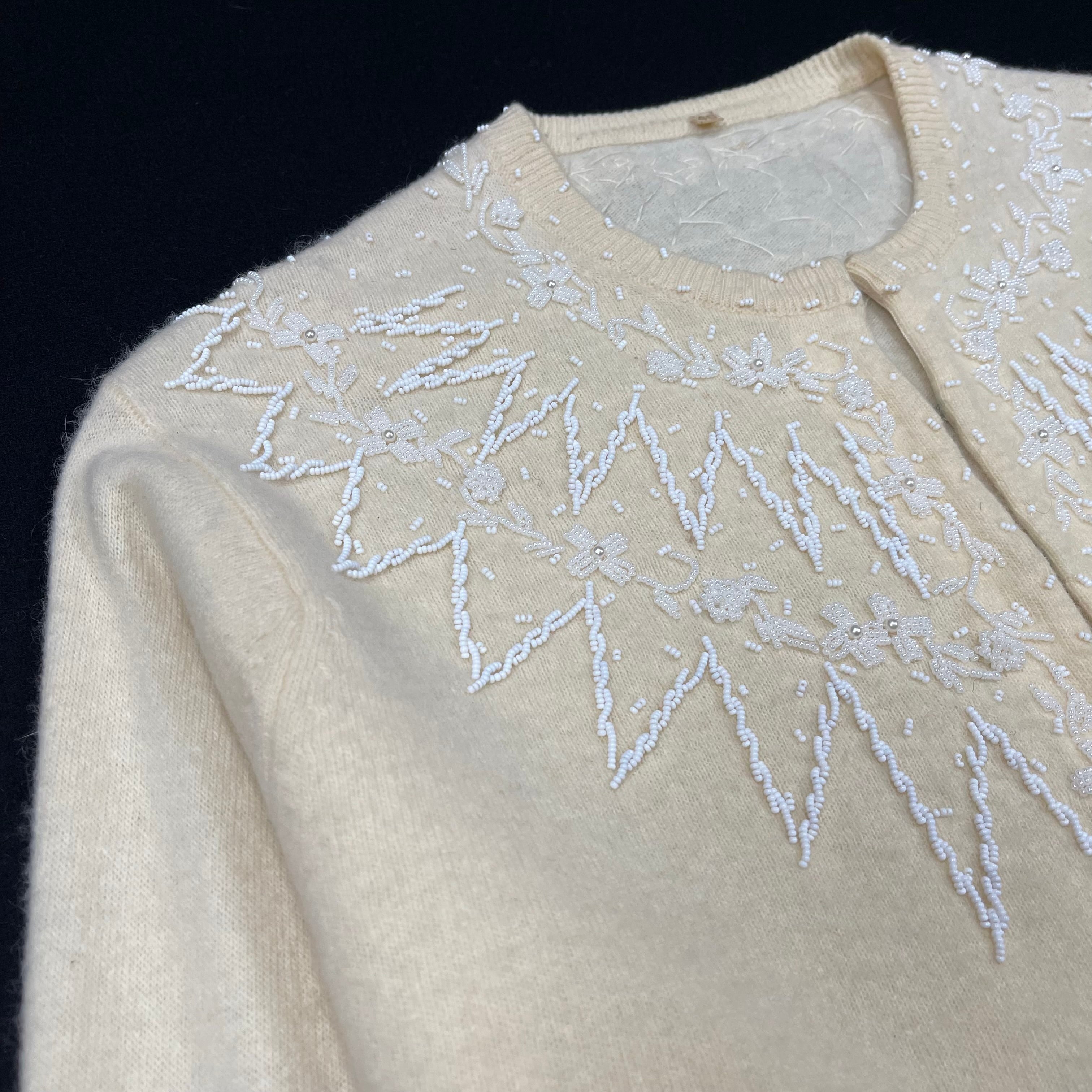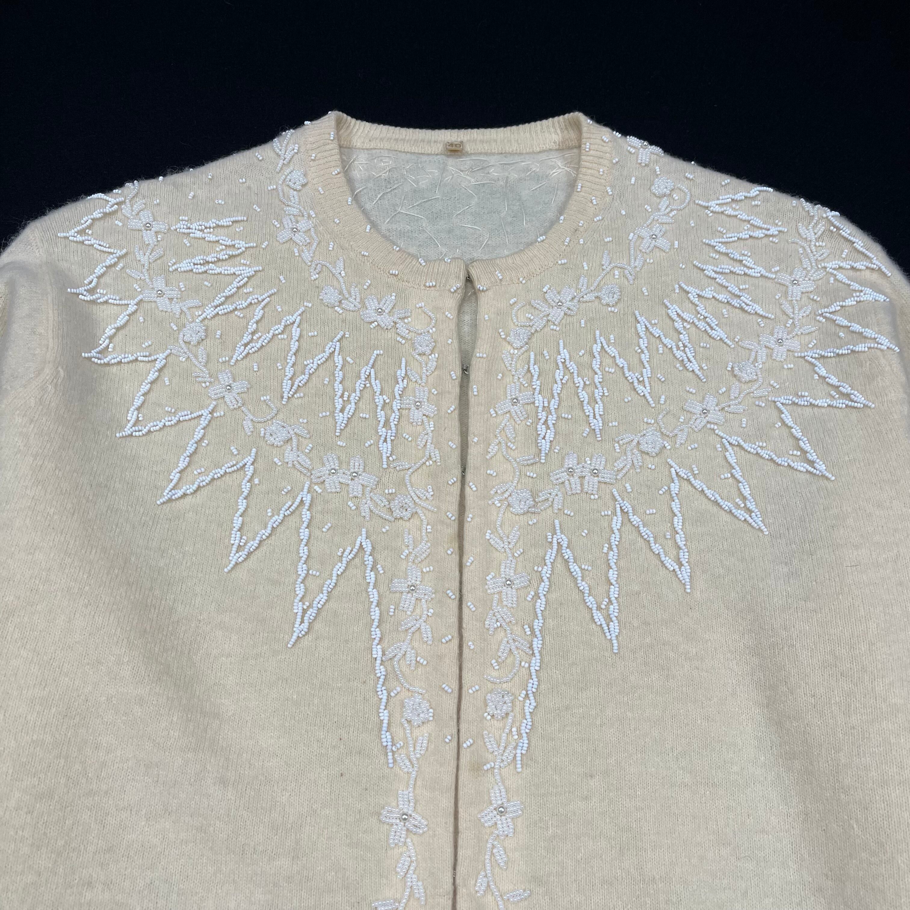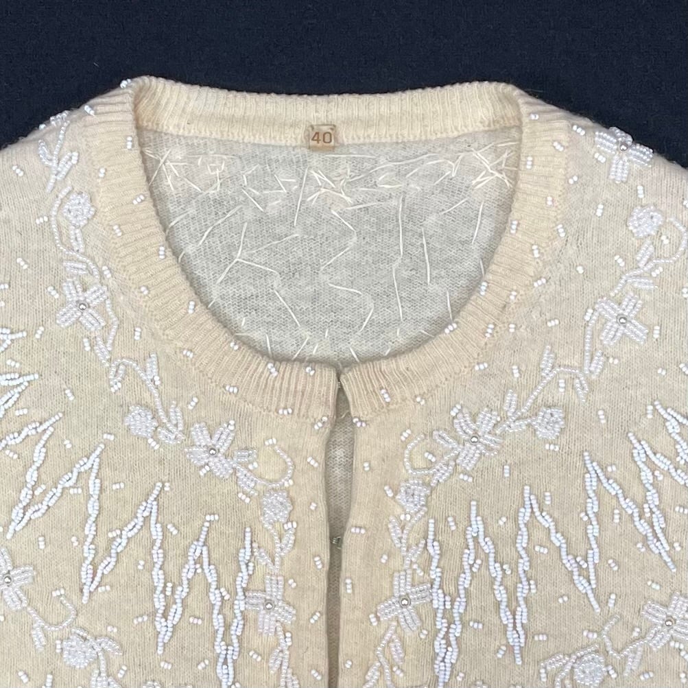 手まつりで縫われたビーズ刺繍で、デザイン良が良い1950sの刺繍カーディガン