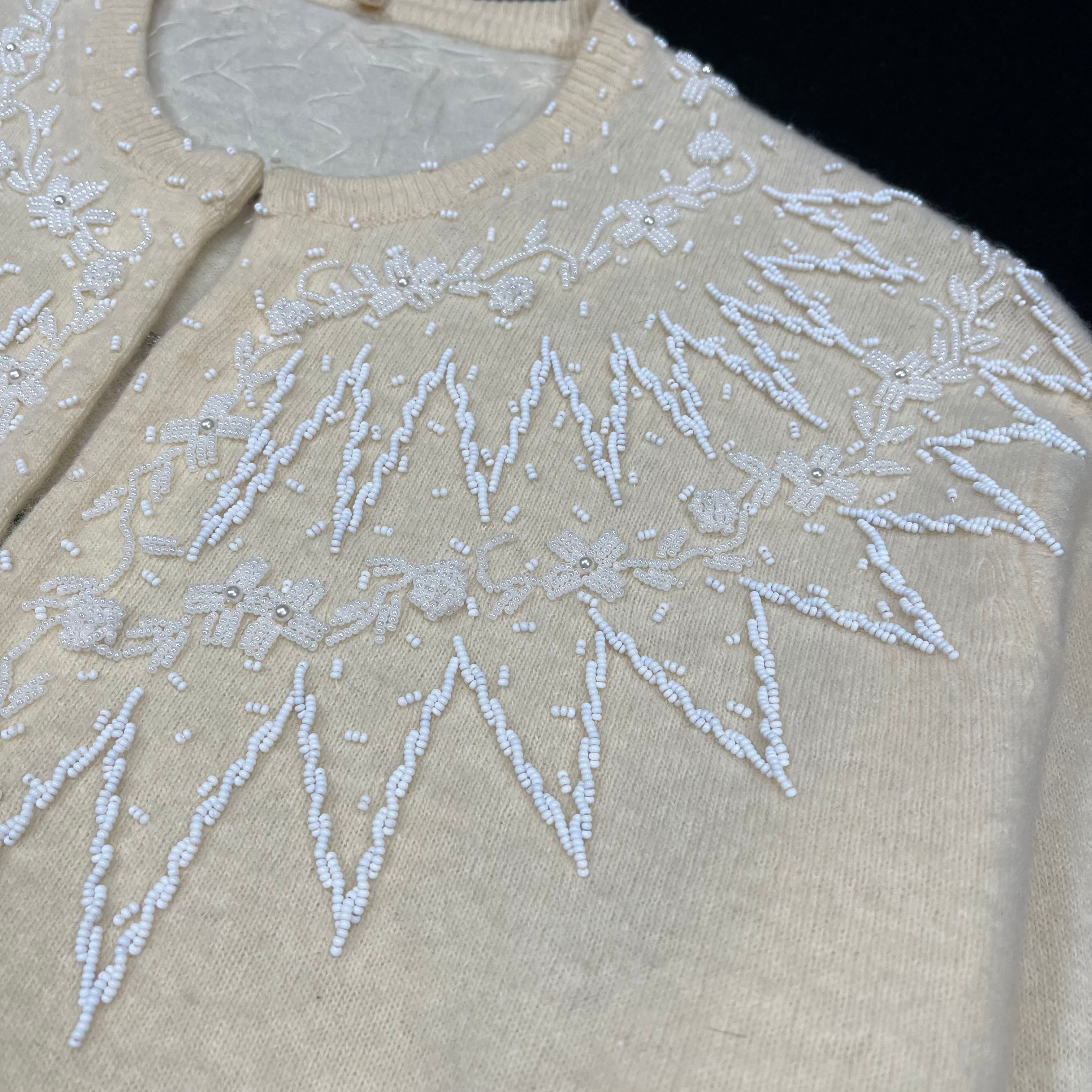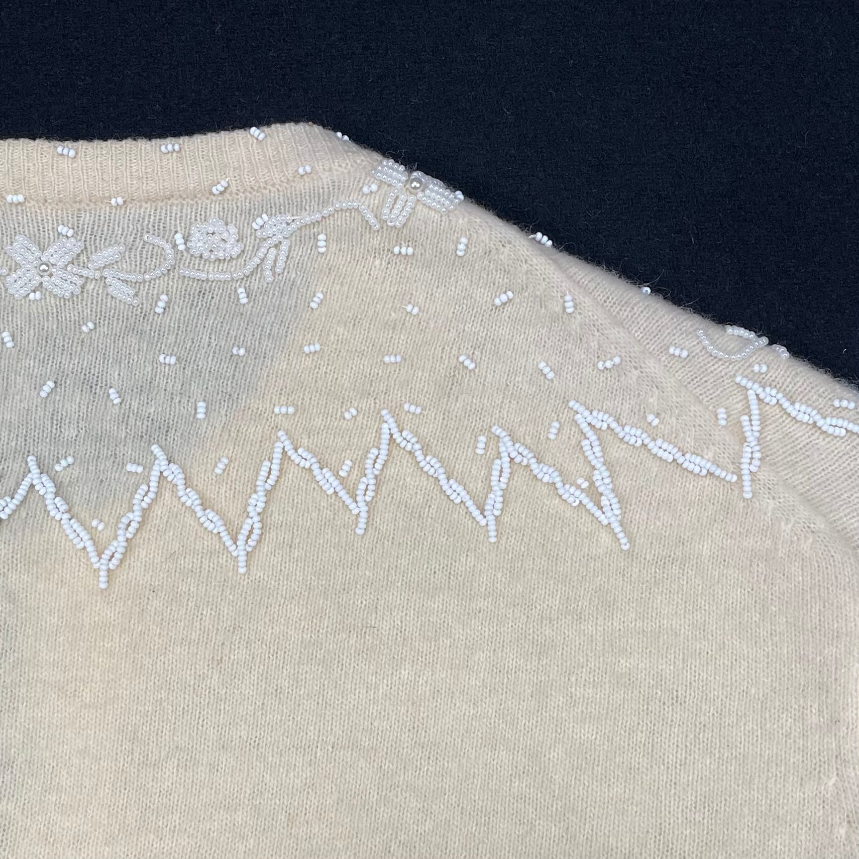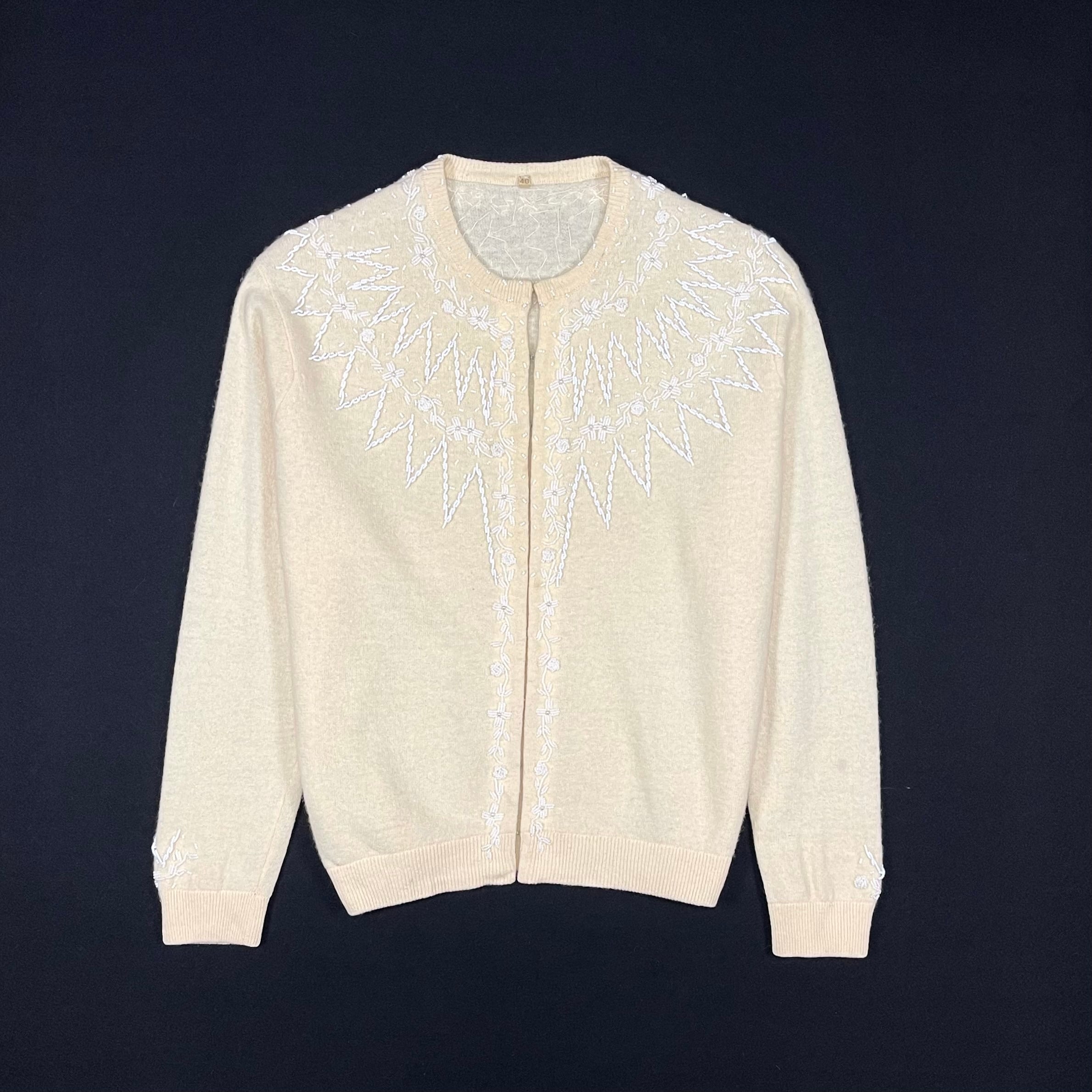 手まつりで縫われたビーズ刺繍で、デザイン良が良い1950sの刺繍カーディガン