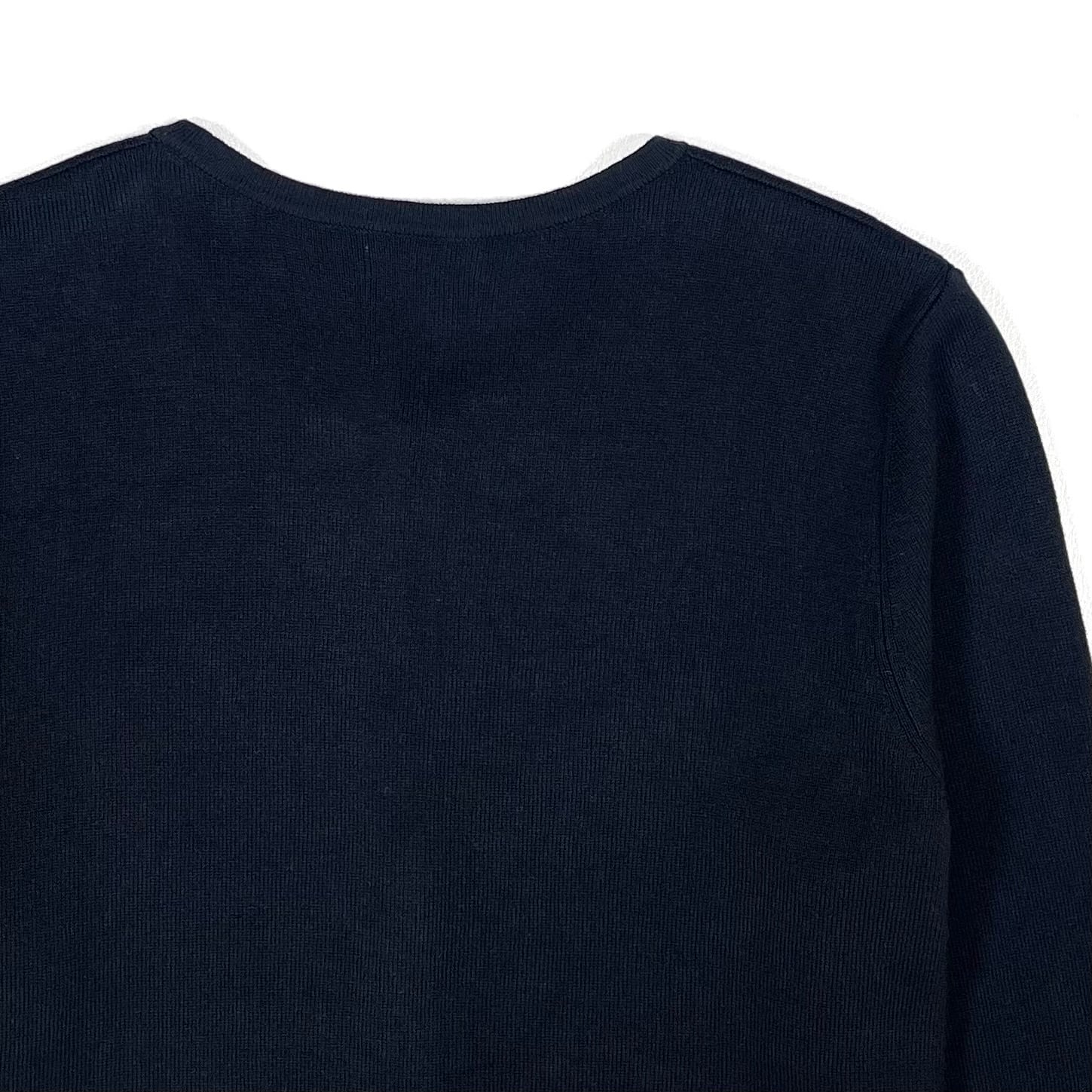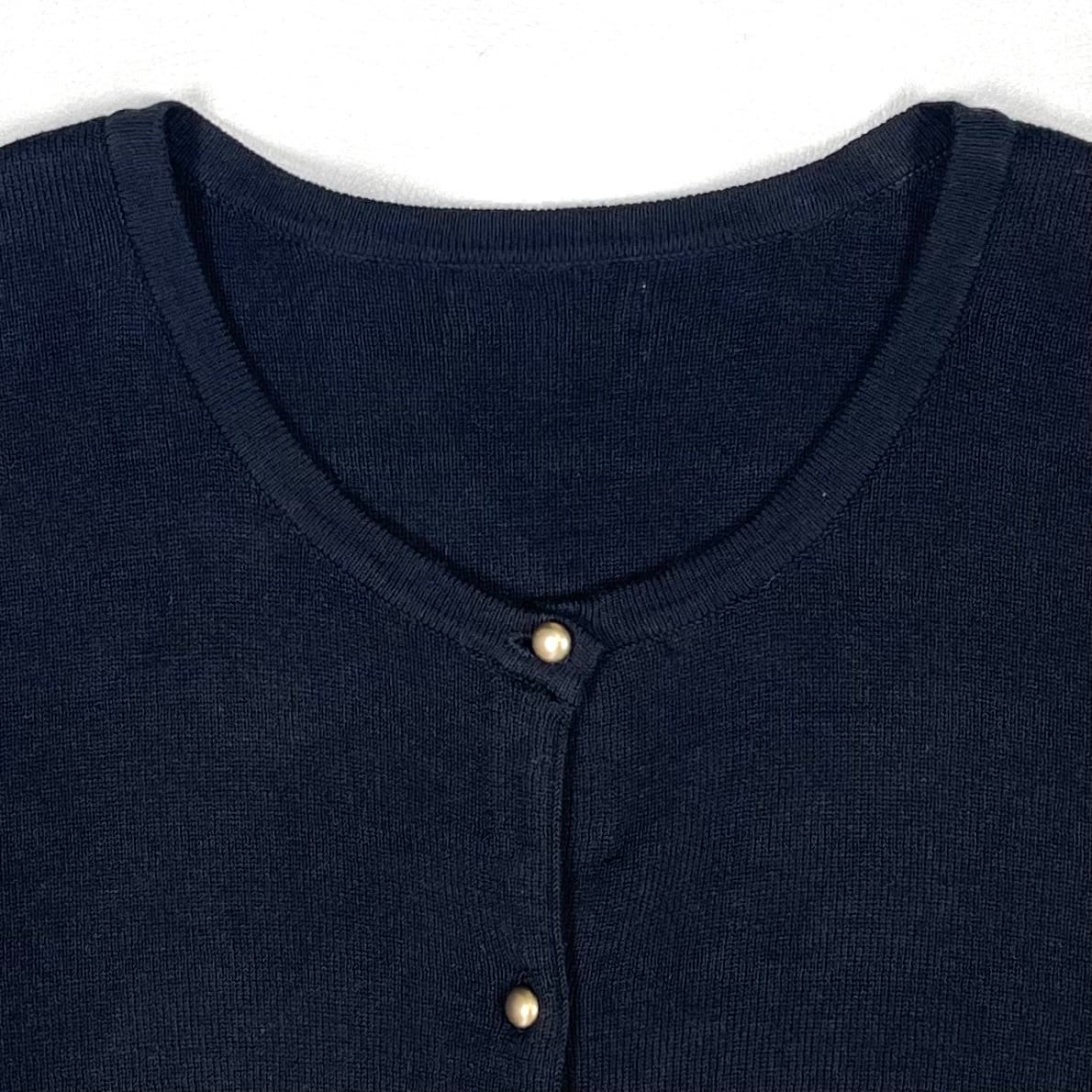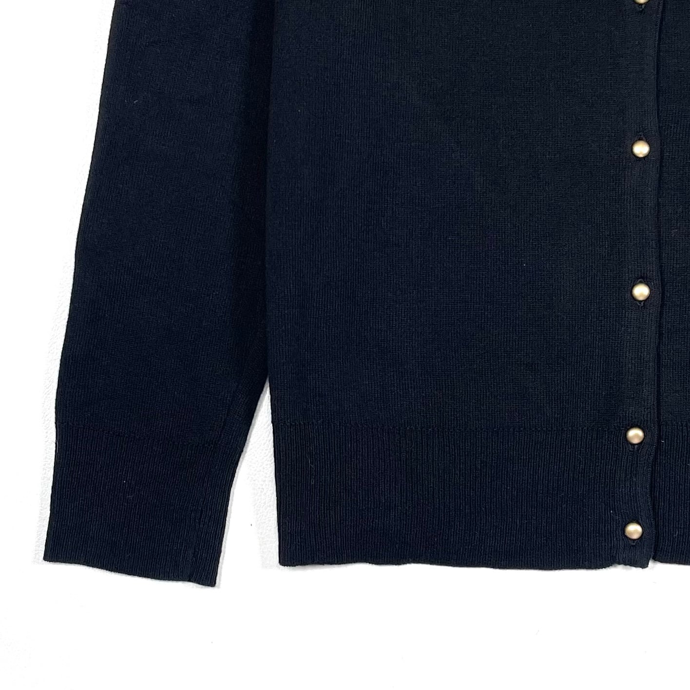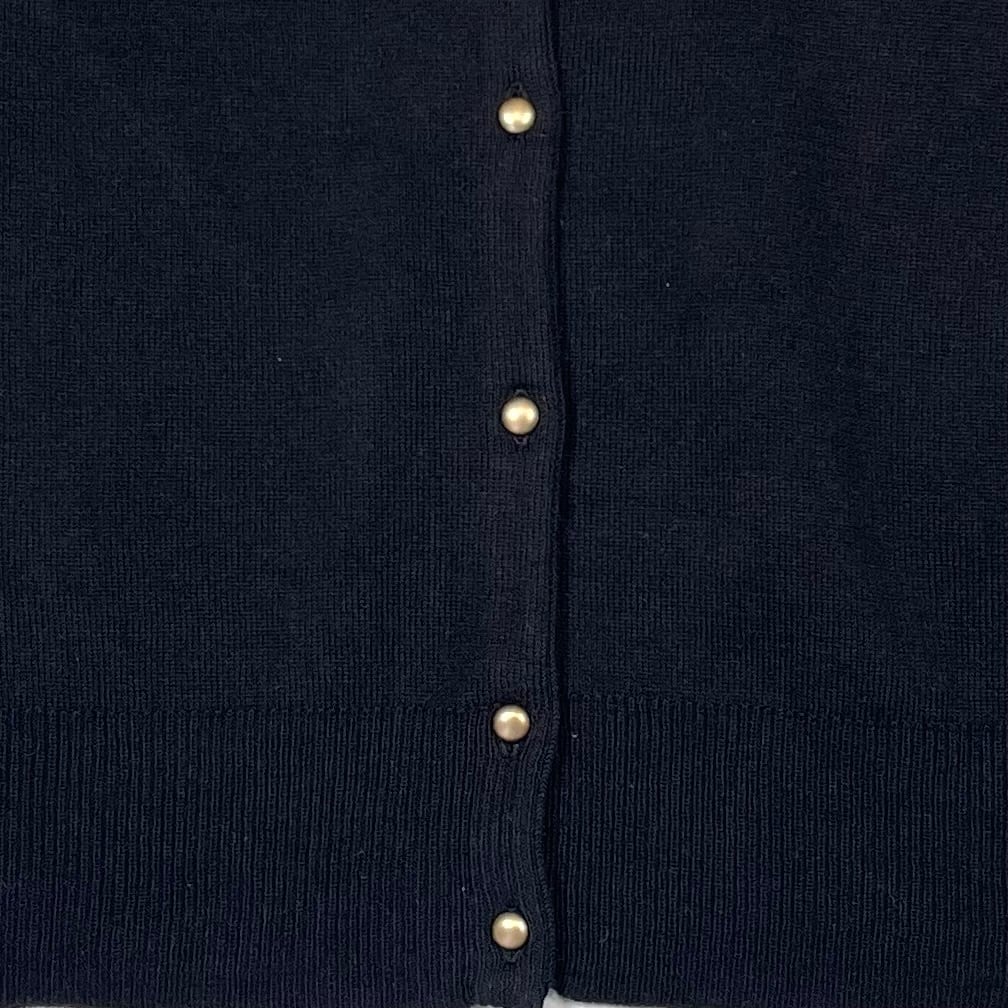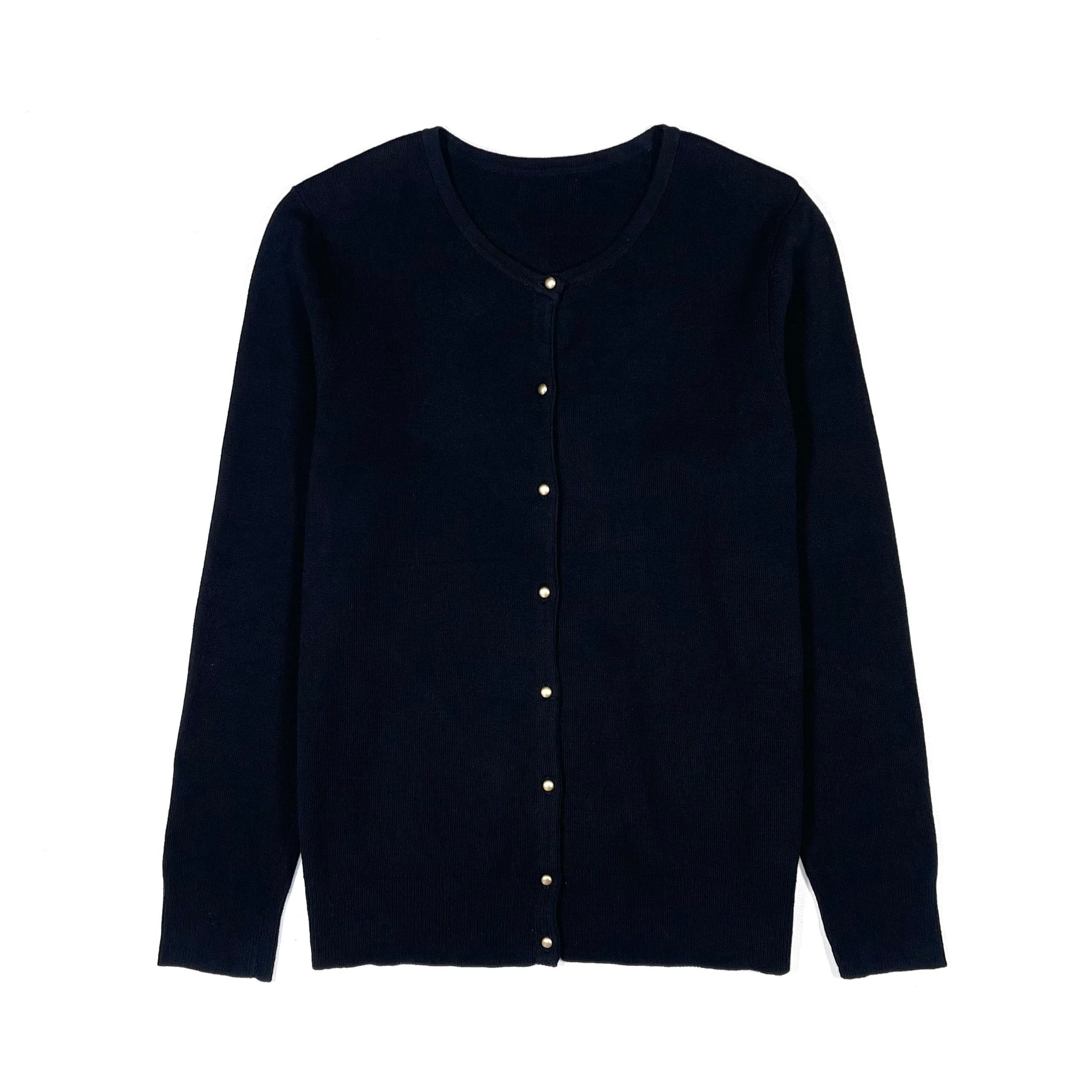 ブラックボディにゴールドボタンのクルーネックカーディガン