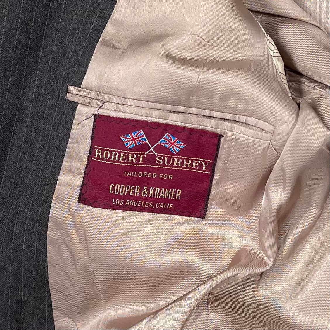 色味はグレイッシュなブラウンにベージュのピンストライプ