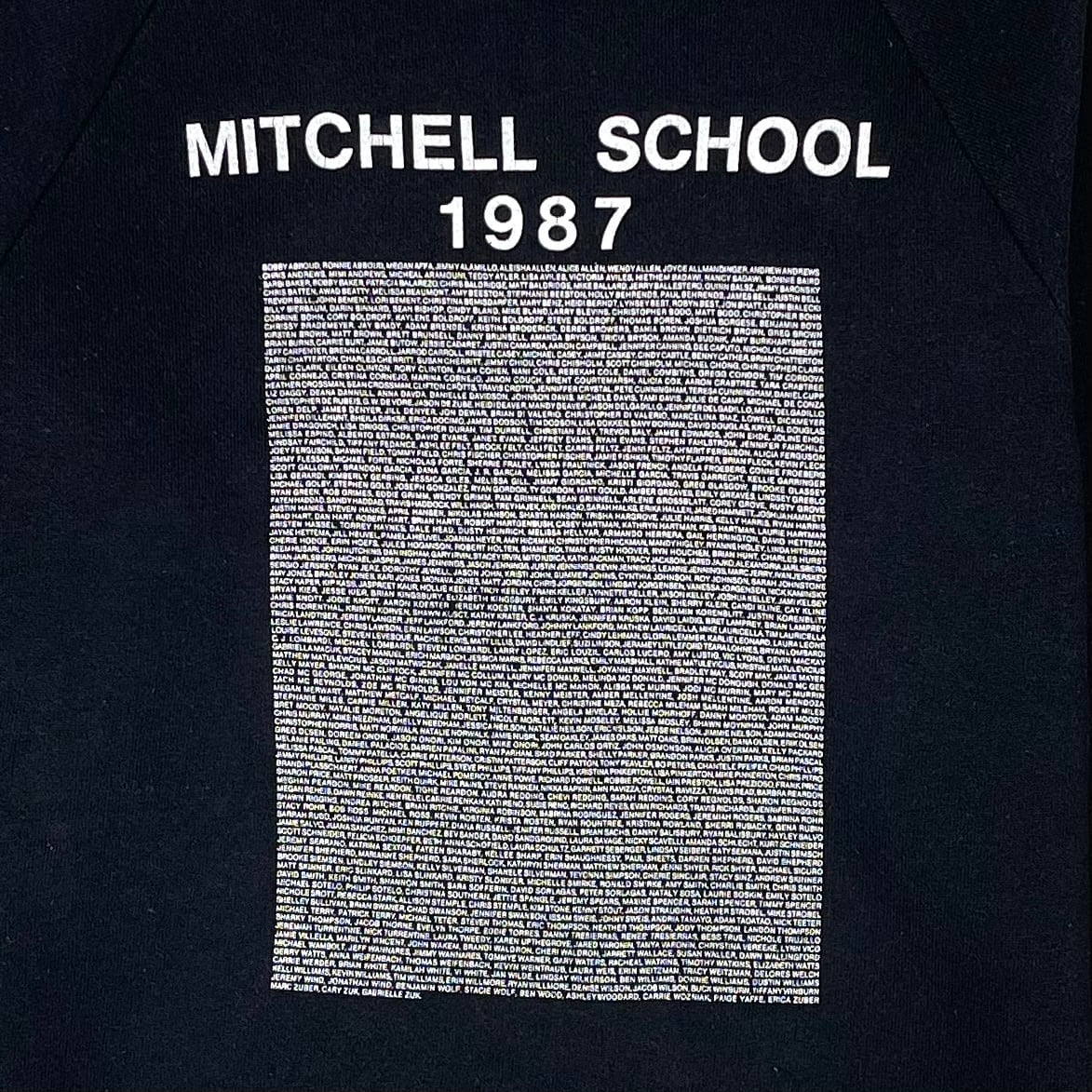 プリントのデザインバランスが良い80s MITCHELL SCHOOLのブラックスウェット