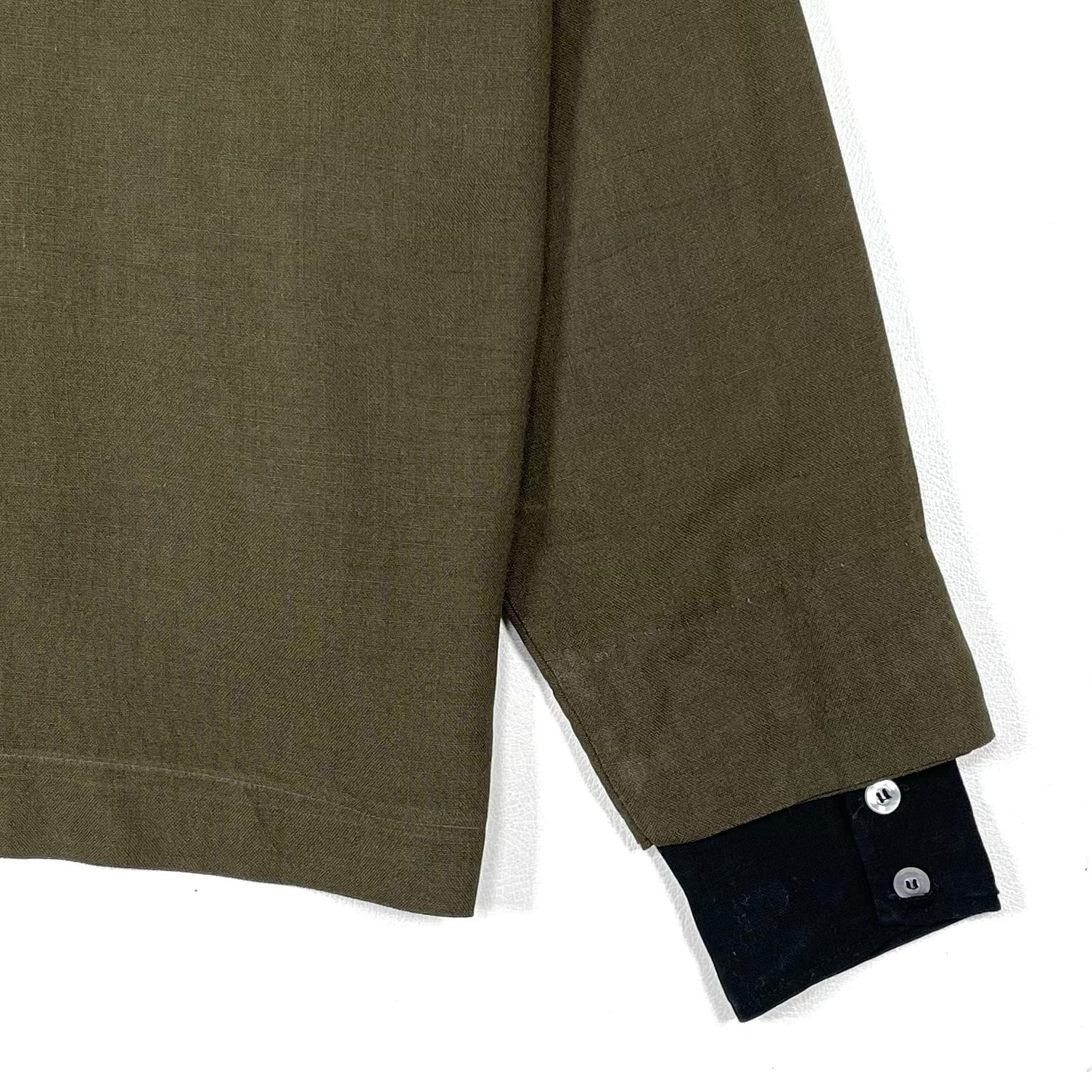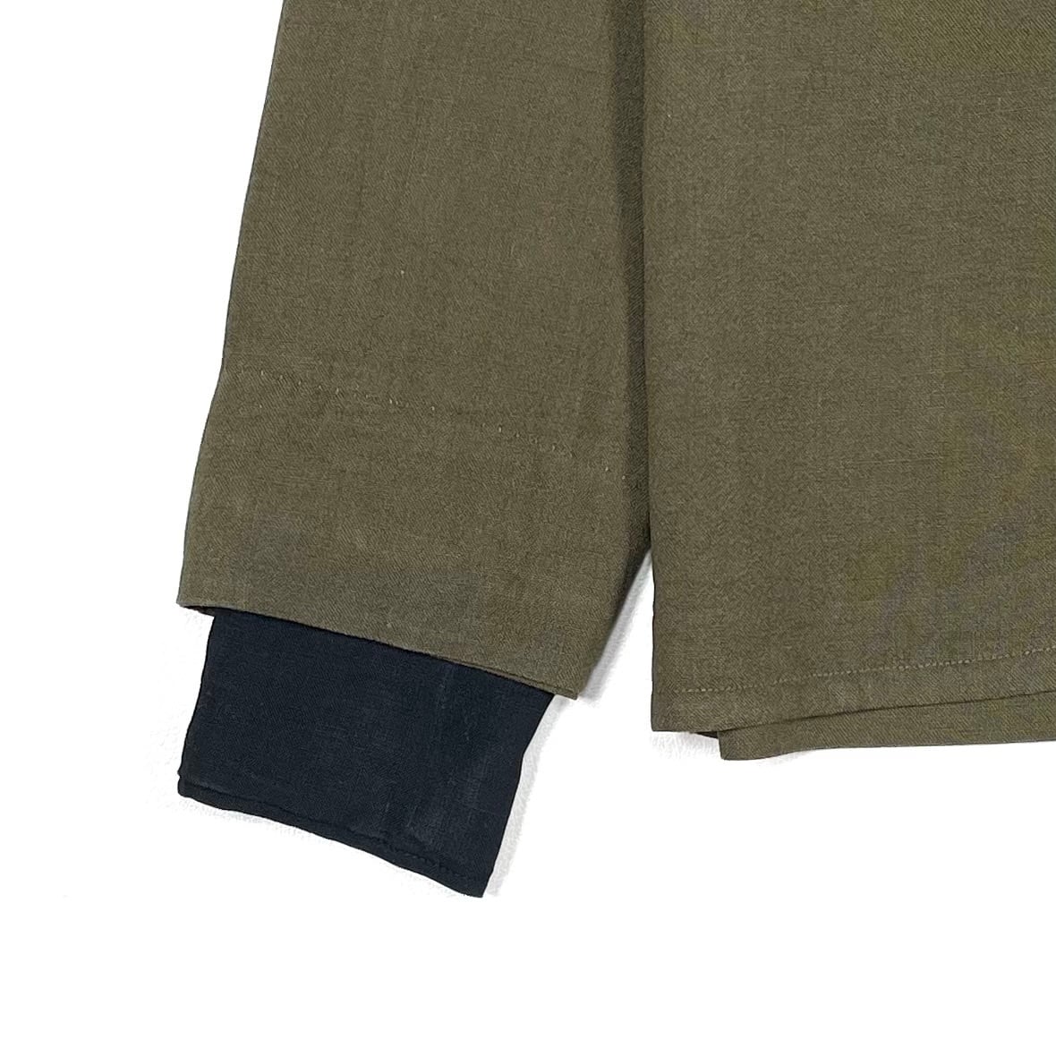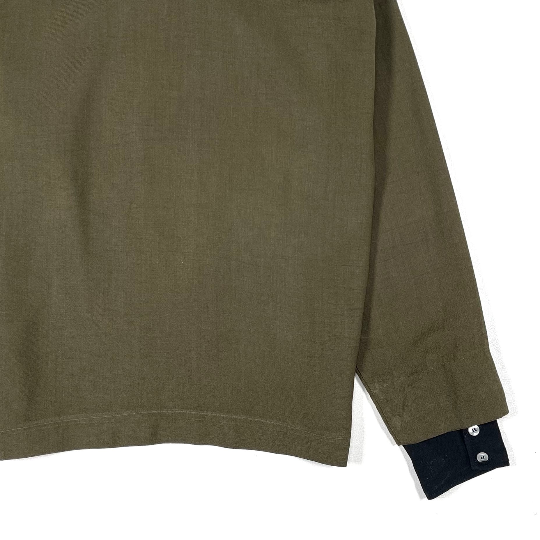 シャツの上からジャケットを羽織ったようなレイヤード風の作り