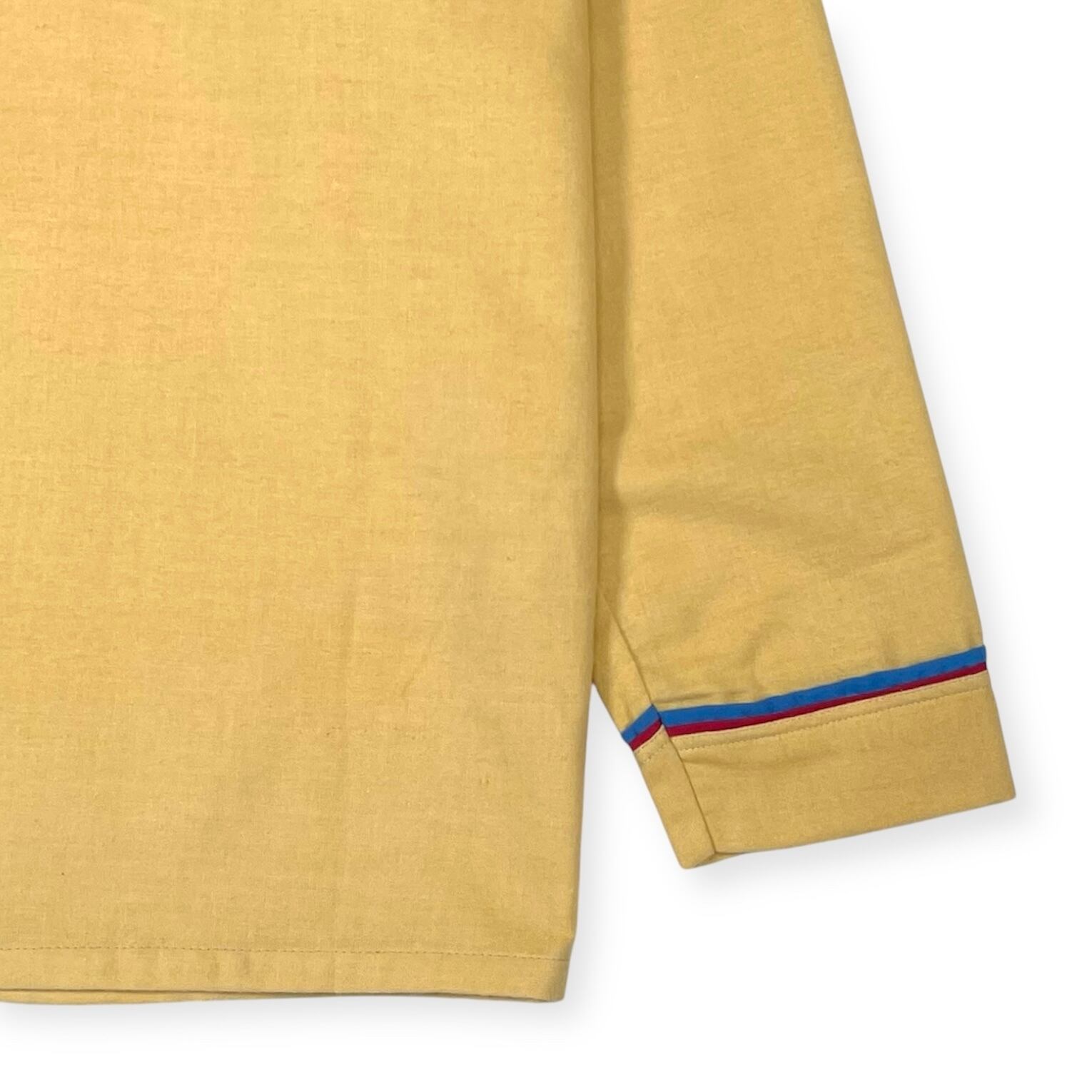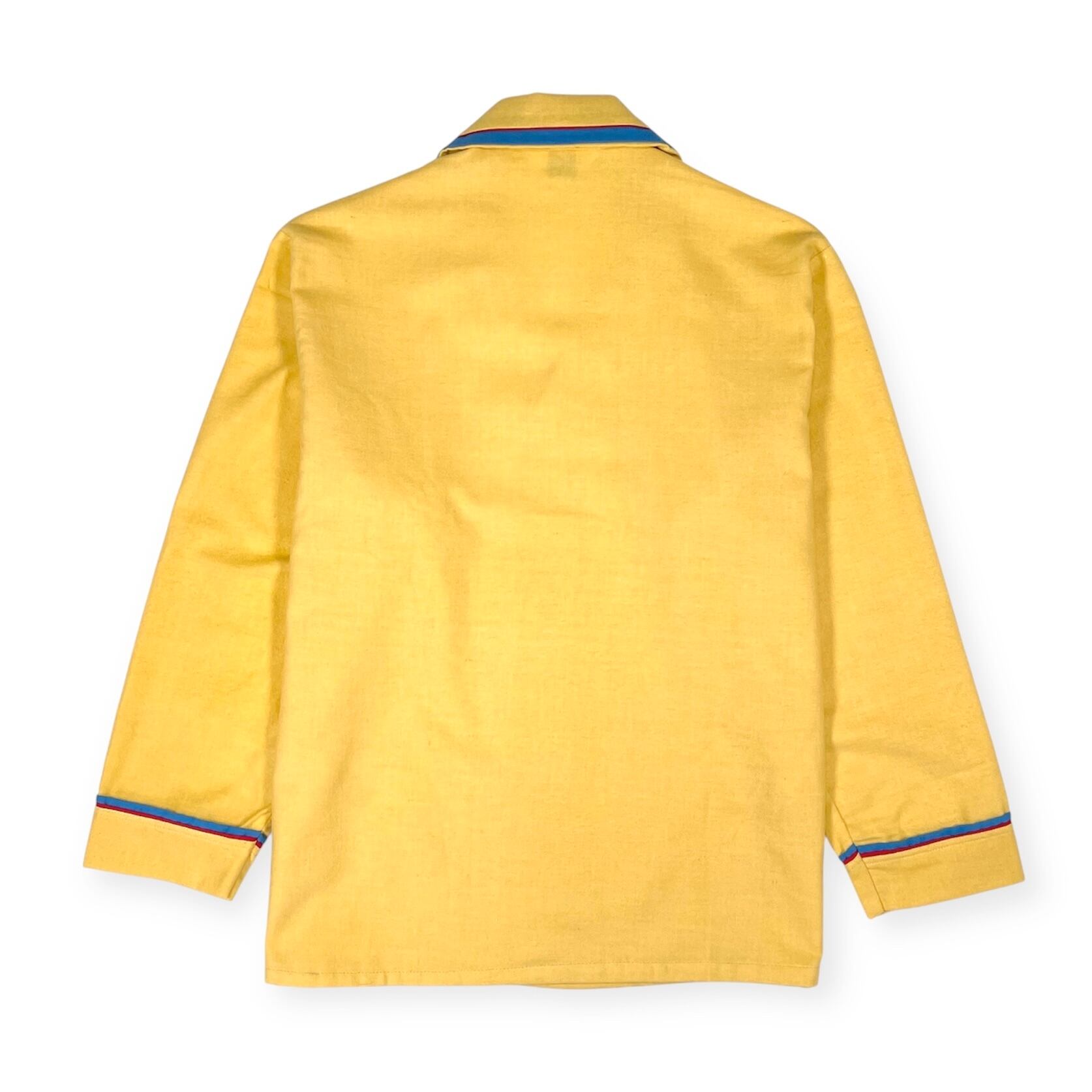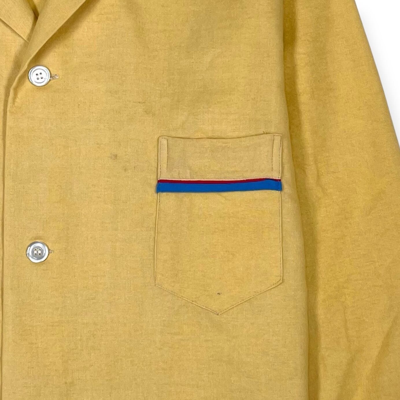 衿、ポケット、袖口にブルー×レッドのパイピング