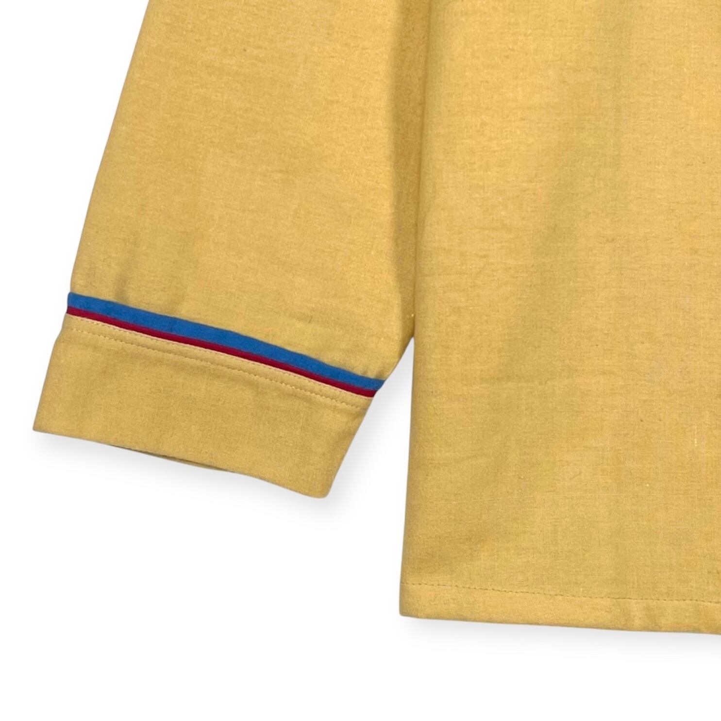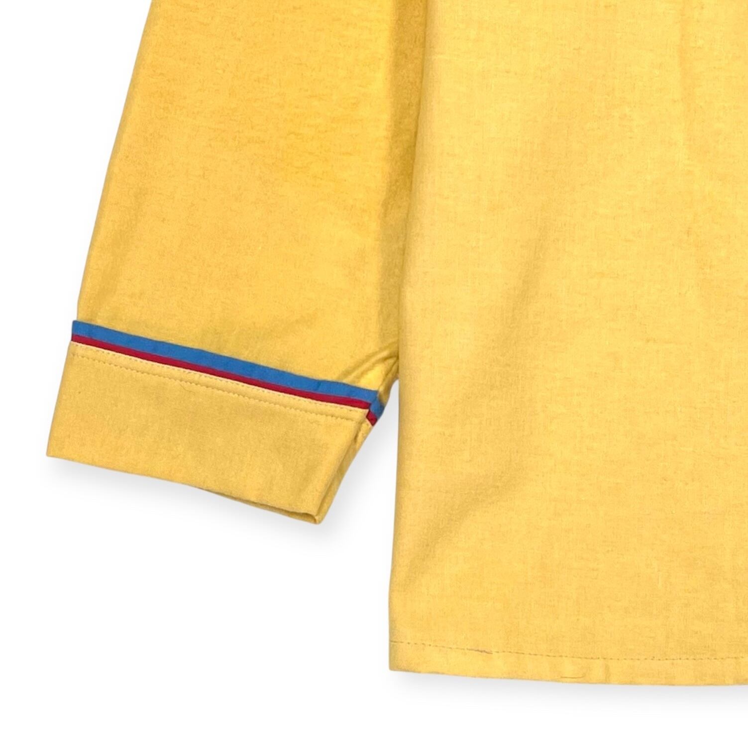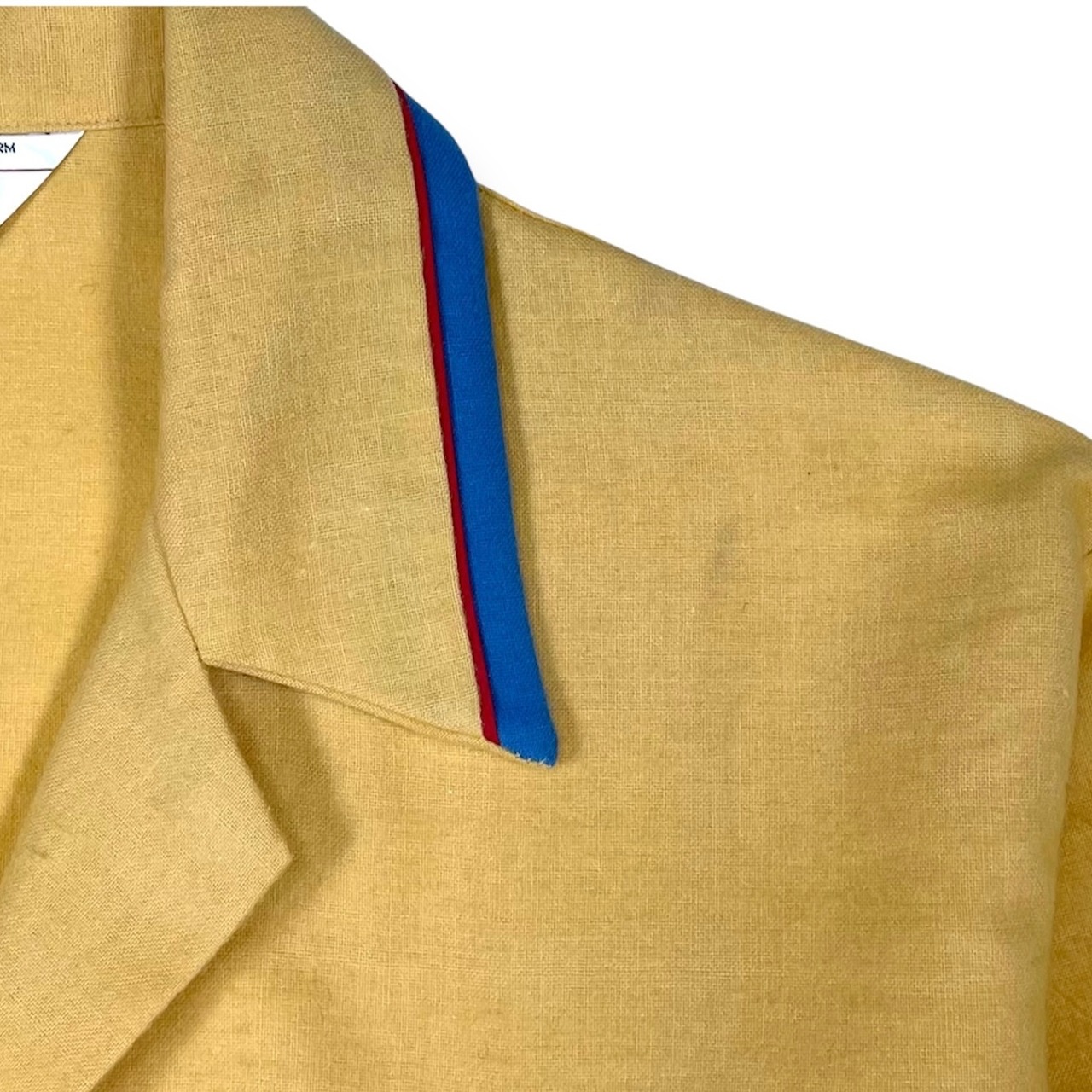 衿、ポケット、袖口にブルー×レッドのパイピング