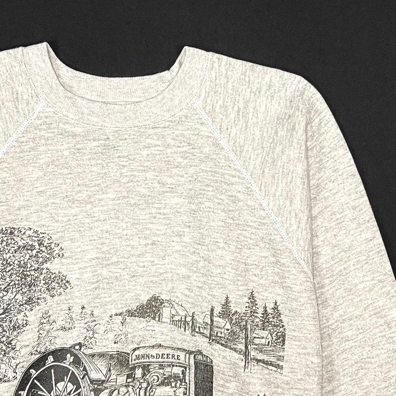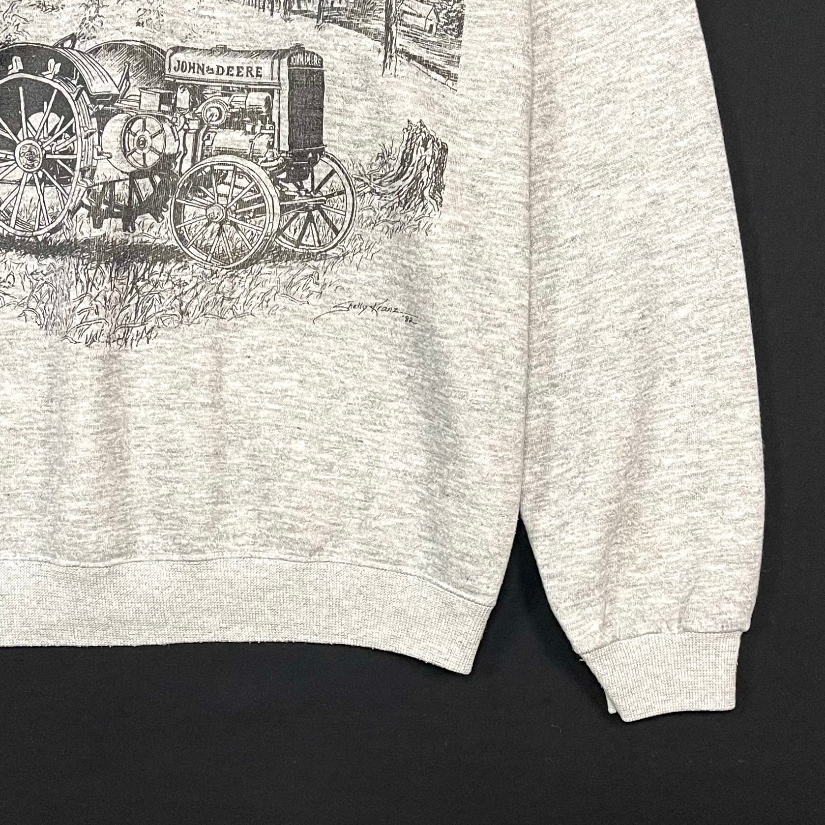 アメリカの歴史的な背景がモチーフのJOHN DEEREイラストのプリントスウェット