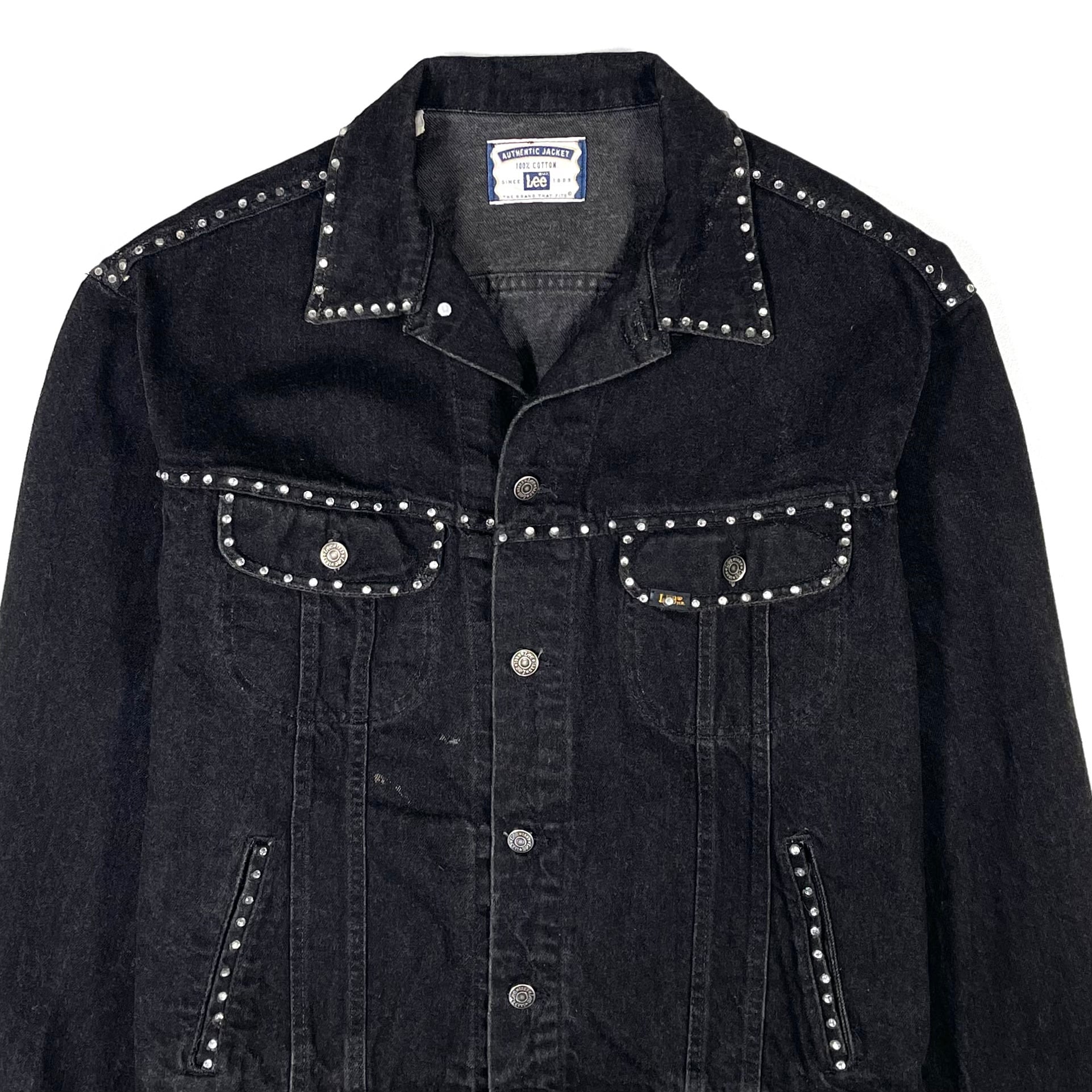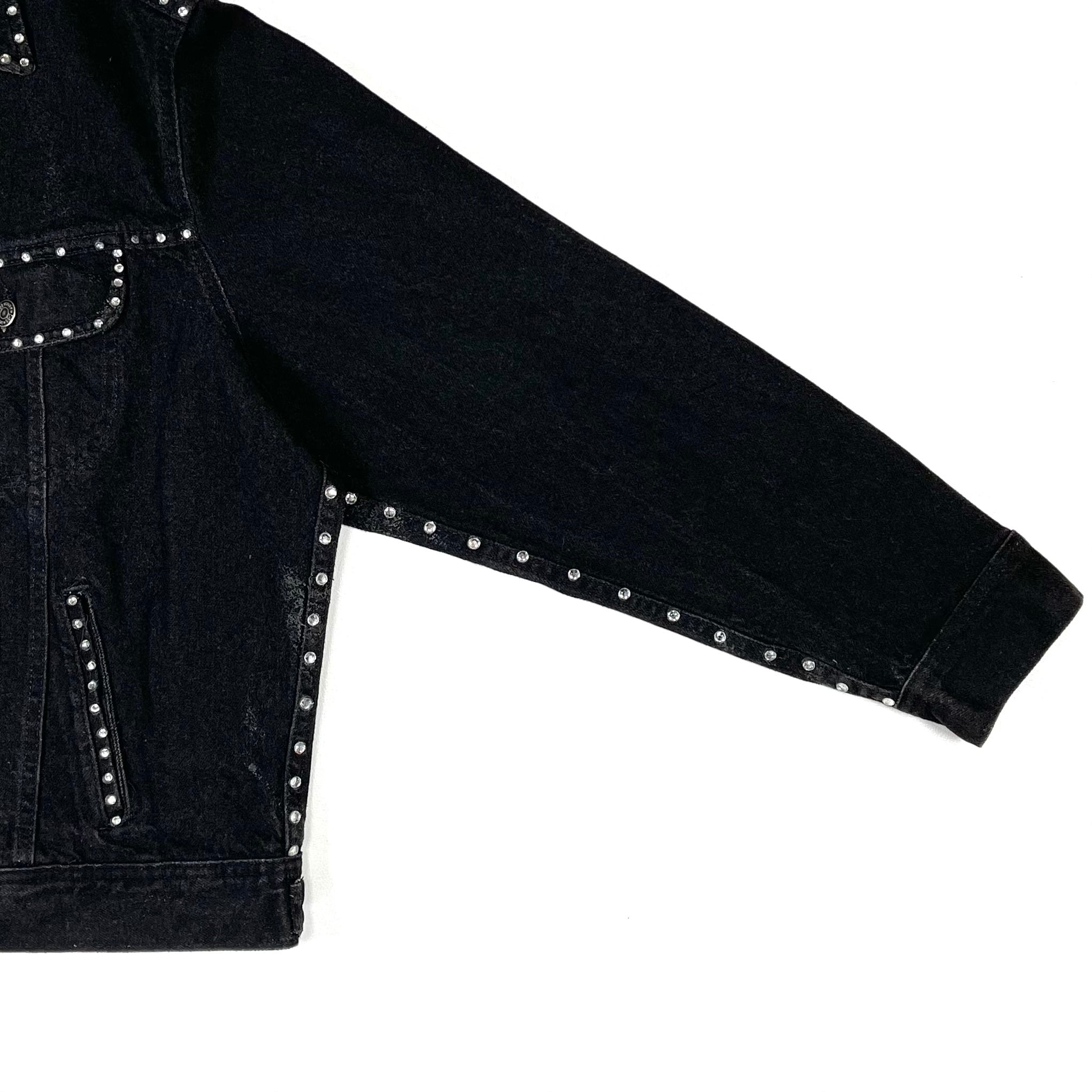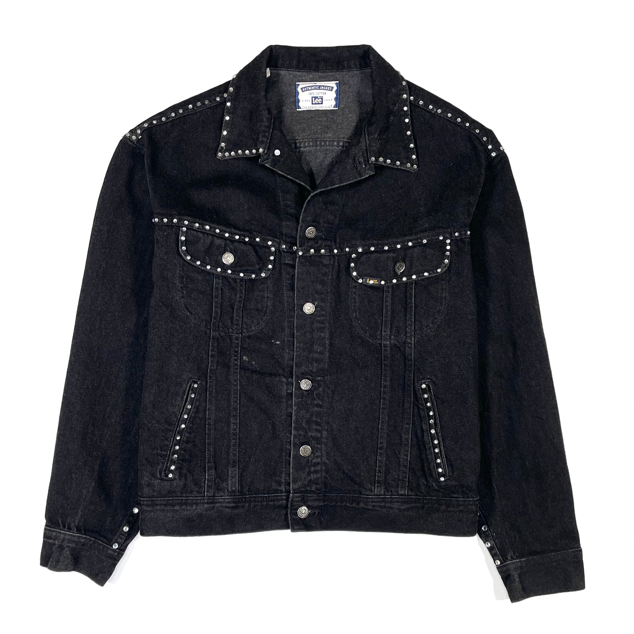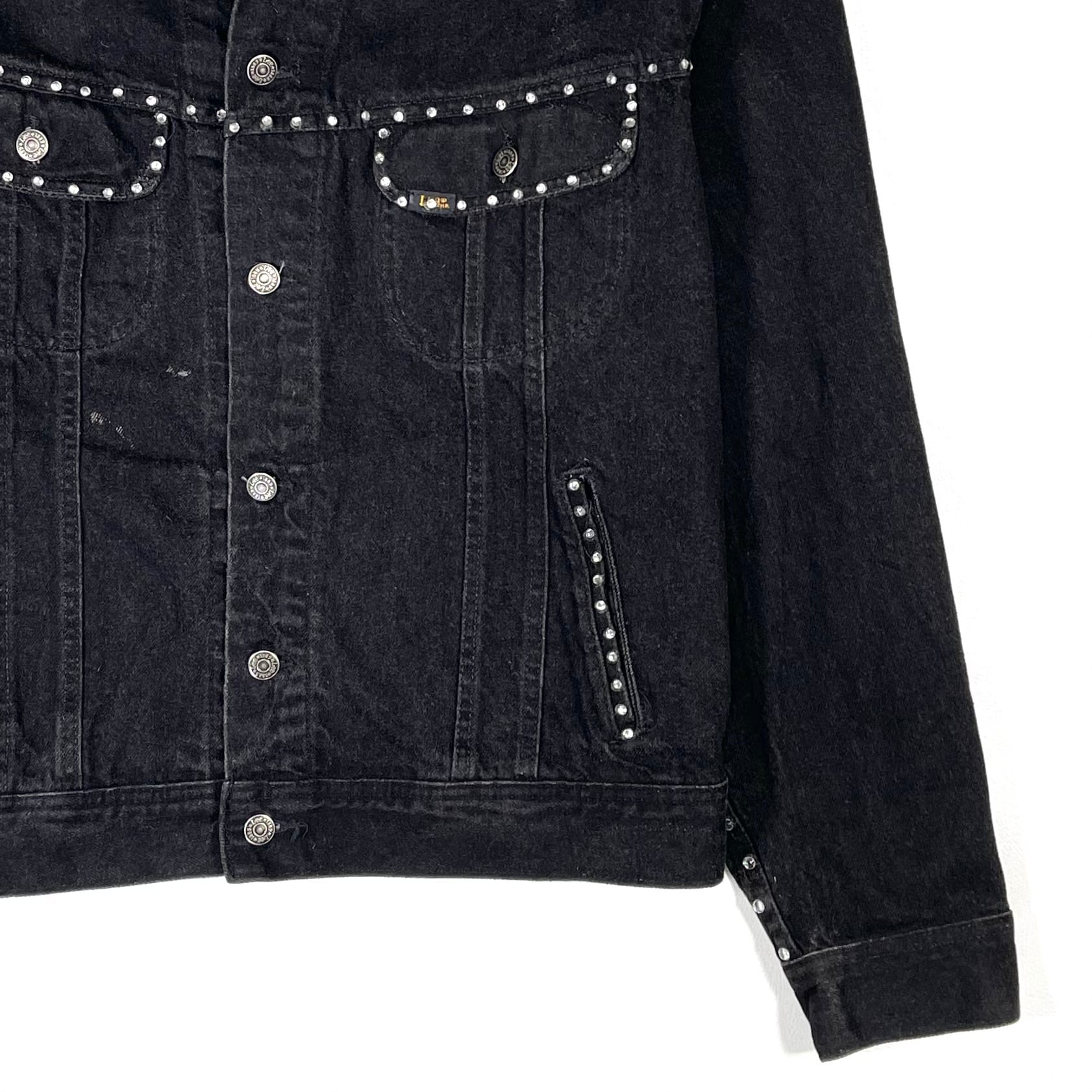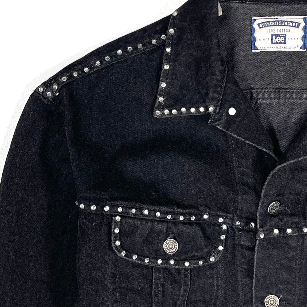 輝くストーンが装飾された90s Leeブラックデニムジャケット
