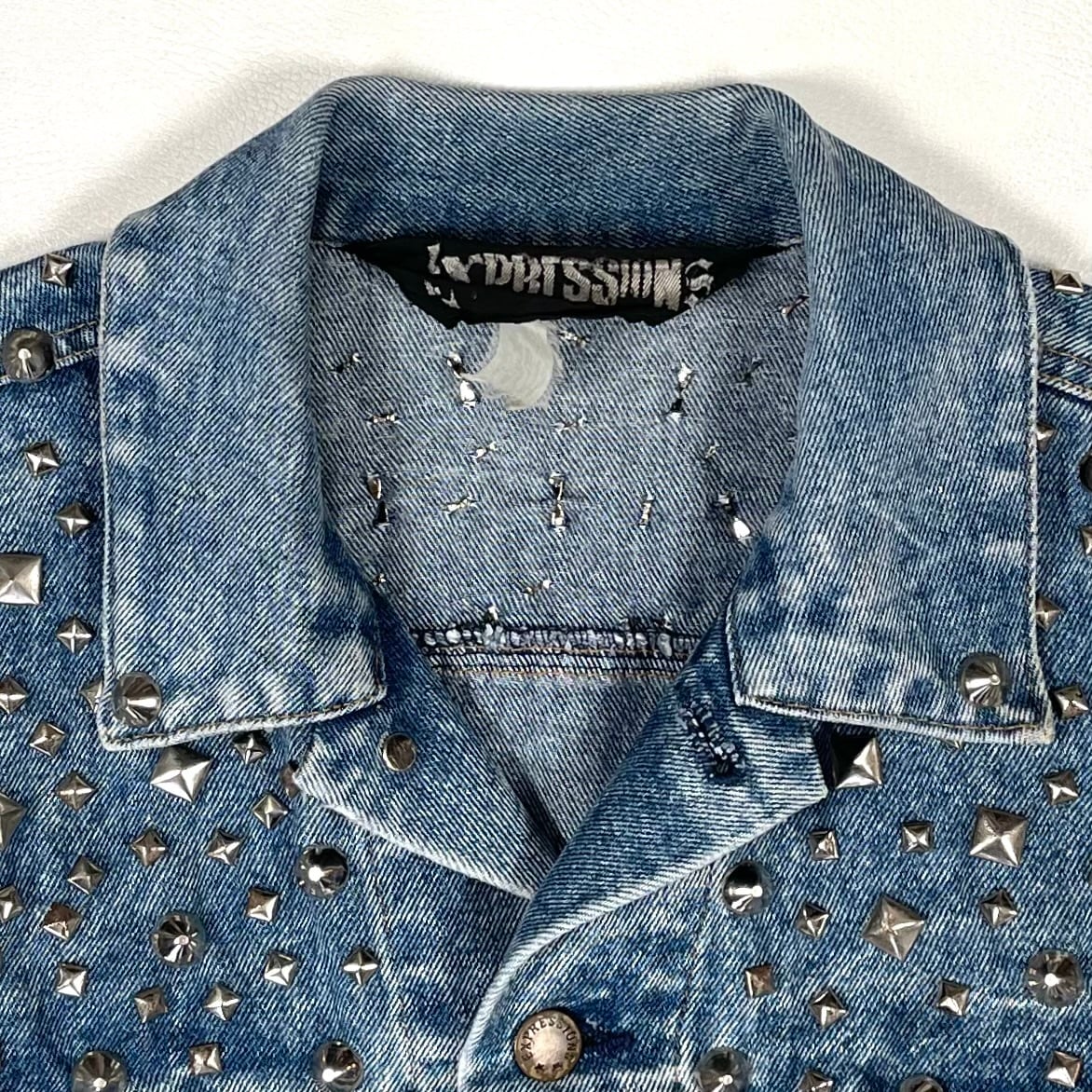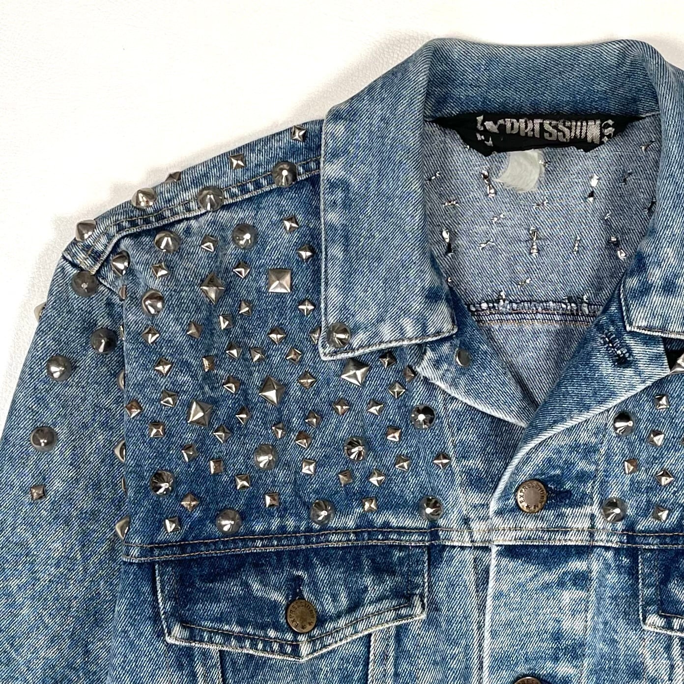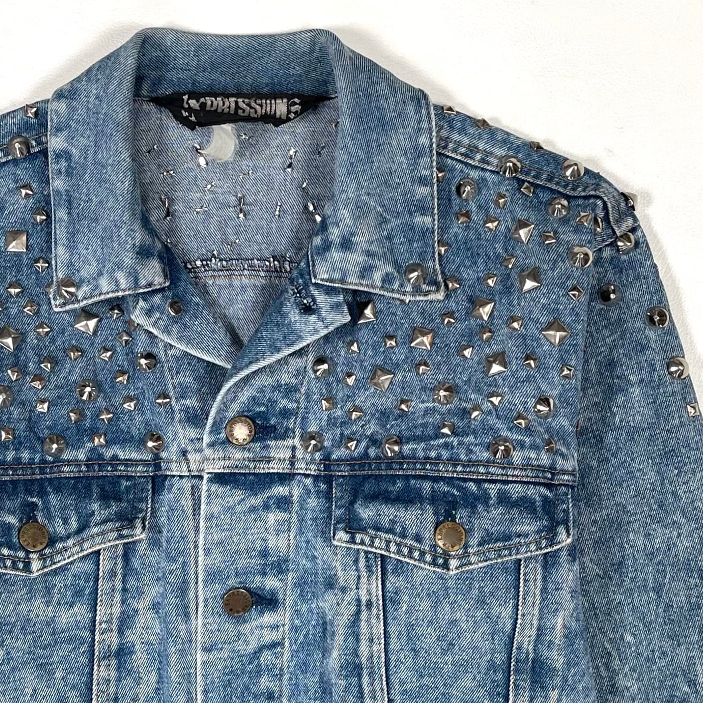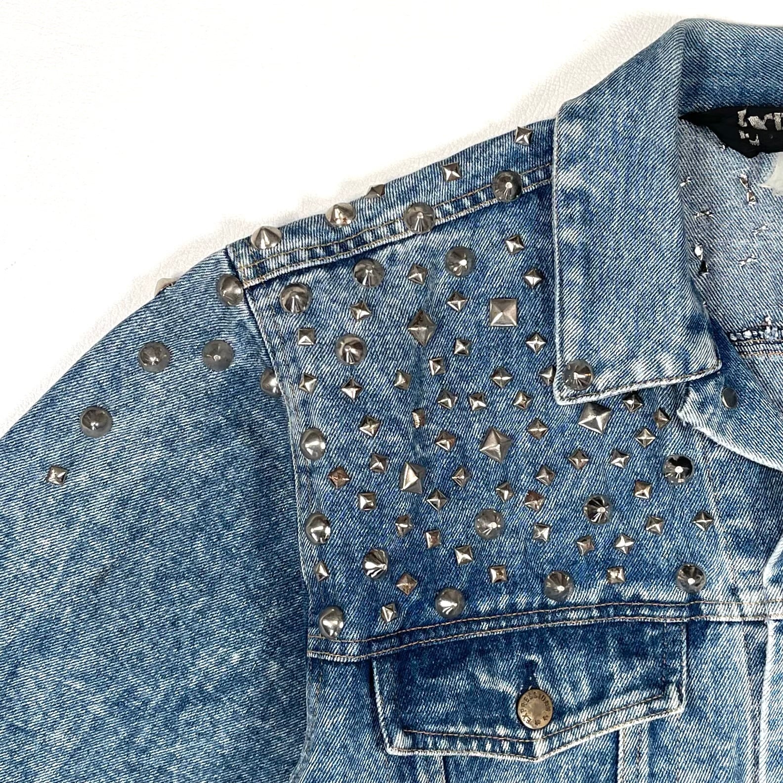 荒くランダムに打たれたスタッズがハードな80sトラッカージャケット