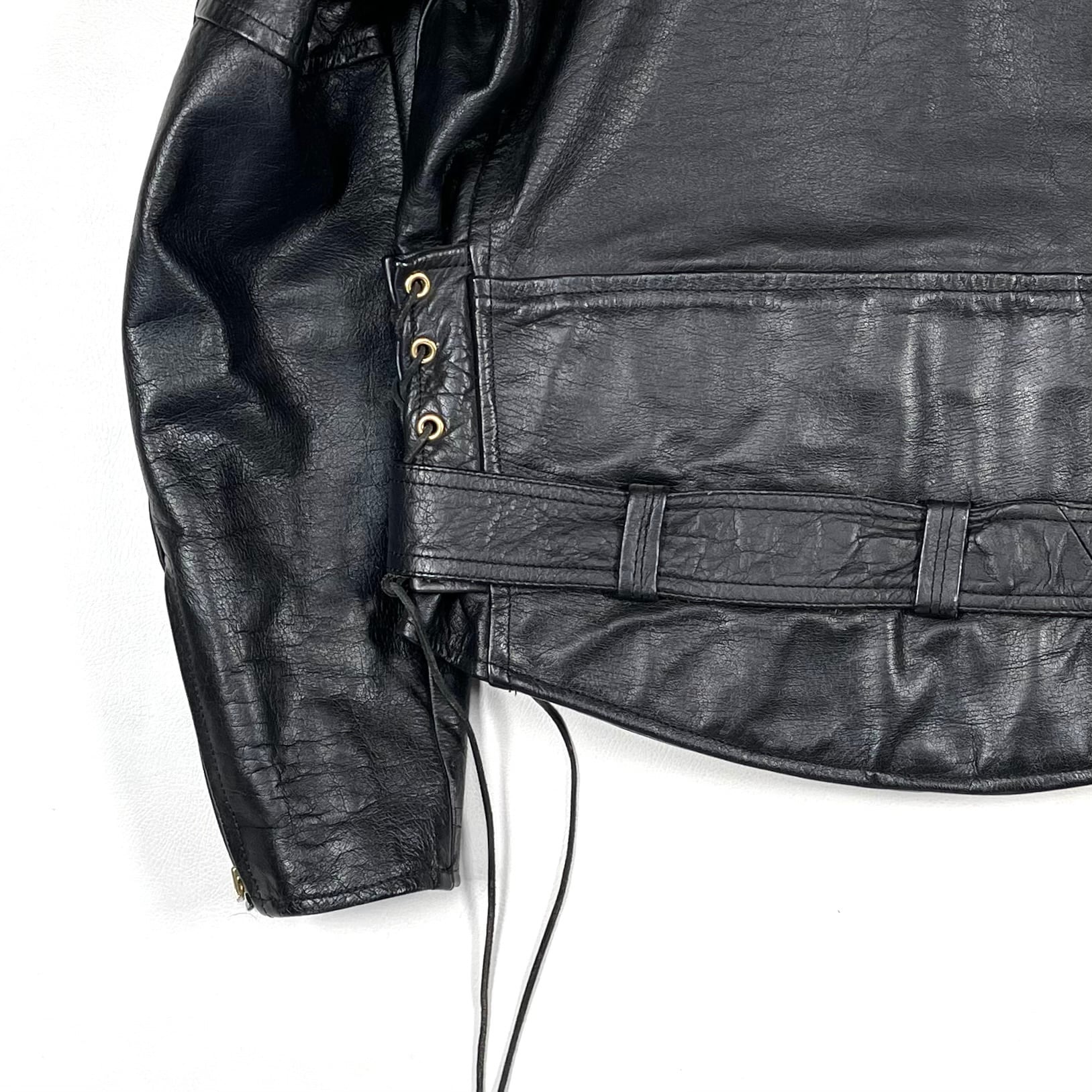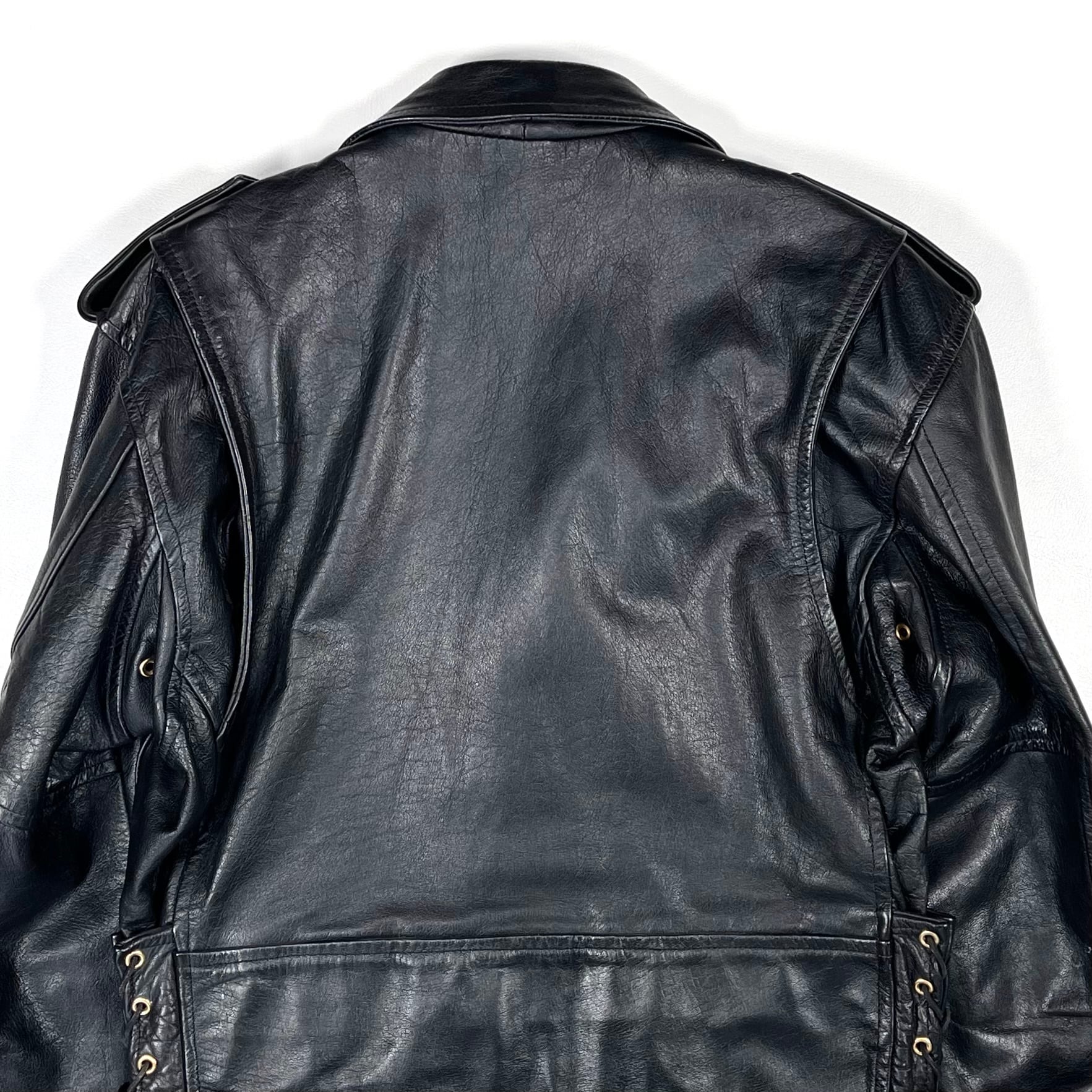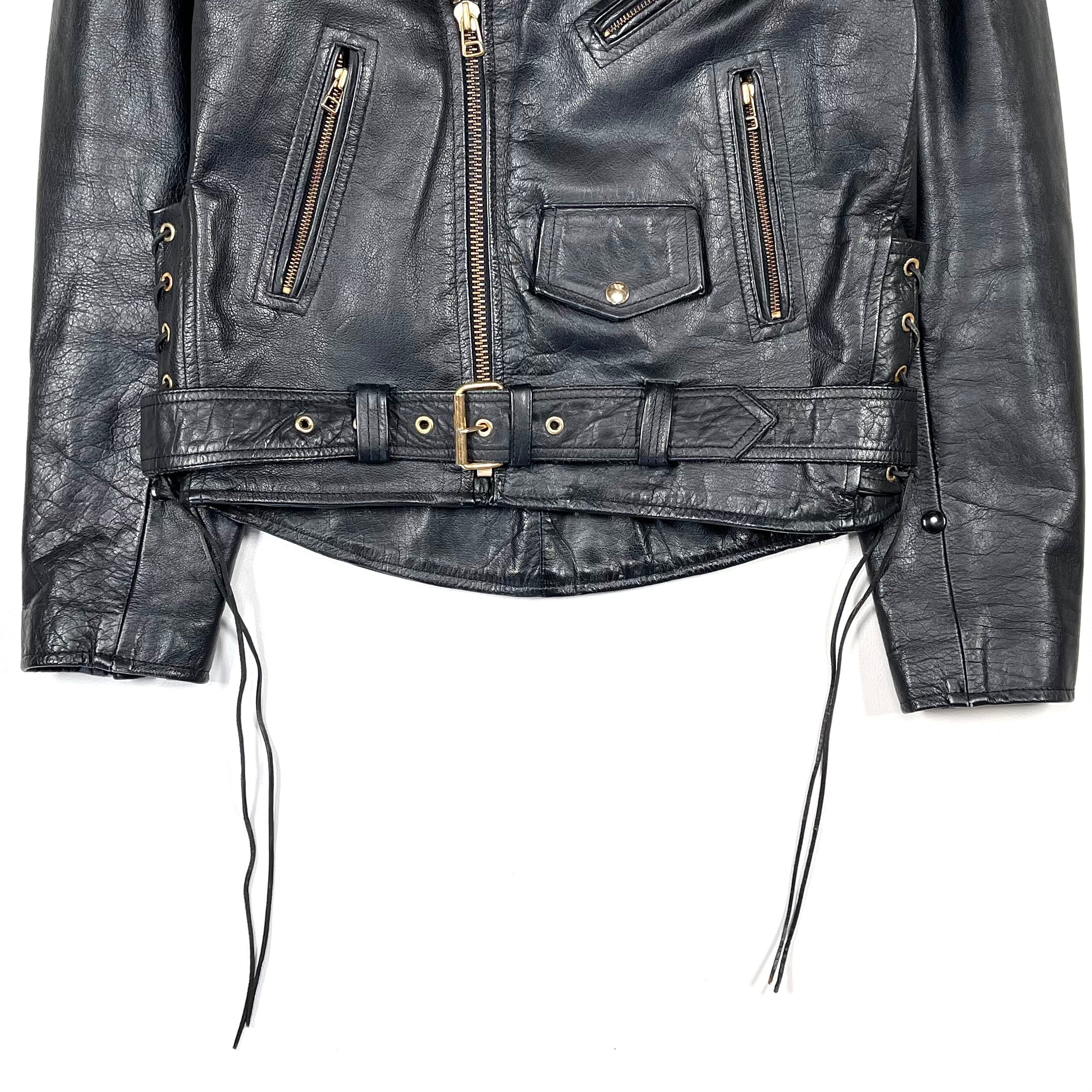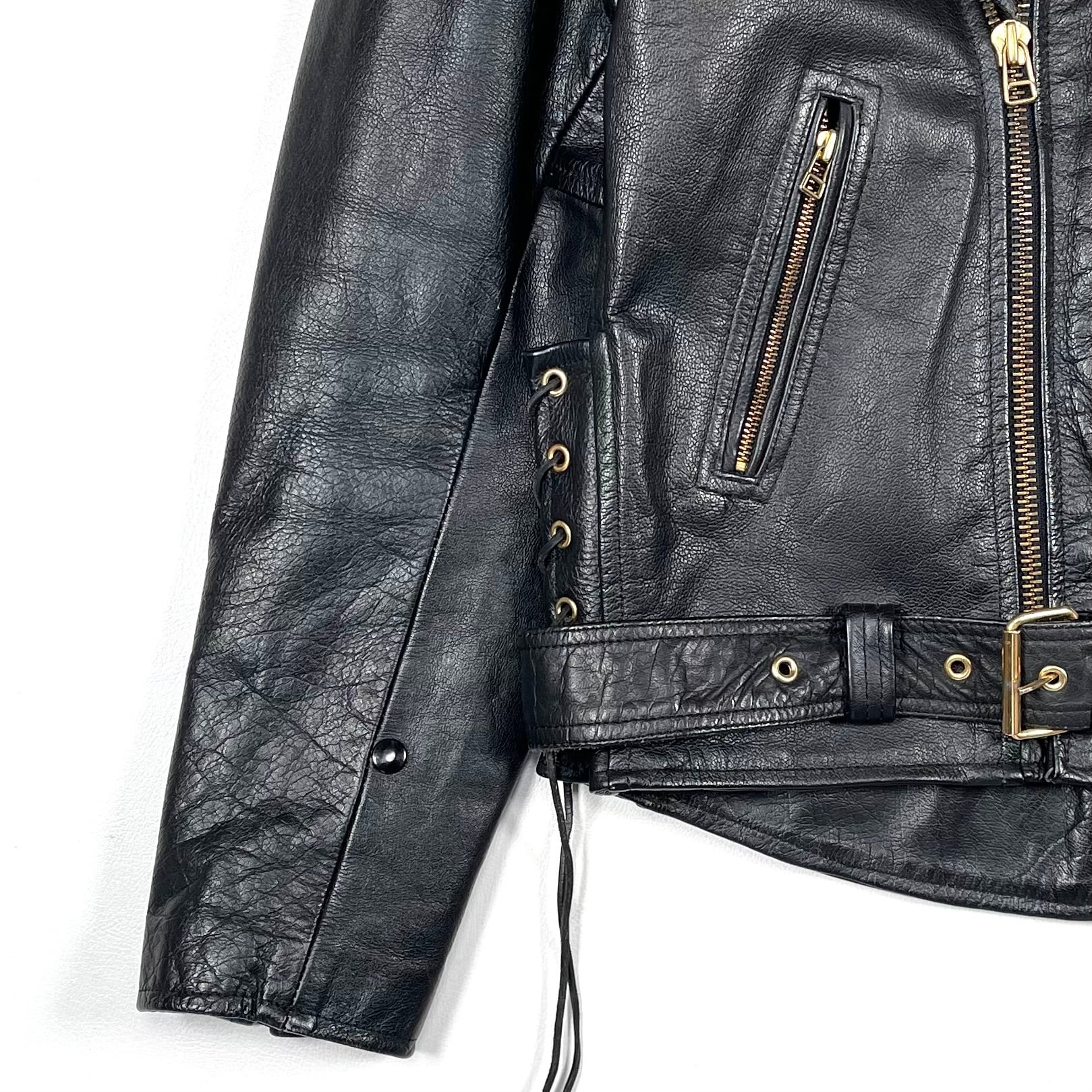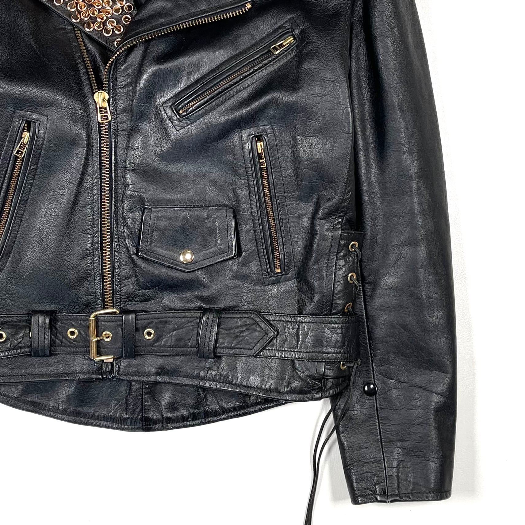 ブラックレザーにゴールドのスタッズが輝く、ハードなバイカージャケット