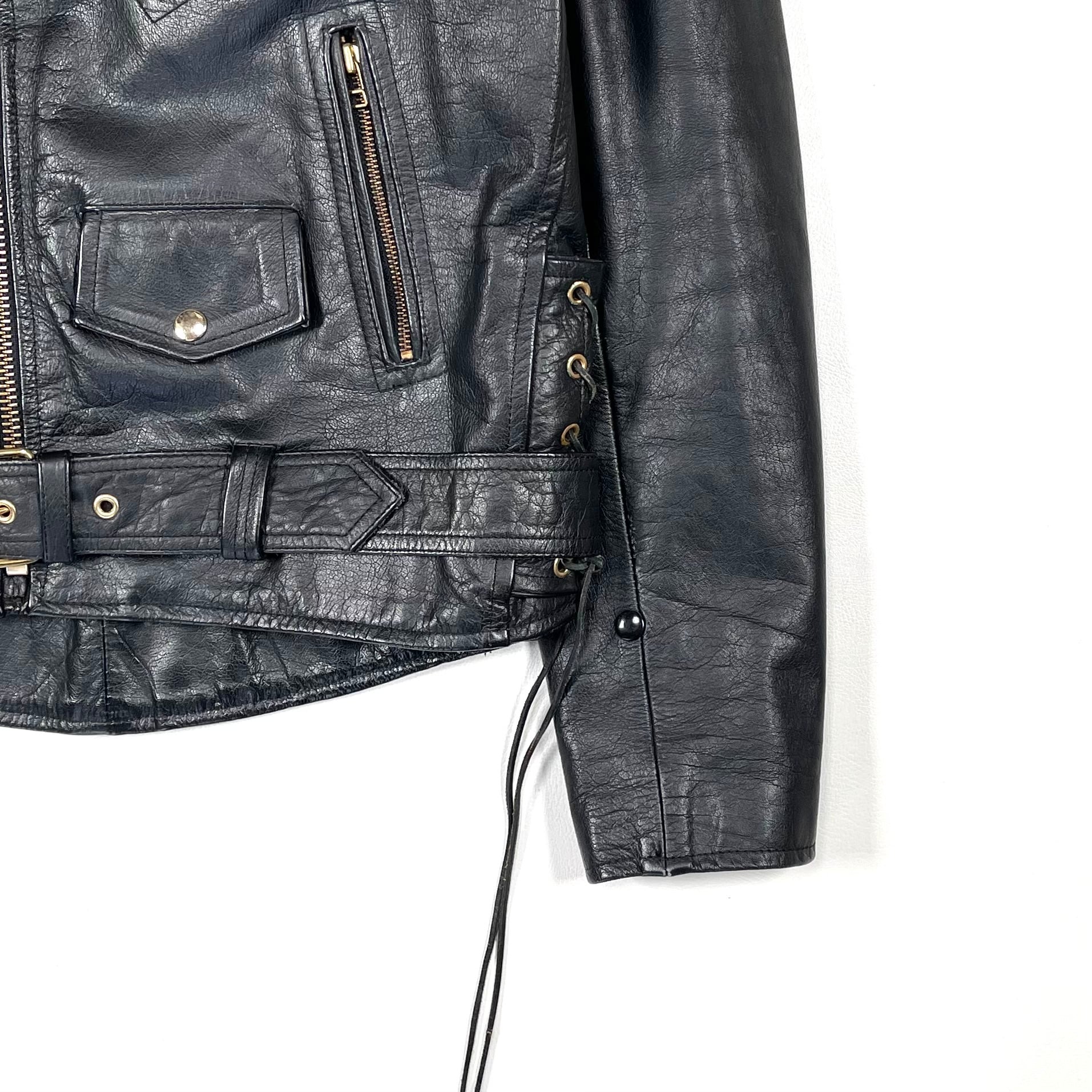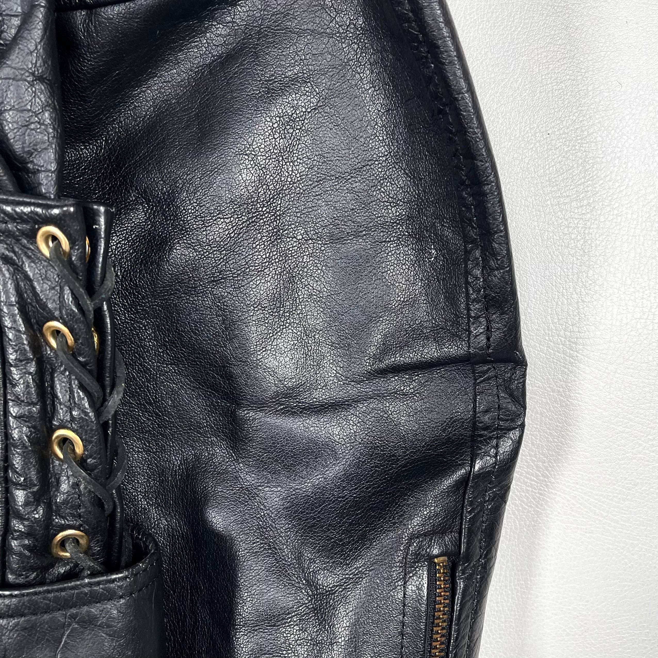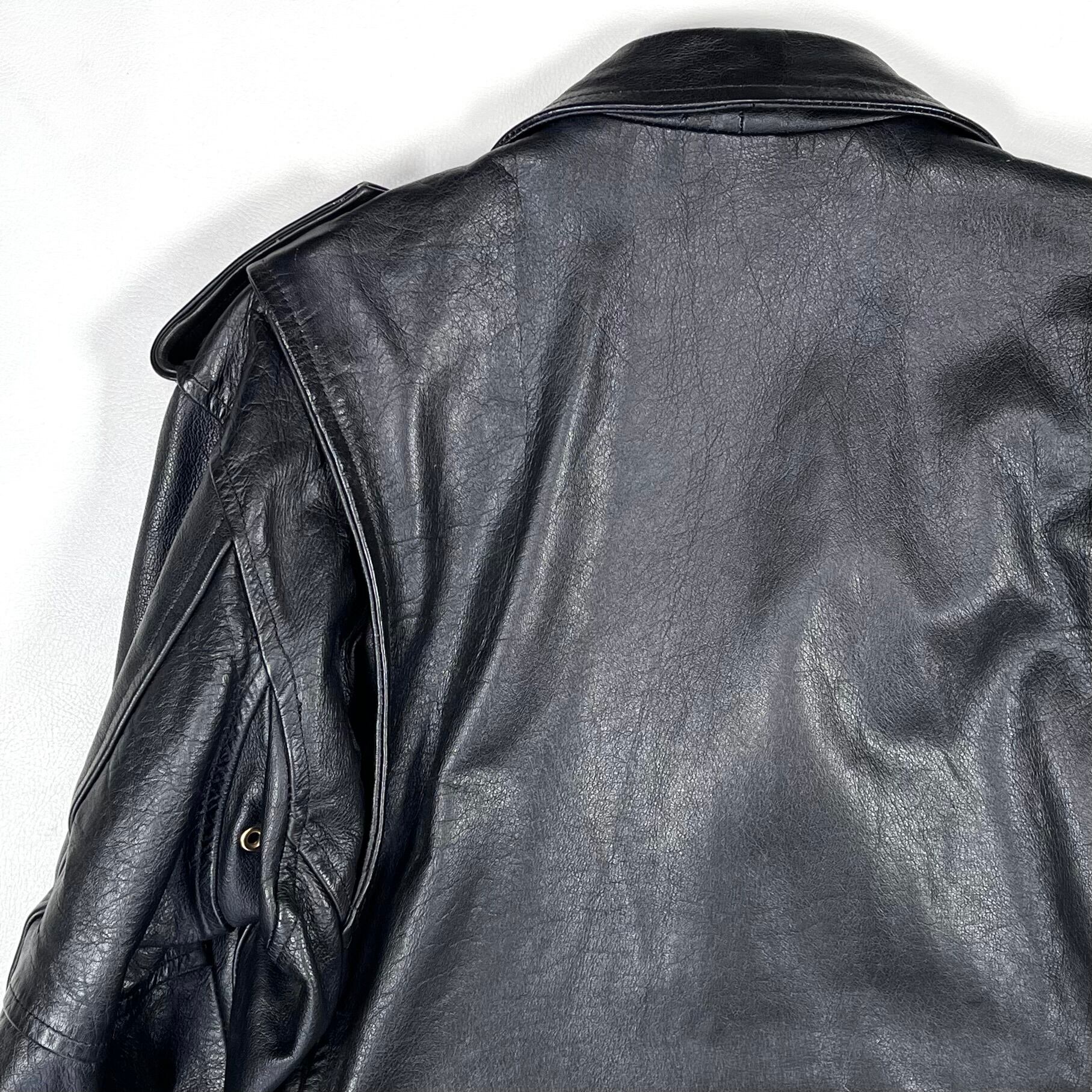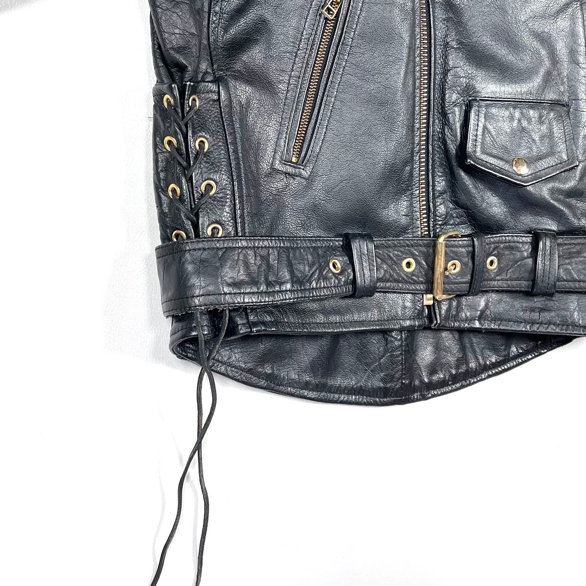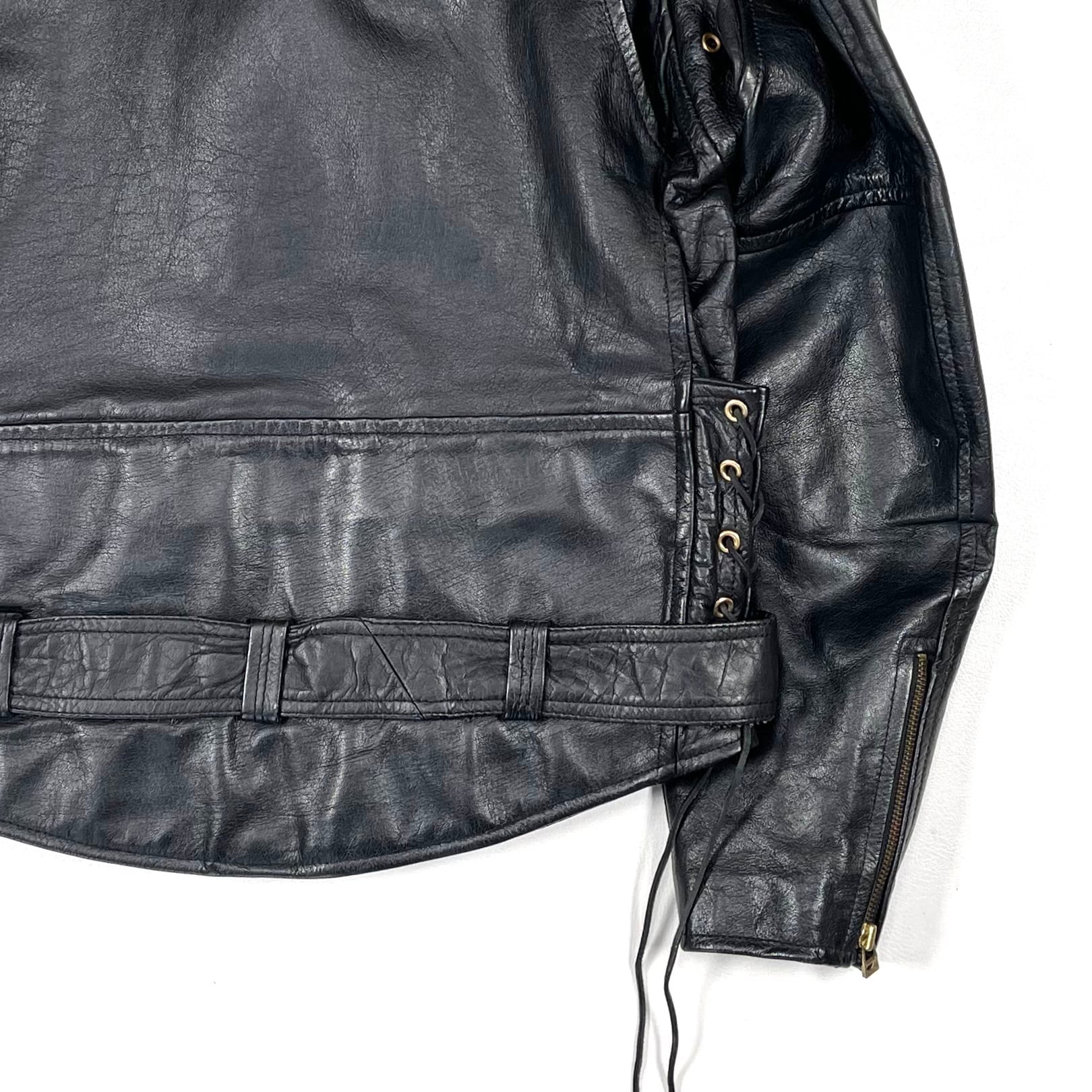 ブラックレザーにゴールドのスタッズが輝く、ハードなバイカージャケット