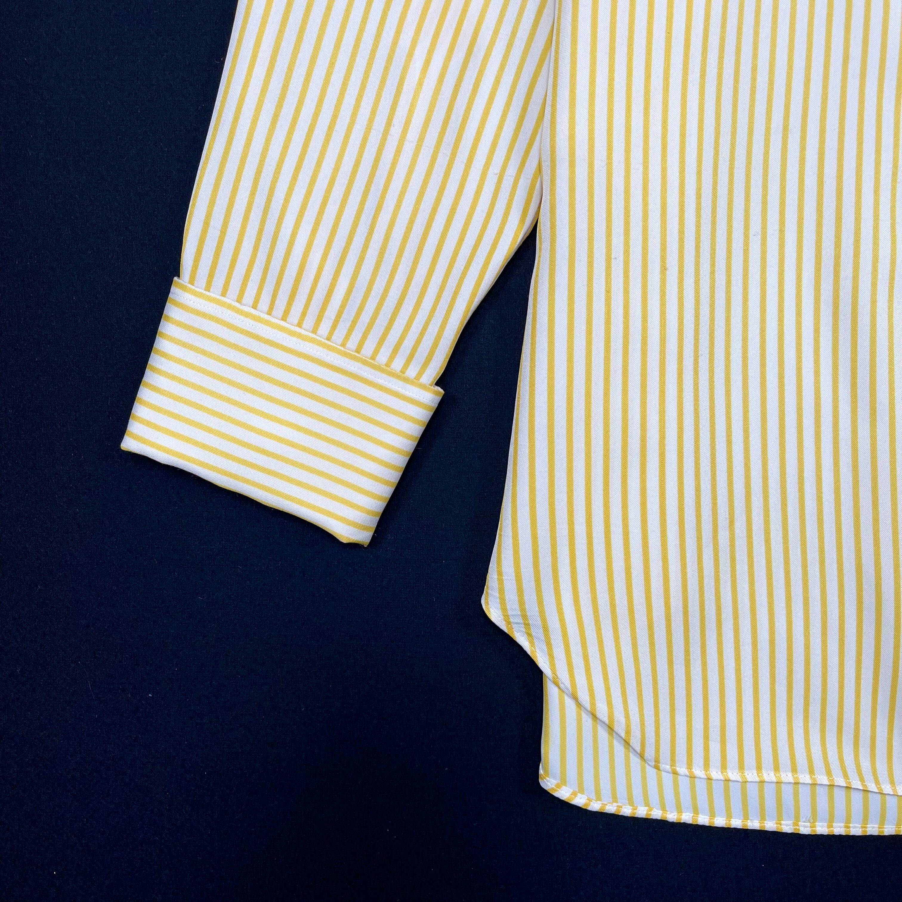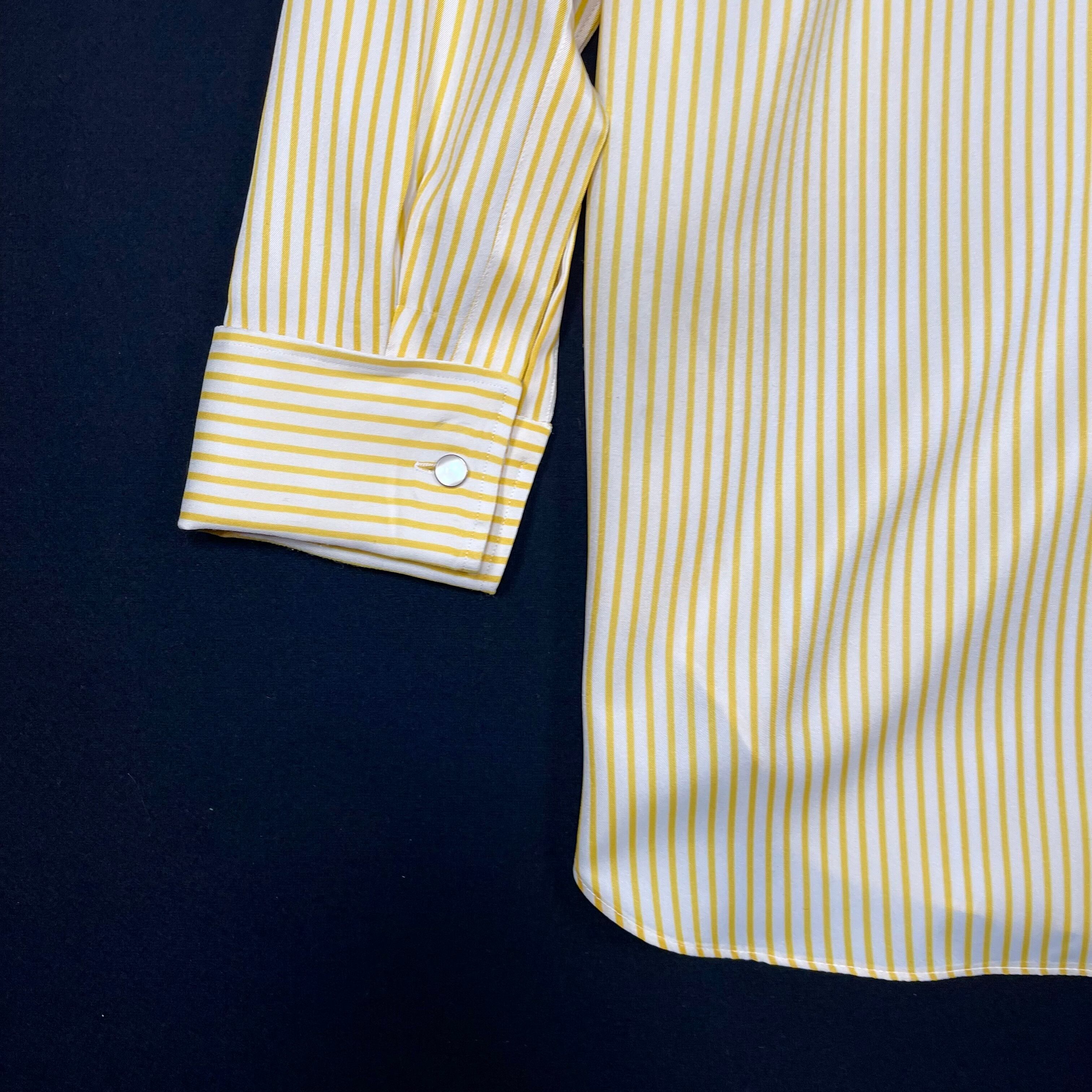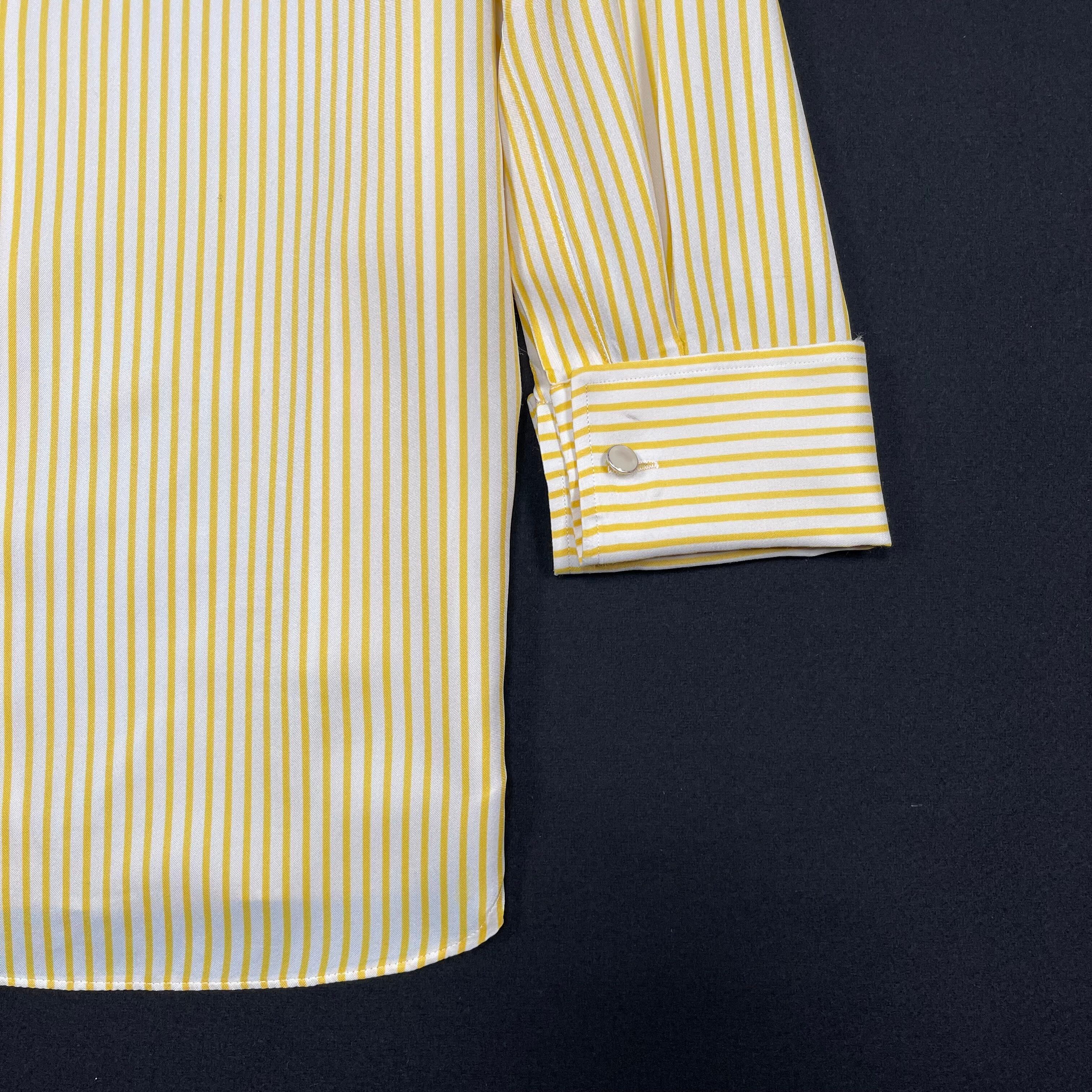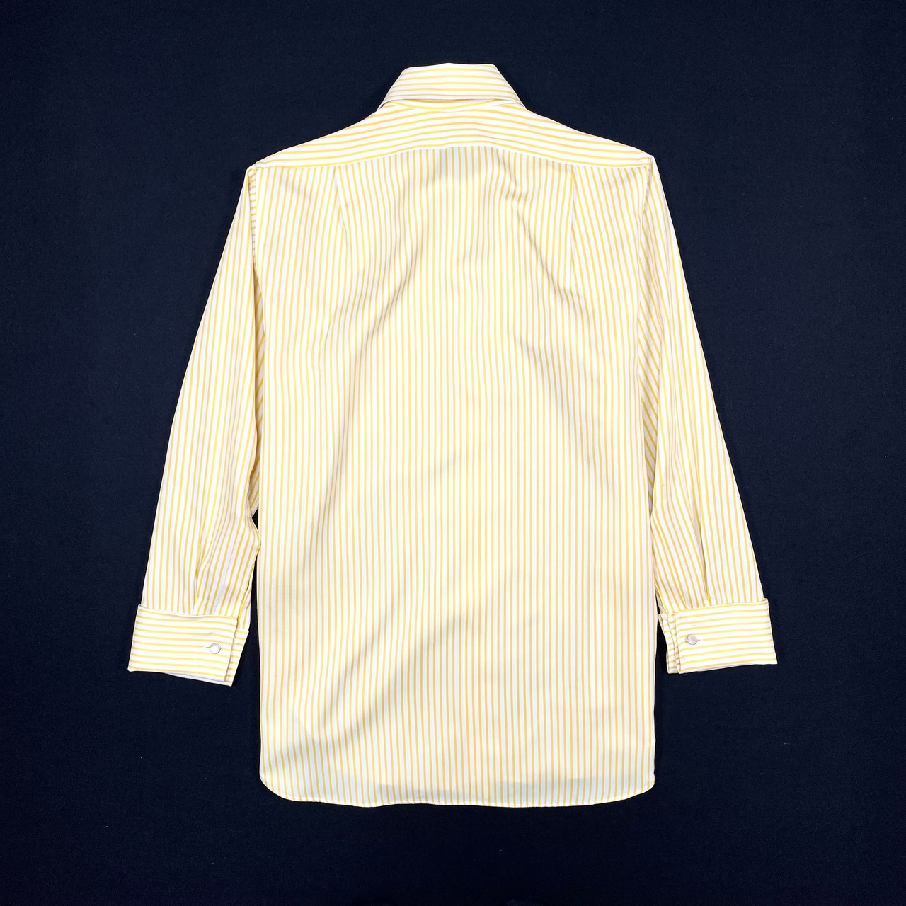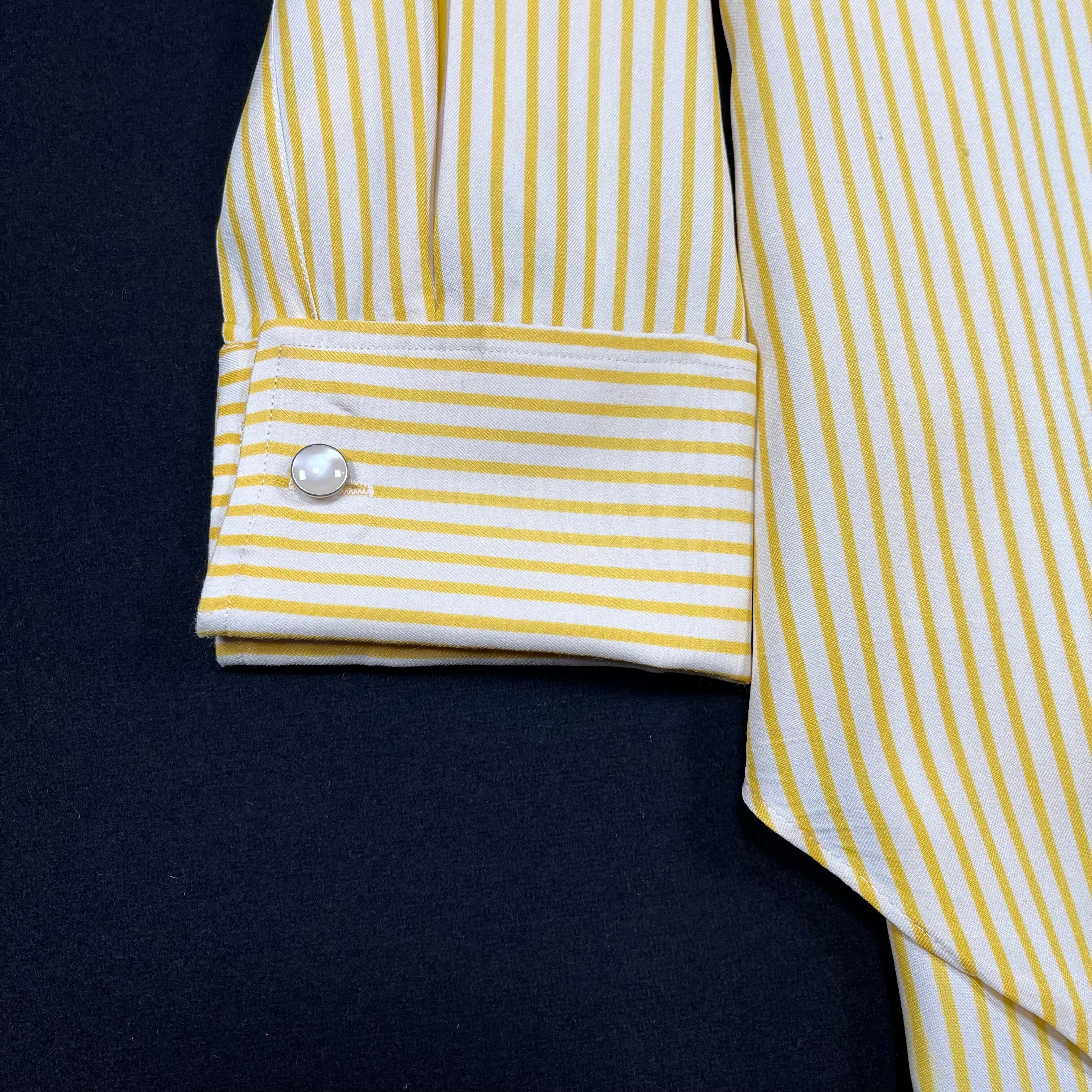 袖口はダブルカフスで、カフスボタン付き