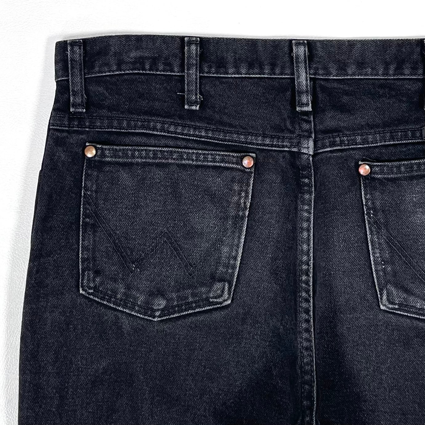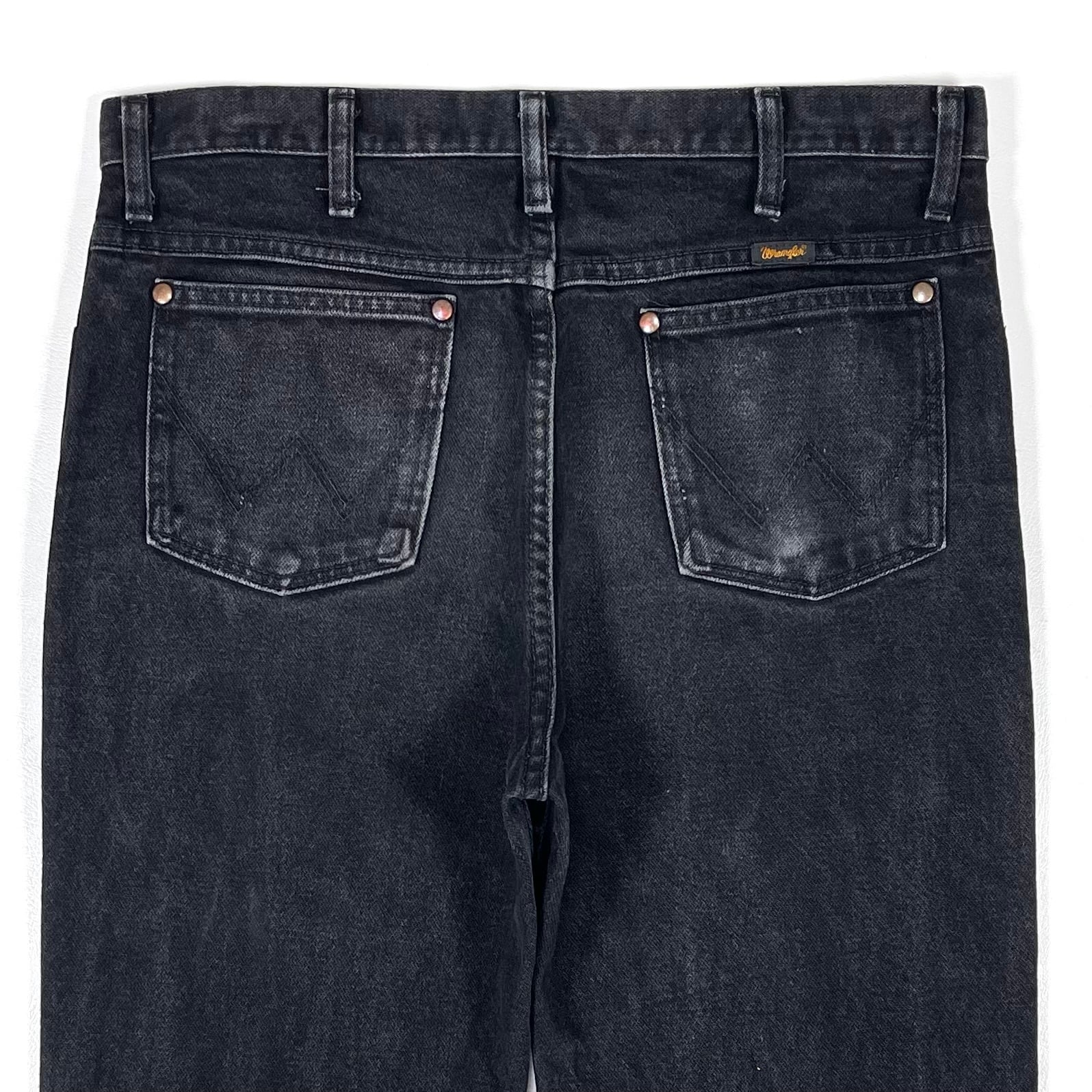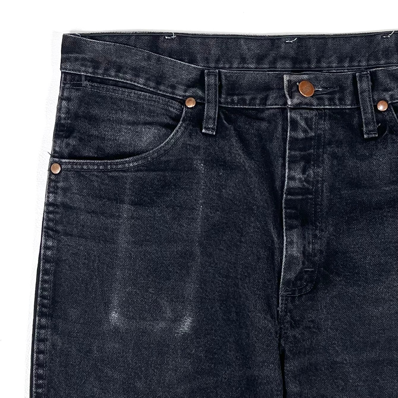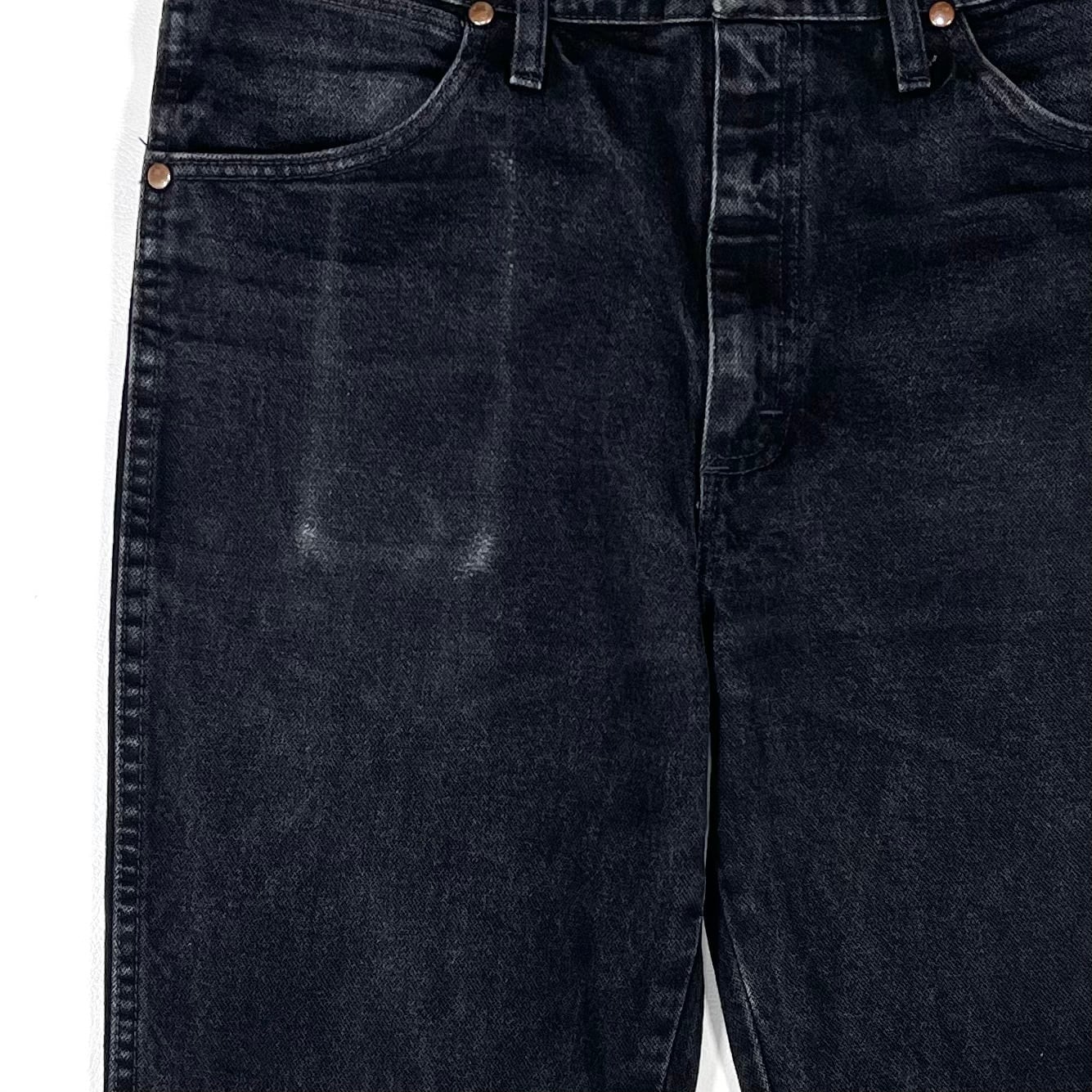 アタリとフェイド感があるブラックデニムのラングラーストレートジーンズ