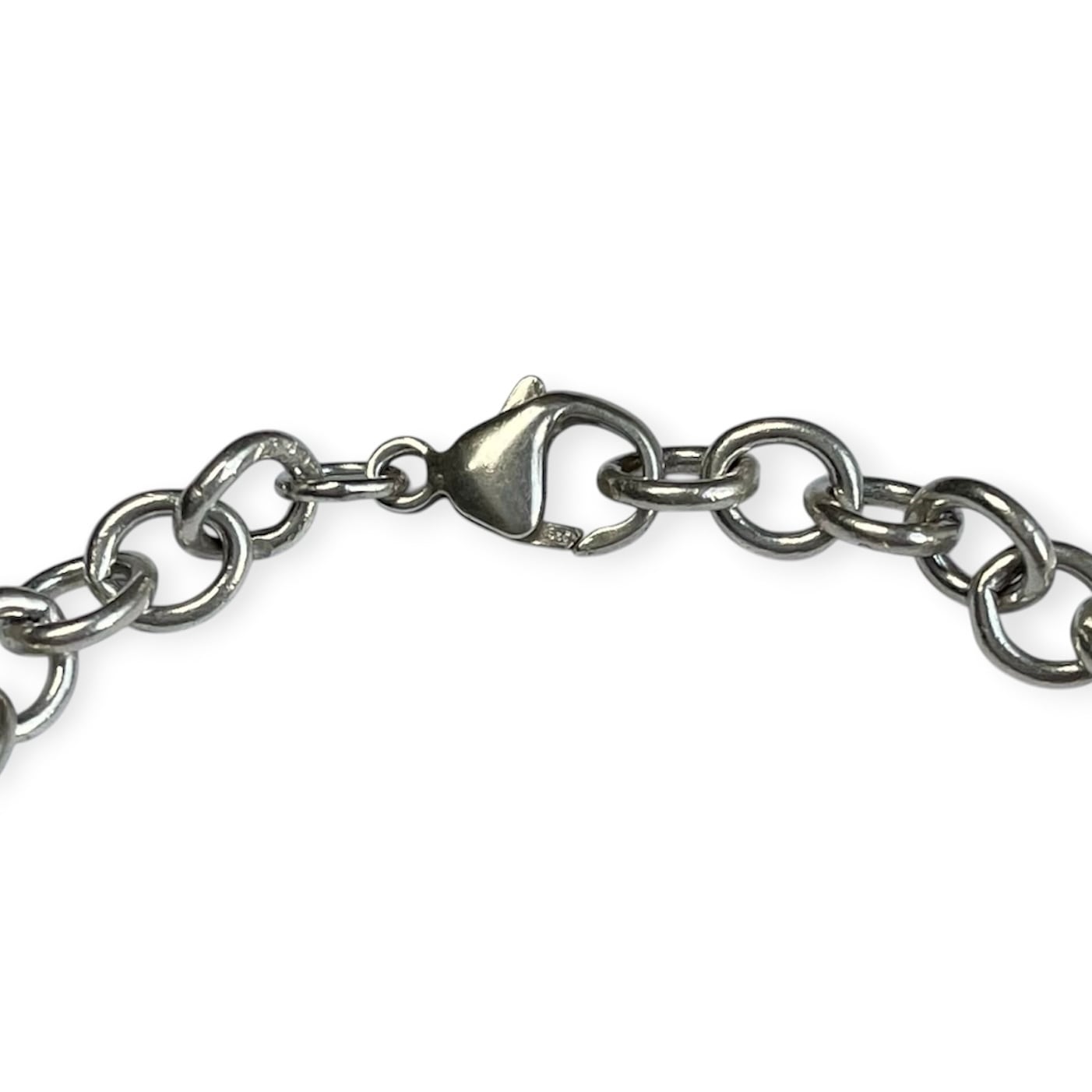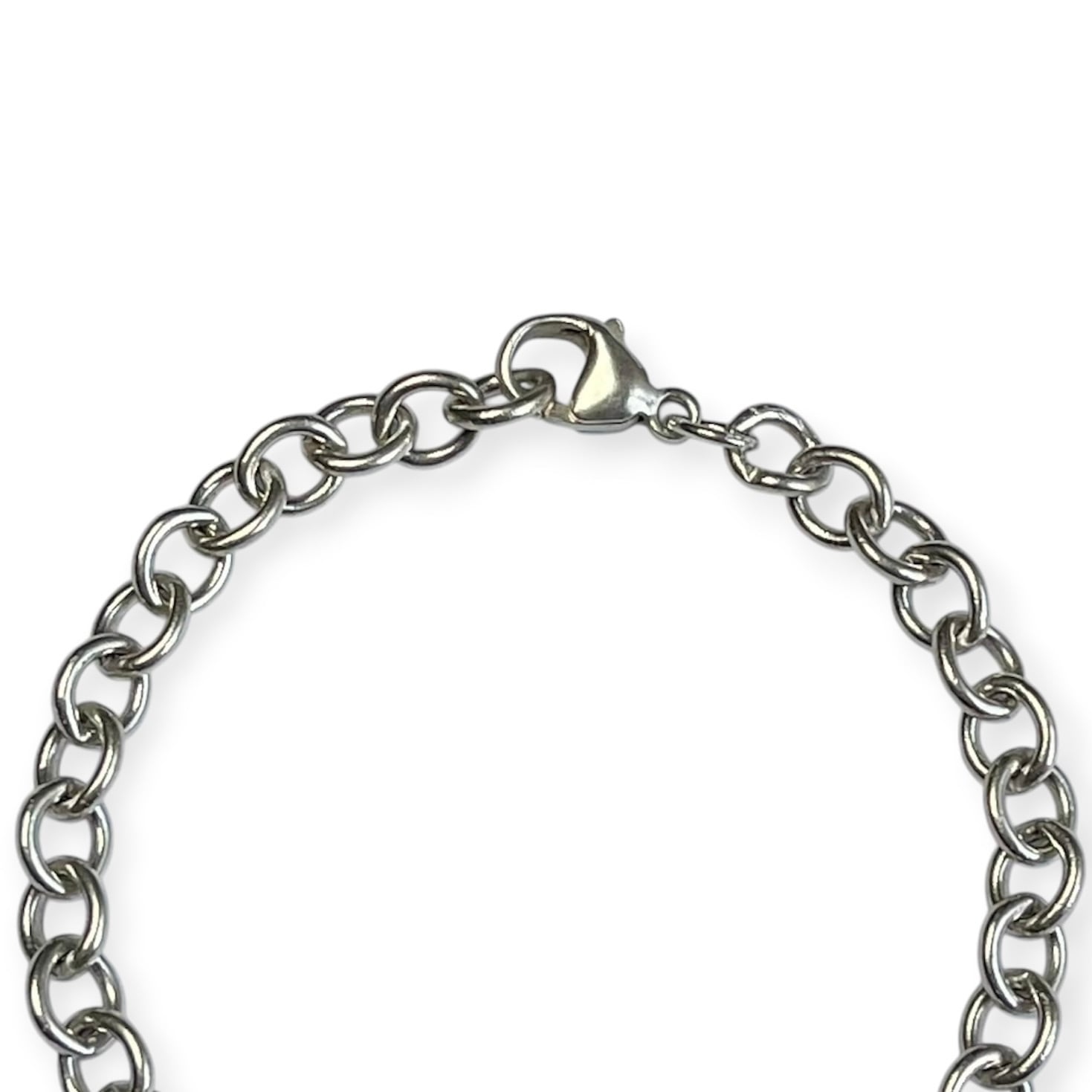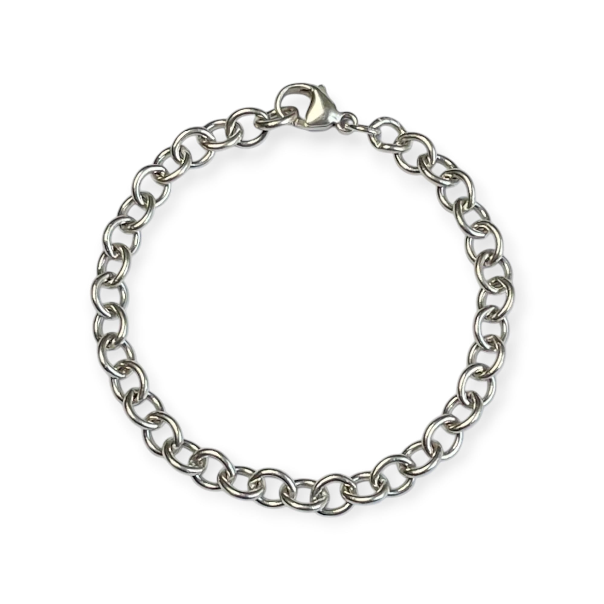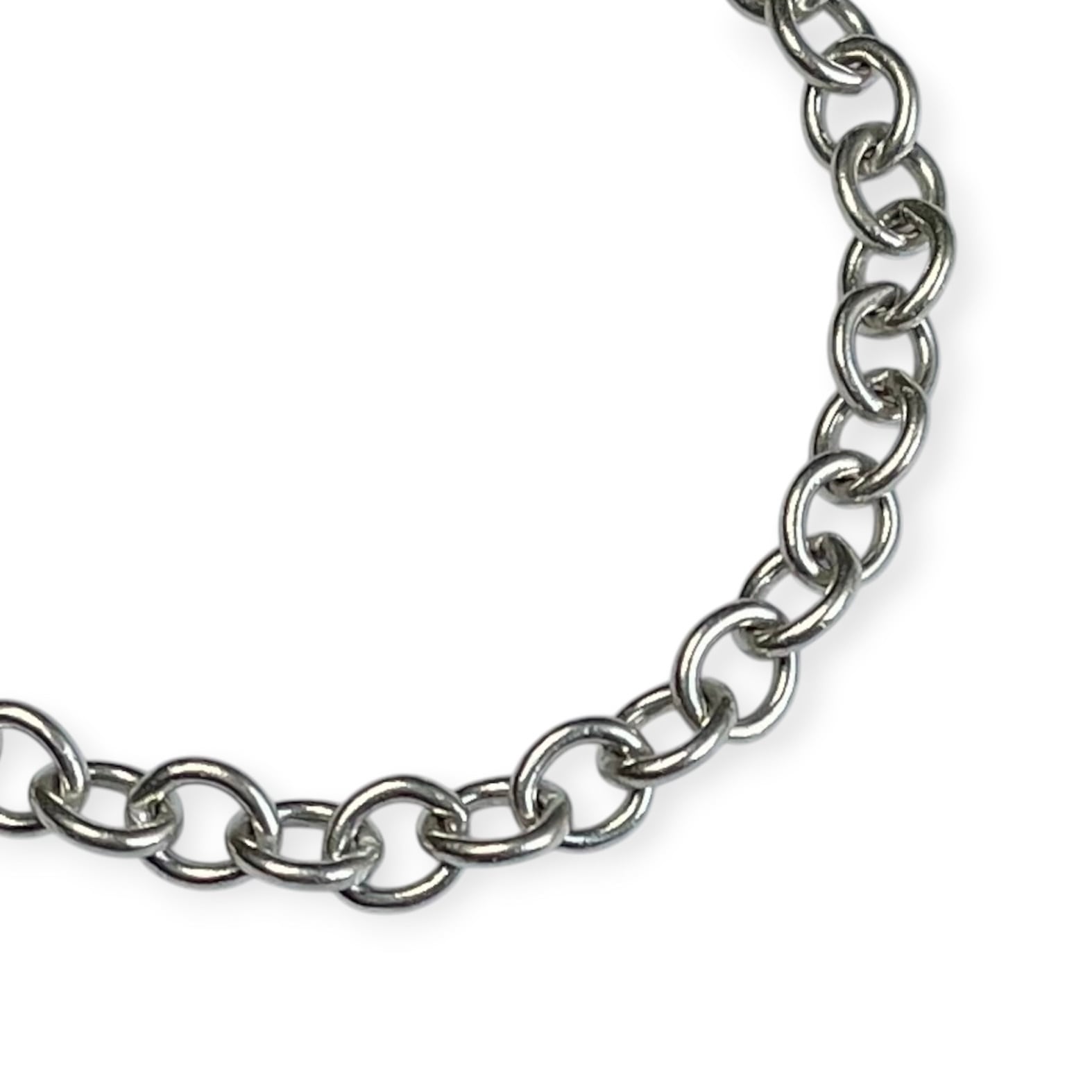 5〜6mmで程よい幅と重みがある、丸い輪が連なったチェーンブレスレット