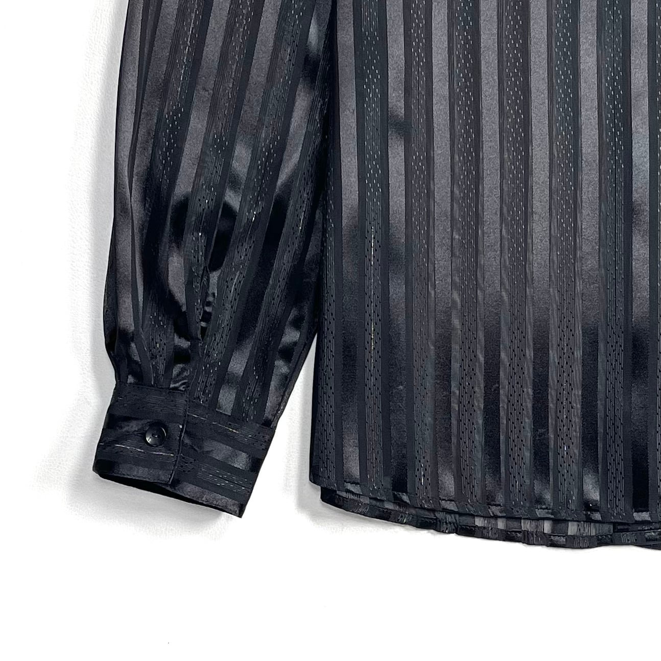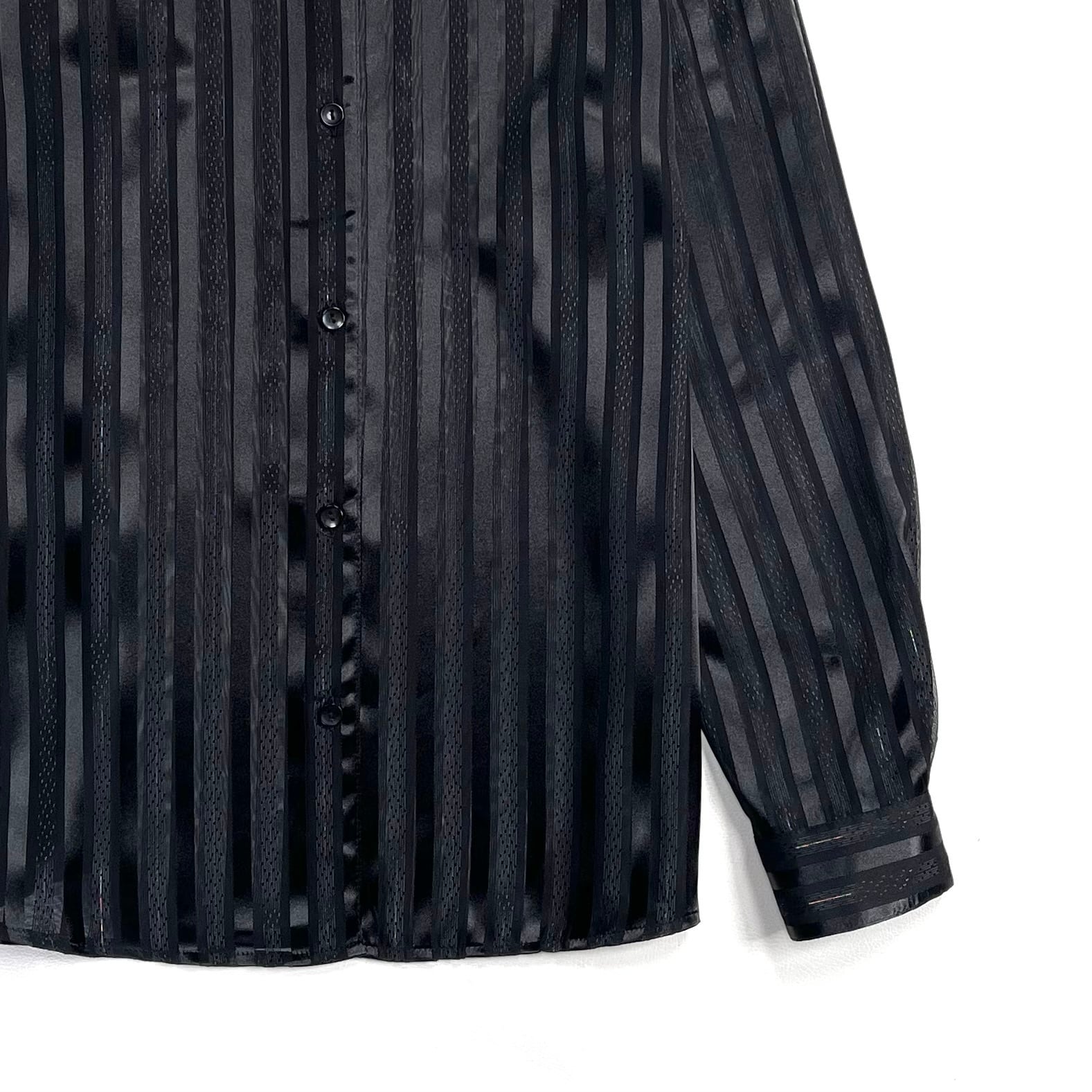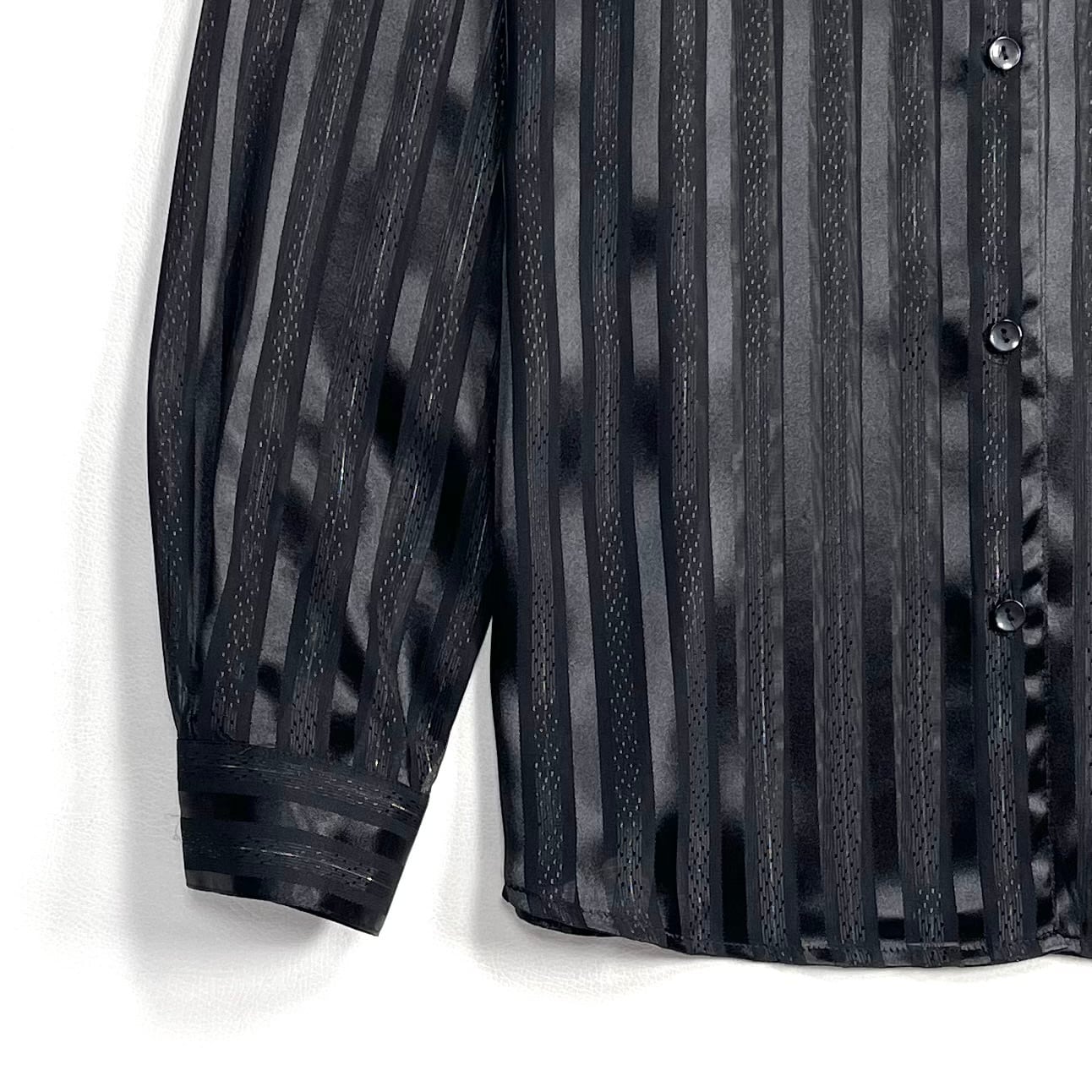 光沢と透け感があるストライプ柄のクラシックでセクシーなブラックシャツ